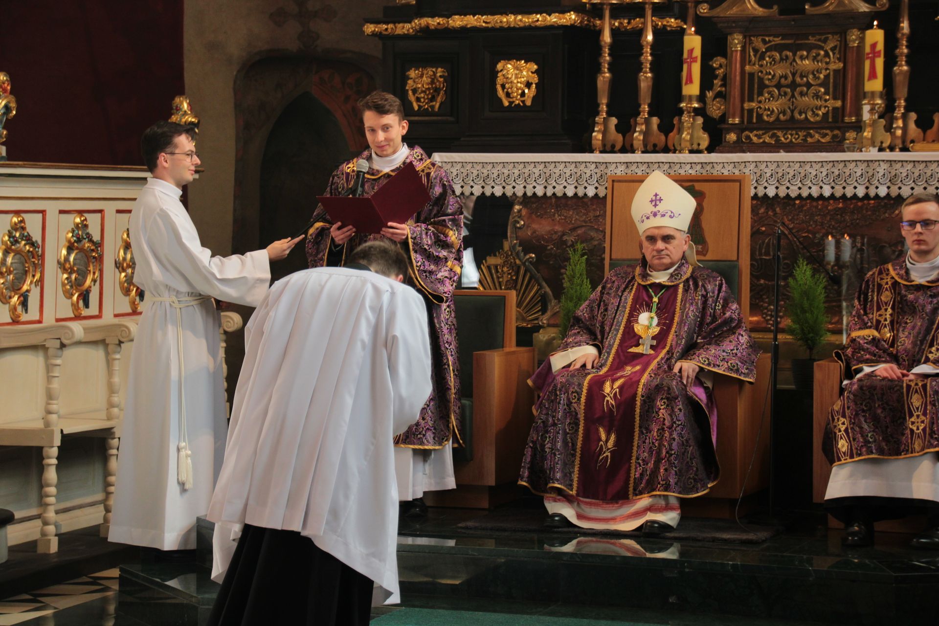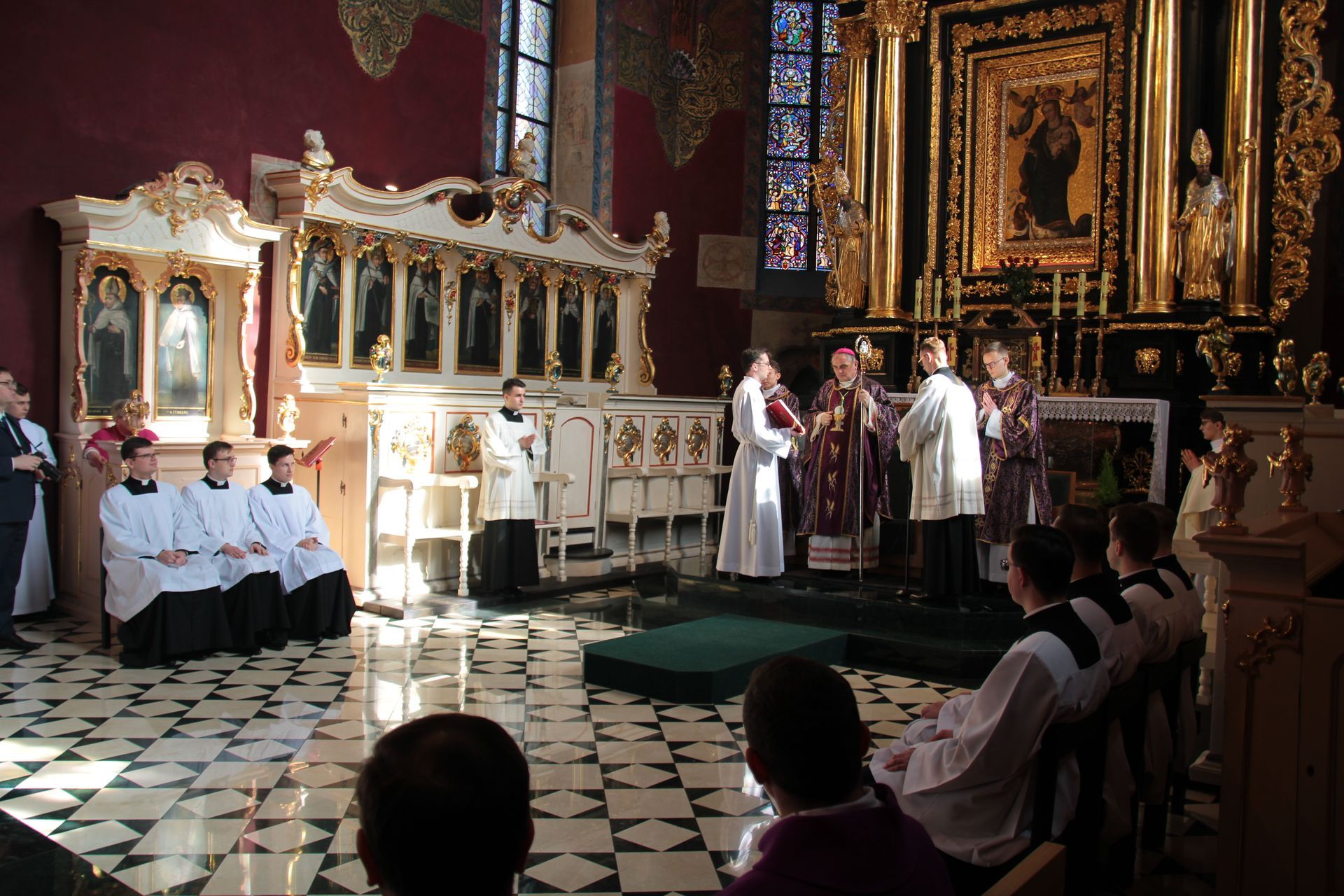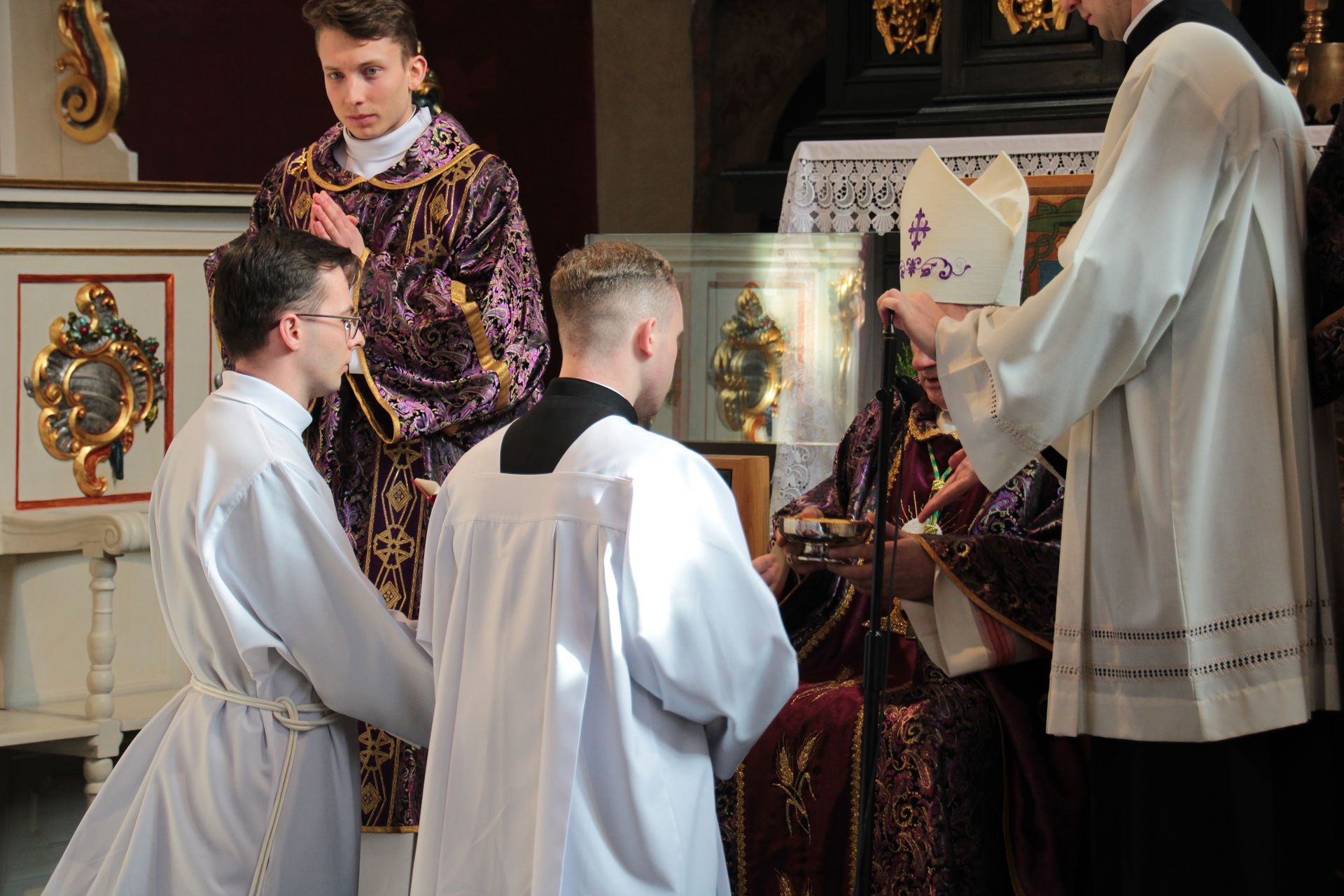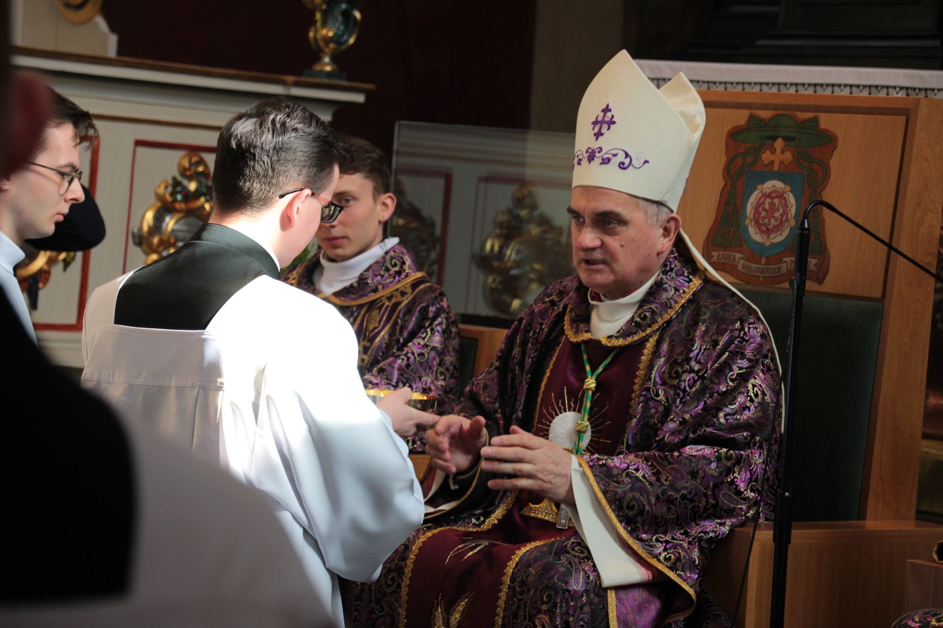 Tuż po rekolekcjach, o poranku III niedzieli Wielkiego Postu, cała nasza wspólnota udała się do Bydgoszczy, gdzie nasi współbracia z roku IV (3 z archidiecezji poznańskiej, 2 z diecezji kaliskiej, 2 z diecezji bydgoskiej) przyjęli posługę akolitatu z rąk ks. bpa Krzysztof Włodarczyka - biskupa bydgoskiego.