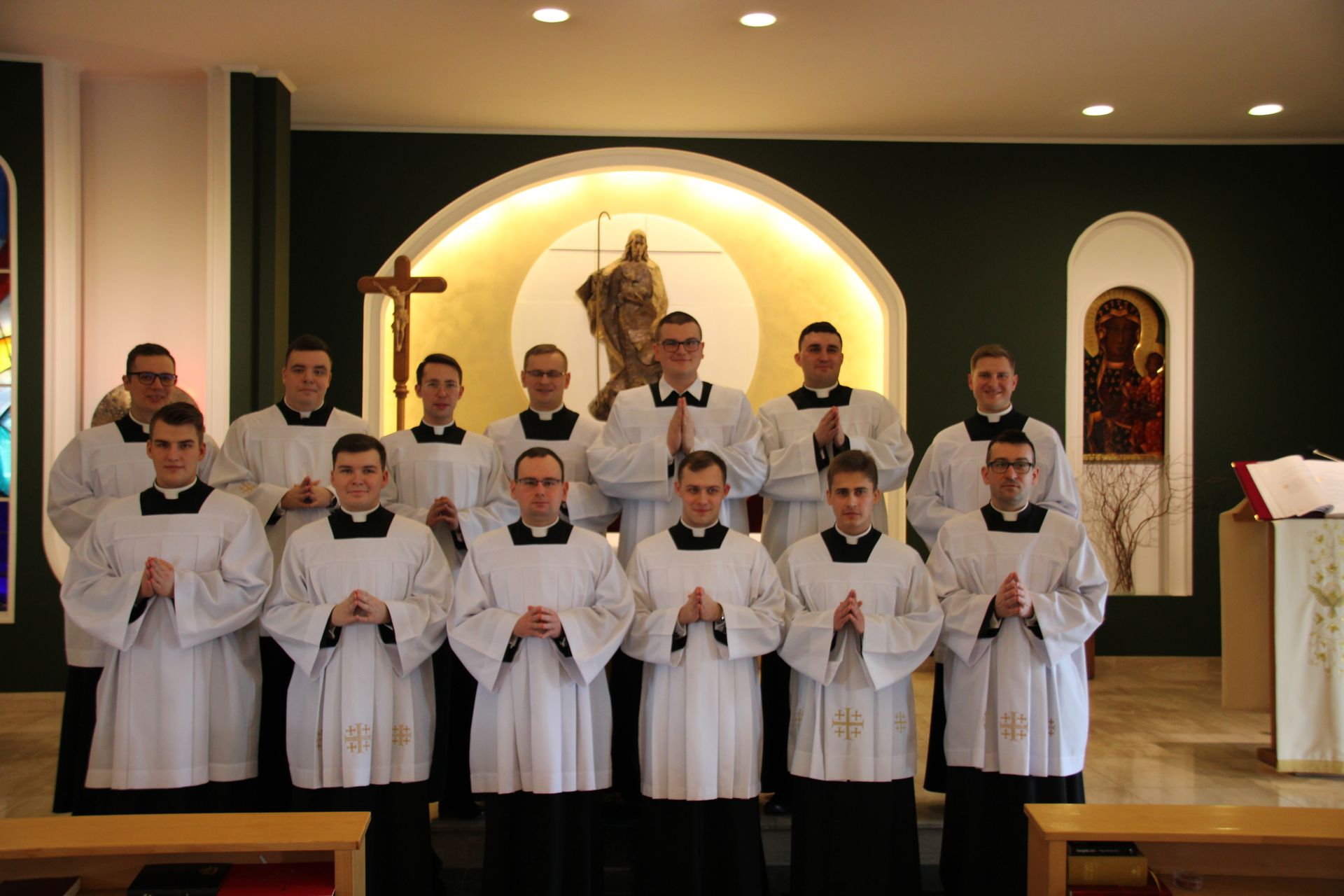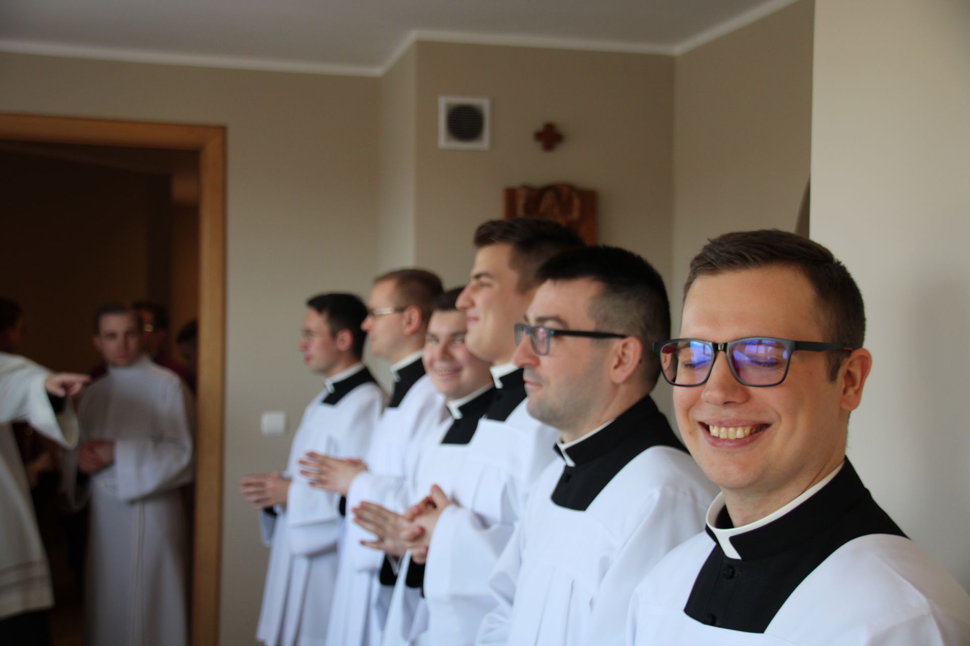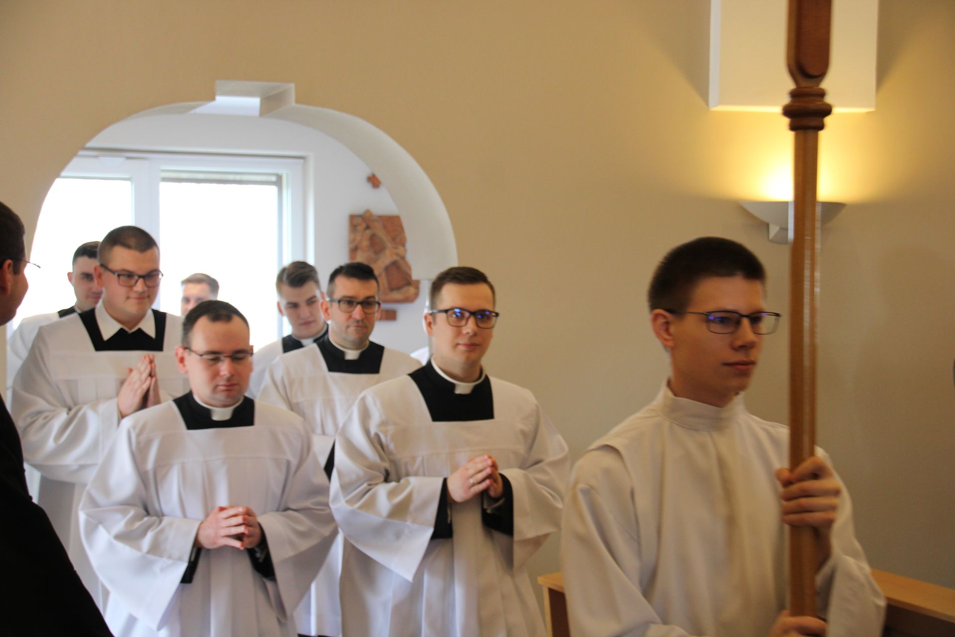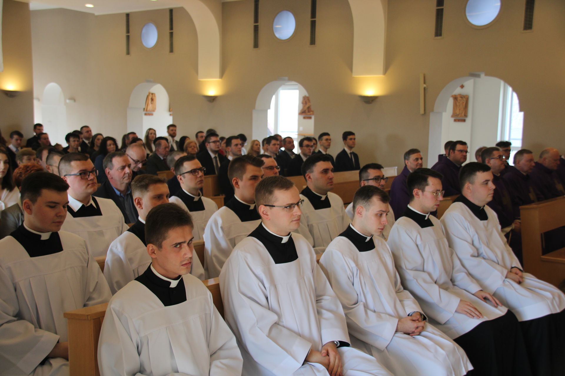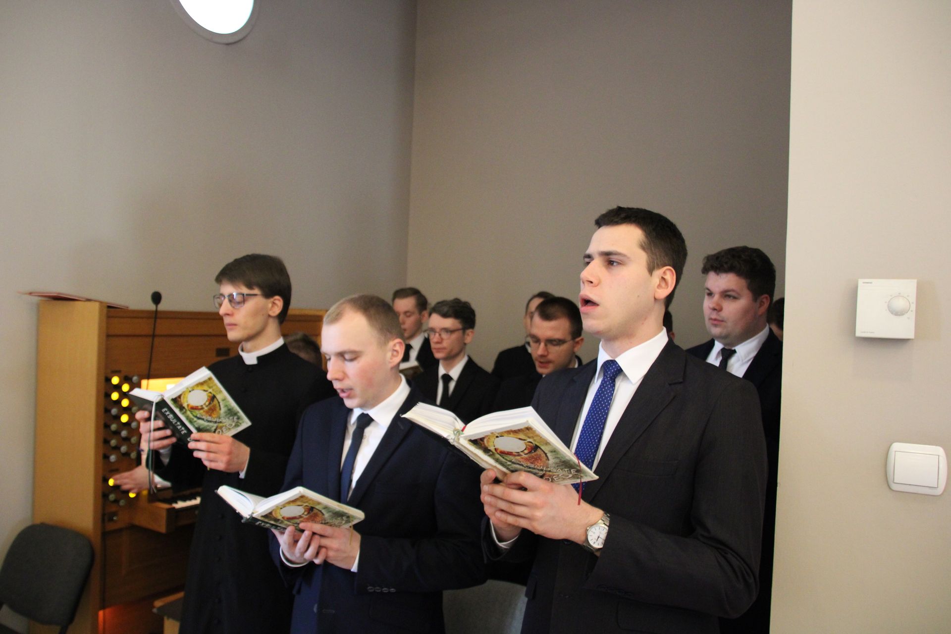 26 listopada, kilka dni po liturgicznym wspomnieniu św. Cecylii, która jest patronką muzyki kościelnej, przeżywaliśmy w naszej wspólnocie seminaryjnej wybudzenie i poświęcenie nowych organów. Z tej okazji gościliśmy w naszym domu JE abp. Zbigniewa Zielińskiego metropolitę poznańskiego oraz byłych kantorów seminaryjnych. Eucharystii, podczas której nasze organy zostały wybudzone, przewodniczył abp Zbigniew wraz z gośćmi oraz naszymi moderatorami. Podczas homilii wspomniał o kończącym się już Roku Jubileuszowym oraz zachęcił, abyśmy w nowym roku liturgicznym i formacyjnym pod hasłem uczniowie-misjonarze potrafili wychodzić jak misjonarze do ludzi z nadzieją, którą podczas tego Roku Jubileuszowego nabraliśmy i byli jej znakami w tym świecie. Po wygłoszonej homilii JE abp. Zbigniew wybudził, poświęcił oraz okadził nasze organy. Po skończonej Eucharystii udaliśmy się na refektarz, gdzie podziękowaliśmy naszym gościom za przybycie i danie świadectwa o tym, że muzyka jest nieodłączną częścią liturgii. Po zakończonej modlitwie, dalszy ciąg świętowania miał miejsce na refektarzu, gdzie czekała na nas gotowa kolacja, którą wspólnie spożyliśmy, a następnie mogliśmy wrócić do kaplicy, gdzie wysłuchaliśmy koncertu, pt. "Laudate Dominum" naszej seminaryjnej scholi "Inclina Aurem". Większość koncertu miała na celu pokazać możliwości naszego nowego instrumentu muzycznego, lecz znalazł się także moment, w którym mogliśmy wysłuchać naszej scholi. Koncert odbył się w następującym porządku: Preludium w klasycznym stylu Gordona Younga (wyk. kl. Bartłomiej) Toccata i fuga d-moll Jana Sebastiana Bacha (wyk. kl. Bartłomiej) Preludium c-moll op. 28 Fryderyka Chopina (wyk. kl. Marcel) Ave Maria Franza Schuberta wykonany przez duet organowo - skrzypcowy (wyk. kl. Marcel (organy) i kl. Franciszek (skrzypce) Laudate Dominum Ciro Grassiego (wyk. Inclina Aurem) Toccata Georgiego Mushela (wyk. Tomasz Kramer) Dziękujemy wszystkim, dzięki którym mogliśmy świętować uroczyste wybudzenie organów, w szczególności pragniemy podziękować JE abp. Zbigniewowi Zielińskiemu oraz firmie, która te organy dla nas znalazła, sprowadziła i zbudowała. Jesteśmy wdzięczni także wszystkim, którzy byli w tym dniu z nami. Prosimy również o modlitwę, aby te organy służymy wielu następnym pokoleniom i wspomagały ich w modlitwie w tej kaplicy. Zdjęcia za: Arcybiskupie Seminarium Duchowne