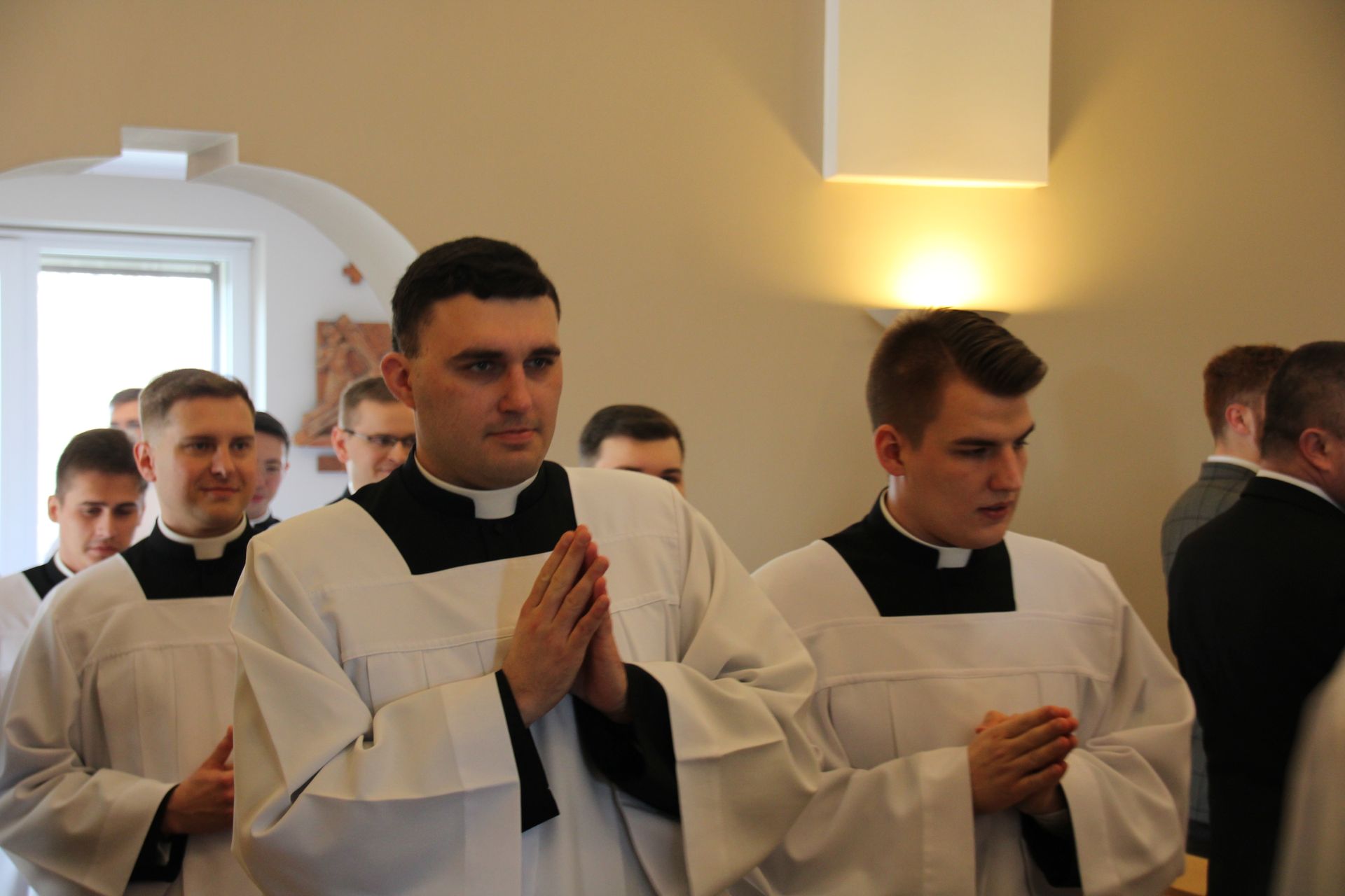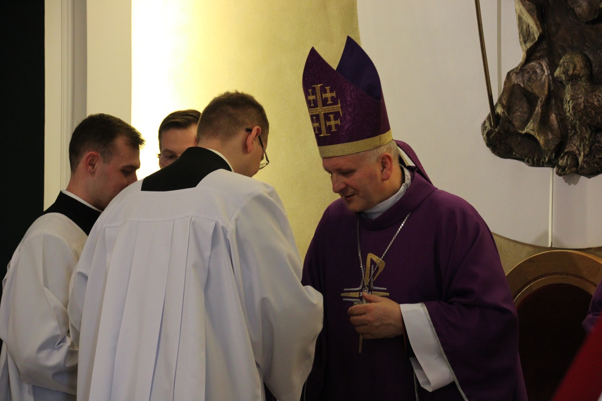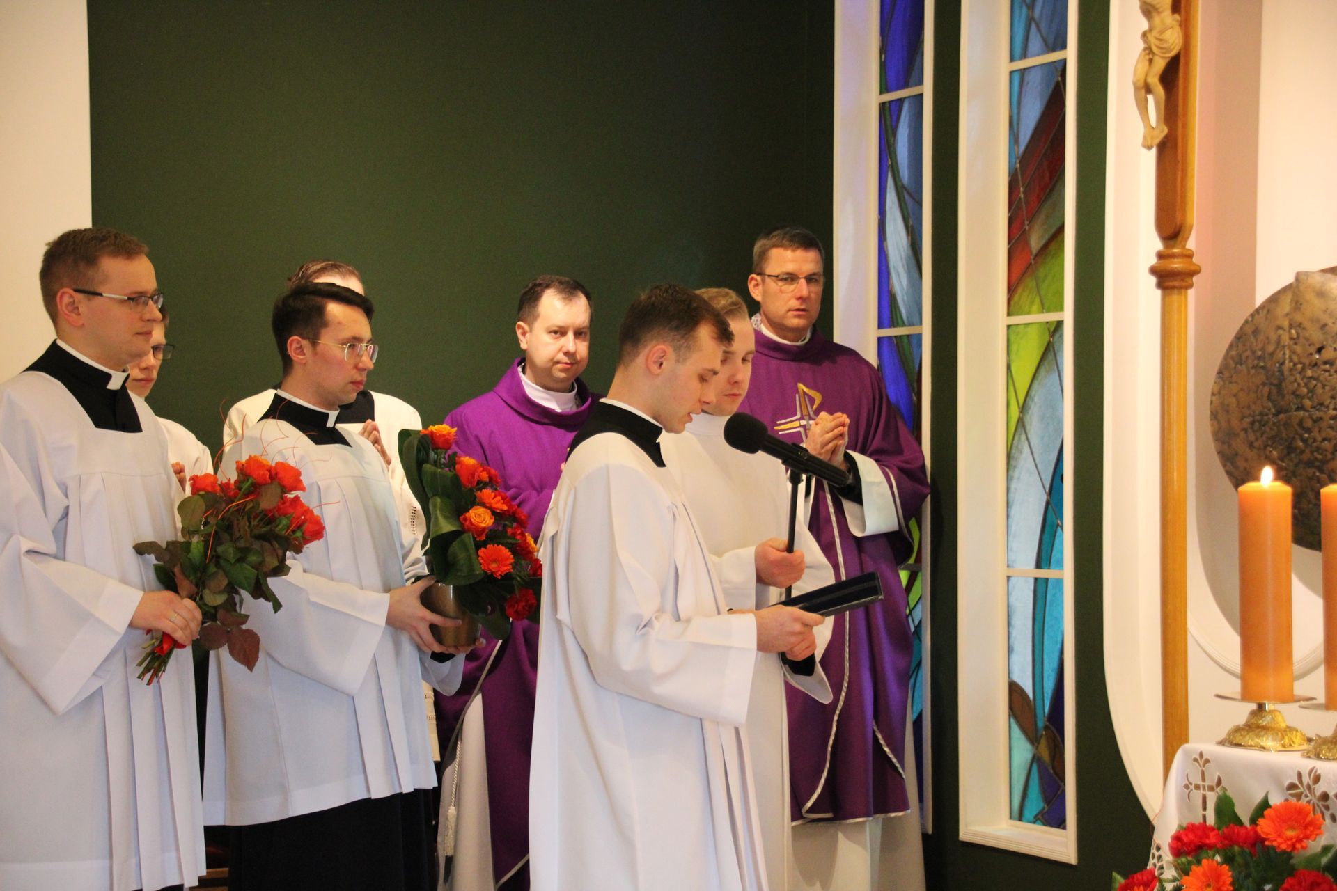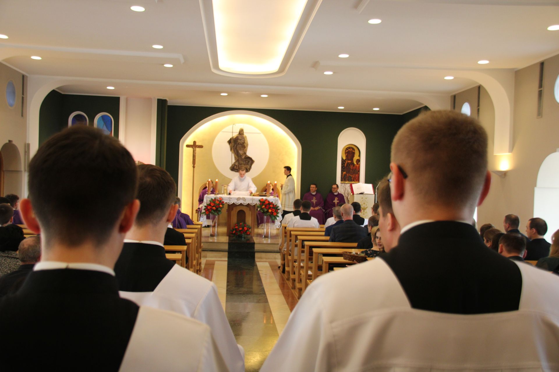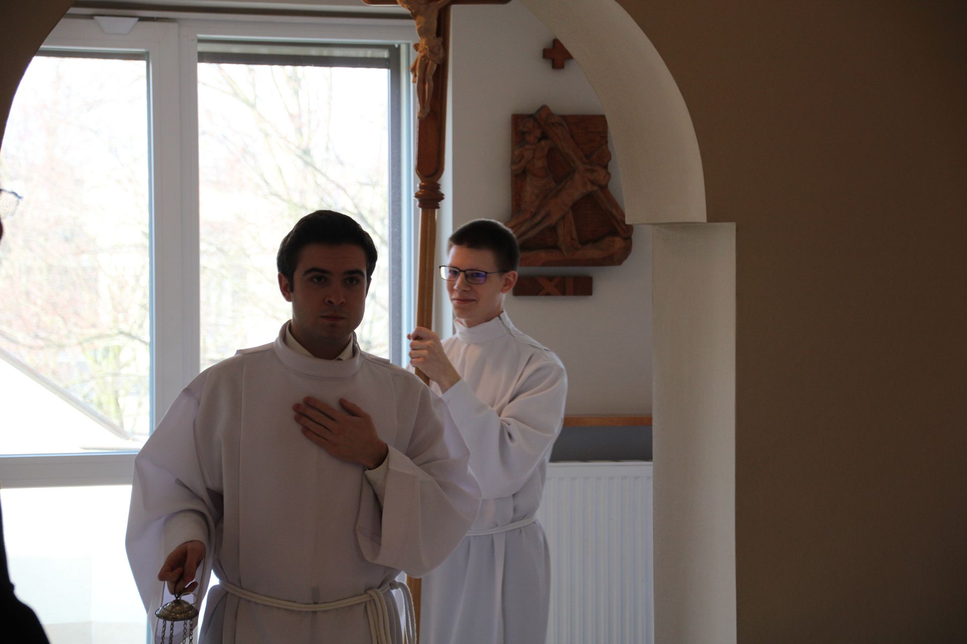 26 listopada, kilka dni po liturgicznym wspomnieniu św. Cecylii, która jest patronką muzyki kościelnej, przeżywaliśmy w naszej wspólnocie seminaryjnej wybudzenie i poświęcenie nowych organów. Z tej okazji gościliśmy w naszym domu JE abp. Zbigniewa Zielińskiego metropolitę poznańskiego oraz byłych kantorów seminaryjnych. Eucharystii, podczas której nasze organy zostały wybudzone, przewodniczył abp Zbigniew wraz z gośćmi oraz naszymi moderatorami. Podczas homilii wspomniał o kończącym się już Roku Jubileuszowym oraz zachęcił, abyśmy w nowym roku liturgicznym i formacyjnym pod hasłem uczniowie-misjonarze potrafili wychodzić jak misjonarze do ludzi z nadzieją, którą podczas tego Roku Jubileuszowego nabraliśmy i byli jej znakami w tym świecie. Po wygłoszonej homilii JE abp. Zbigniew wybudził, poświęcił oraz okadził nasze organy. Po skończonej Eucharystii udaliśmy się na refektarz, gdzie podziękowaliśmy naszym gościom za przybycie i danie świadectwa o tym, że muzyka jest nieodłączną częścią liturgii. Po zakończonej modlitwie, dalszy ciąg świętowania miał miejsce na refektarzu, gdzie czekała na nas gotowa kolacja, którą wspólnie spożyliśmy, a następnie mogliśmy wrócić do kaplicy, gdzie wysłuchaliśmy koncertu, pt. "Laudate Dominum" naszej seminaryjnej scholi "Inclina Aurem". Większość koncertu miała na celu pokazać możliwości naszego nowego instrumentu muzycznego, lecz znalazł się także moment, w którym mogliśmy wysłuchać naszej scholi. Koncert odbył się w następującym porządku: Preludium w klasycznym stylu Gordona Younga (wyk. kl. Bartłomiej) Toccata i fuga d-moll Jana Sebastiana Bacha (wyk. kl. Bartłomiej) Preludium c-moll op. 28 Fryderyka Chopina (wyk. kl. Marcel) Ave Maria Franza Schuberta wykonany przez duet organowo - skrzypcowy (wyk. kl. Marcel (organy) i kl. Franciszek (skrzypce) Laudate Dominum Ciro Grassiego (wyk. Inclina Aurem) Toccata Georgiego Mushela (wyk. Tomasz Kramer) Dziękujemy wszystkim, dzięki którym mogliśmy świętować uroczyste wybudzenie organów, w szczególności pragniemy podziękować JE abp. Zbigniewowi Zielińskiemu oraz firmie, która te organy dla nas znalazła, sprowadziła i zbudowała. Jesteśmy wdzięczni także wszystkim, którzy byli w tym dniu z nami. Prosimy również o modlitwę, aby te organy służymy wielu następnym pokoleniom i wspomagały ich w modlitwie w tej kaplicy. Zdjęcia za: Arcybiskupie Seminarium Duchowne