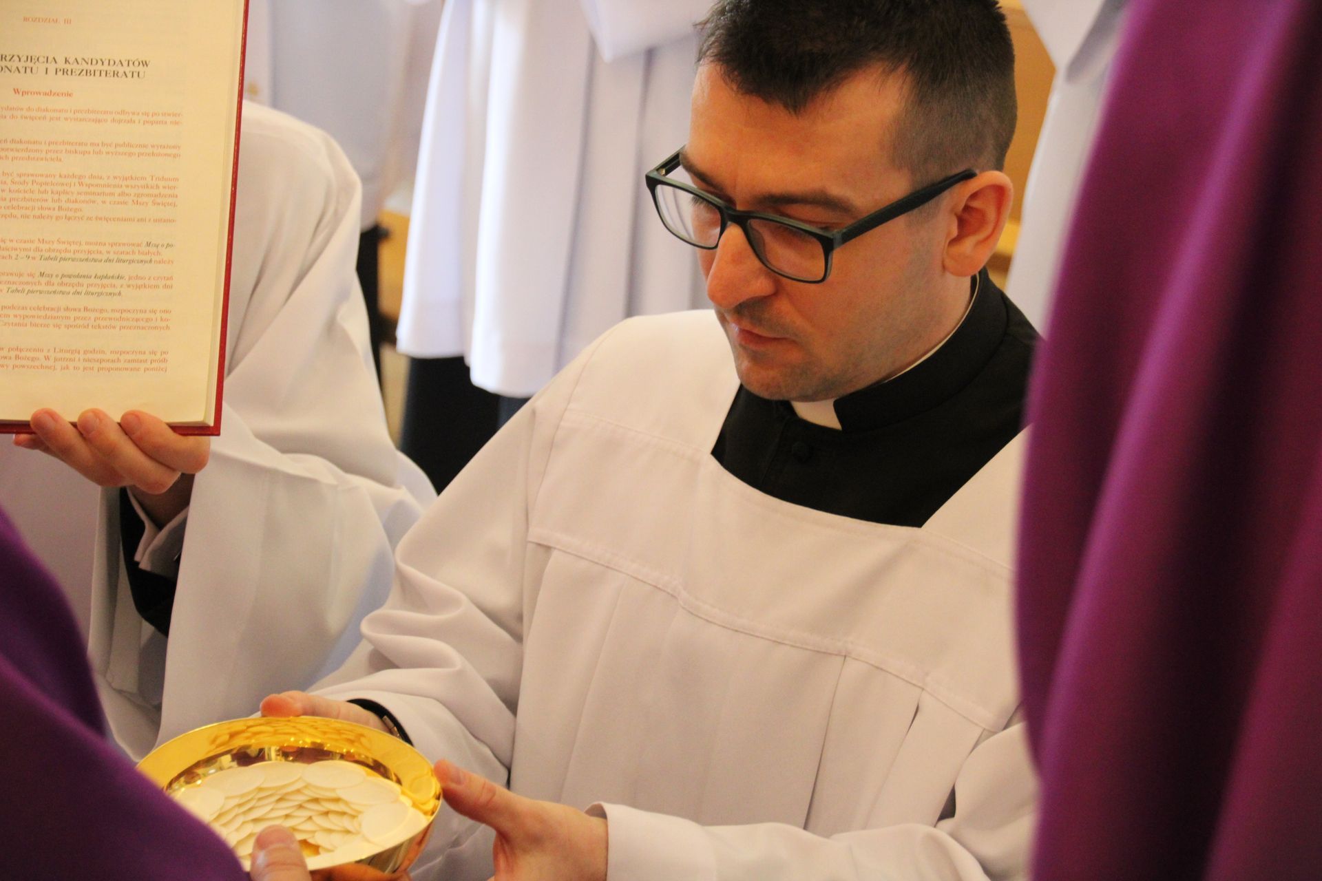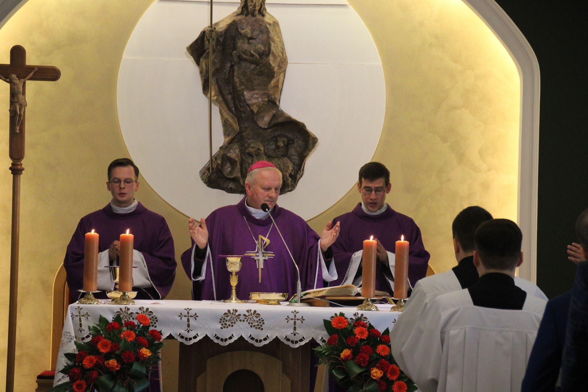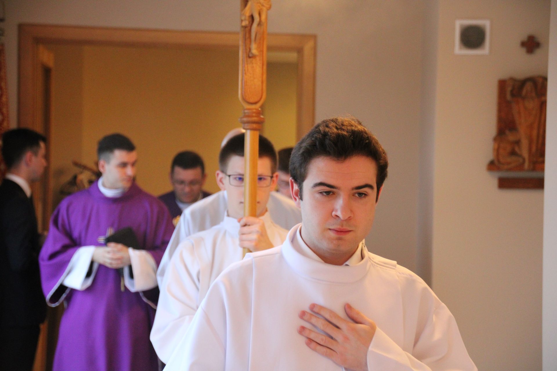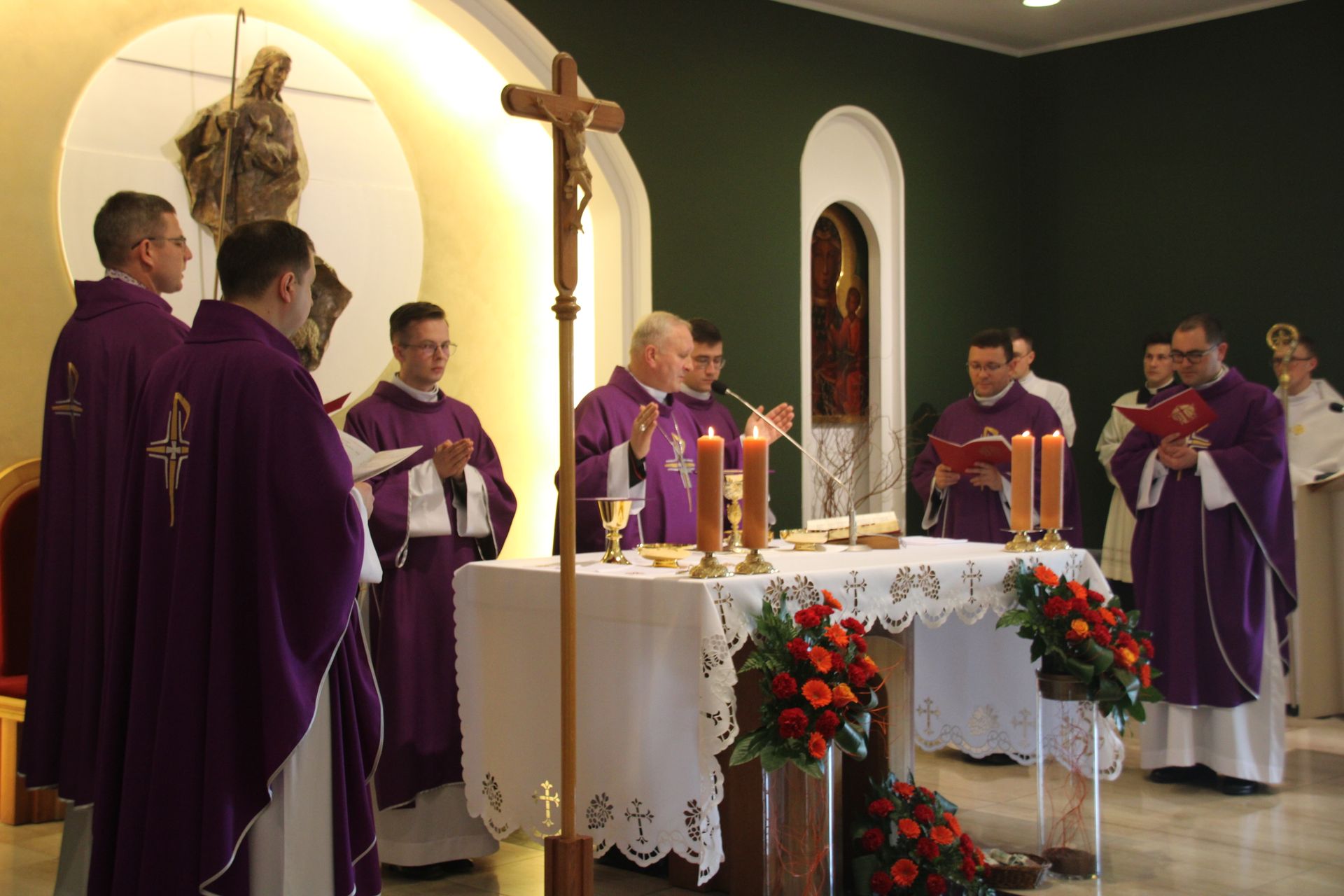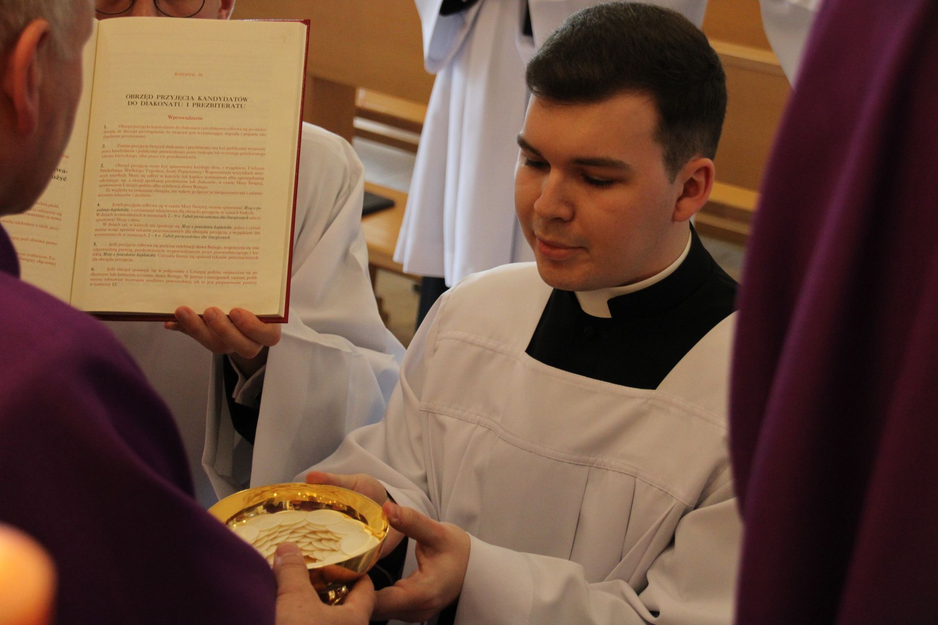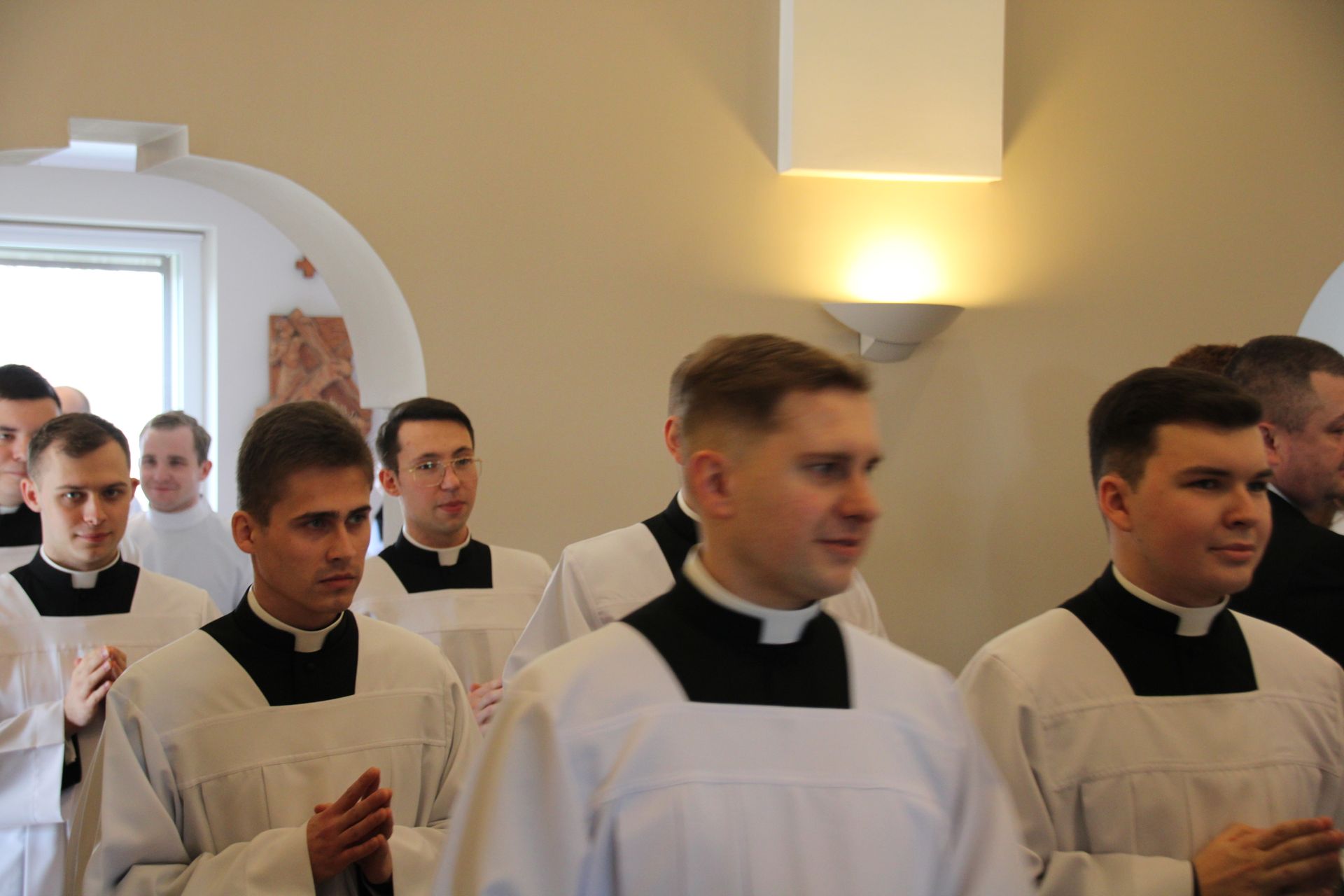 26 listopada, kilka dni po liturgicznym wspomnieniu św. Cecylii, która jest patronką muzyki kościelnej, przeżywaliśmy w naszej wspólnocie seminaryjnej wybudzenie i poświęcenie nowych organów. Z tej okazji gościliśmy w naszym domu JE abp. Zbigniewa Zielińskiego metropolitę poznańskiego oraz byłych kantorów seminaryjnych. Eucharystii, podczas której nasze organy zostały wybudzone, przewodniczył abp Zbigniew wraz z gośćmi oraz naszymi moderatorami. Podczas homilii wspomniał o kończącym się już Roku Jubileuszowym oraz zachęcił, abyśmy w nowym roku liturgicznym i formacyjnym pod hasłem uczniowie-misjonarze potrafili wychodzić jak misjonarze do ludzi z nadzieją, którą podczas tego Roku Jubileuszowego nabraliśmy i byli jej znakami w tym świecie. Po wygłoszonej homilii JE abp. Zbigniew wybudził, poświęcił oraz okadził nasze organy. Po skończonej Eucharystii udaliśmy się na refektarz, gdzie podziękowaliśmy naszym gościom za przybycie i danie świadectwa o tym, że muzyka jest nieodłączną częścią liturgii. Po zakończonej modlitwie, dalszy ciąg świętowania miał miejsce na refektarzu, gdzie czekała na nas gotowa kolacja, którą wspólnie spożyliśmy, a następnie mogliśmy wrócić do kaplicy, gdzie wysłuchaliśmy koncertu, pt. "Laudate Dominum" naszej seminaryjnej scholi "Inclina Aurem". Większość koncertu miała na celu pokazać możliwości naszego nowego instrumentu muzycznego, lecz znalazł się także moment, w którym mogliśmy wysłuchać naszej scholi. Koncert odbył się w następującym porządku: Preludium w klasycznym stylu Gordona Younga (wyk. kl. Bartłomiej) Toccata i fuga d-moll Jana Sebastiana Bacha (wyk. kl. Bartłomiej) Preludium c-moll op. 28 Fryderyka Chopina (wyk. kl. Marcel) Ave Maria Franza Schuberta wykonany przez duet organowo - skrzypcowy (wyk. kl. Marcel (organy) i kl. Franciszek (skrzypce) Laudate Dominum Ciro Grassiego (wyk. Inclina Aurem) Toccata Georgiego Mushela (wyk. Tomasz Kramer) Dziękujemy wszystkim, dzięki którym mogliśmy świętować uroczyste wybudzenie organów, w szczególności pragniemy podziękować JE abp. Zbigniewowi Zielińskiemu oraz firmie, która te organy dla nas znalazła, sprowadziła i zbudowała. Jesteśmy wdzięczni także wszystkim, którzy byli w tym dniu z nami. Prosimy również o modlitwę, aby te organy służymy wielu następnym pokoleniom i wspomagały ich w modlitwie w tej kaplicy. Zdjęcia za: Arcybiskupie Seminarium Duchowne
