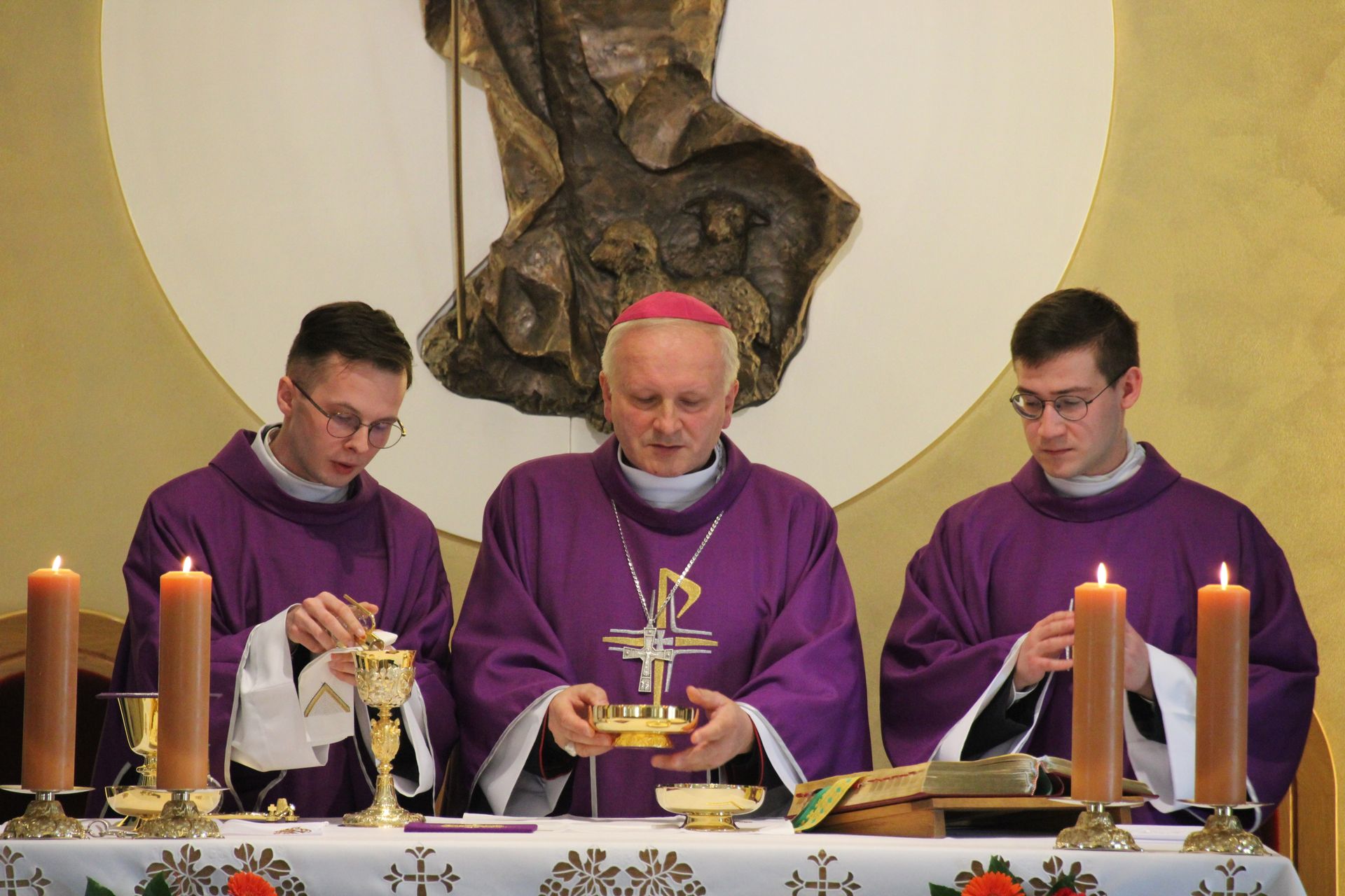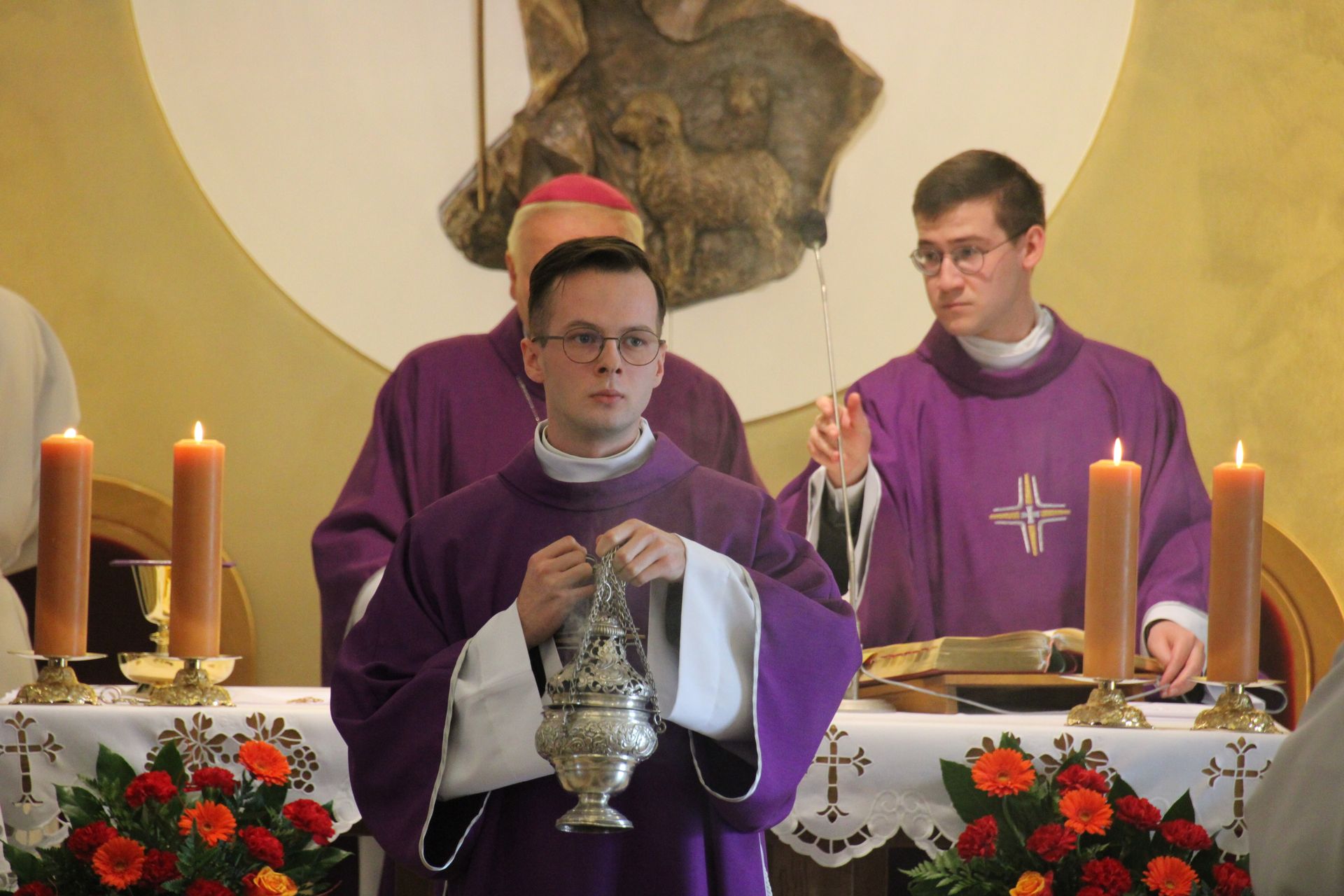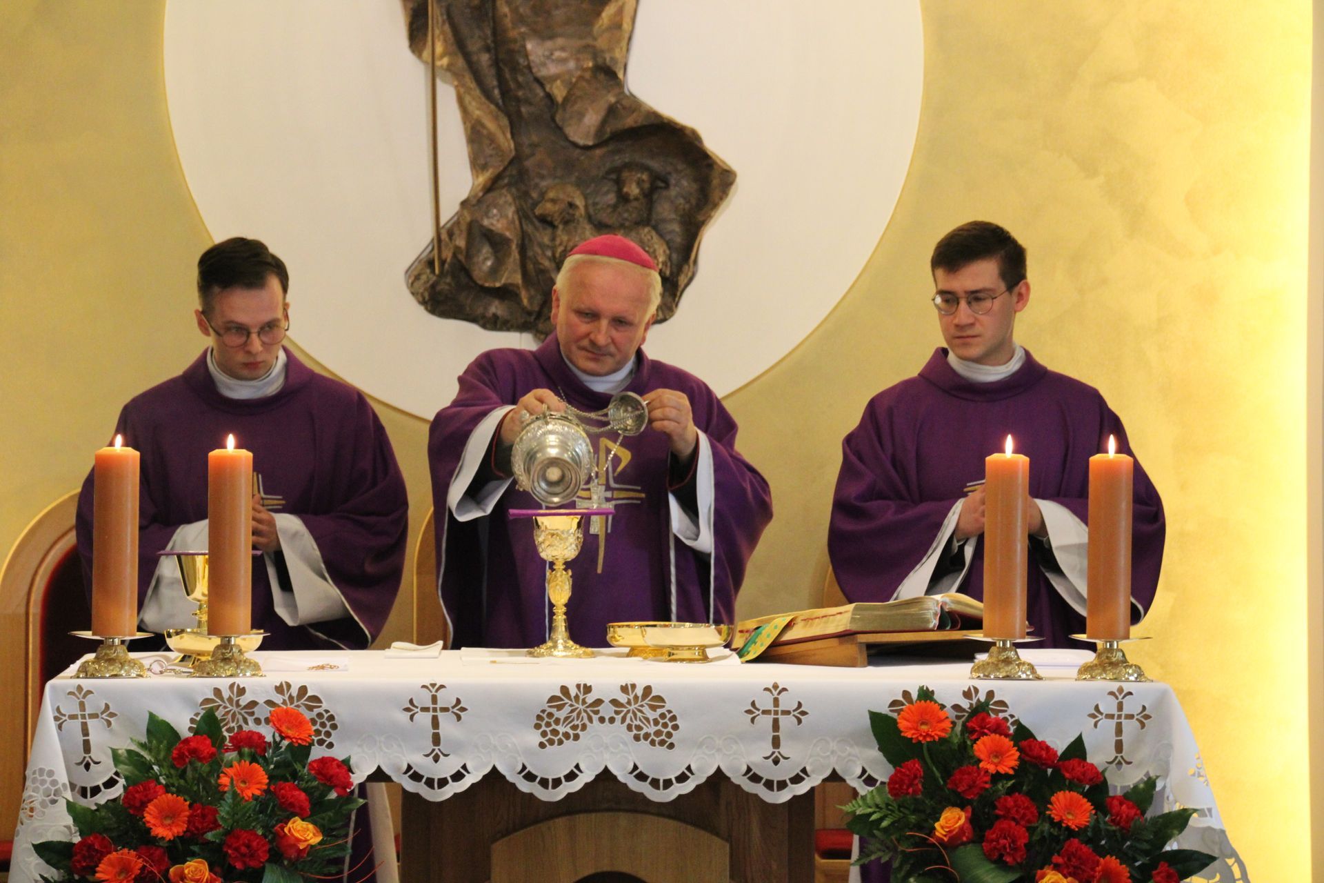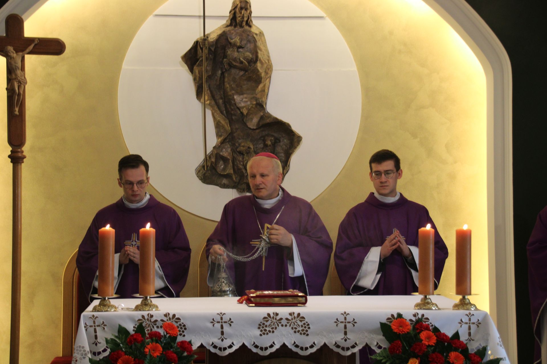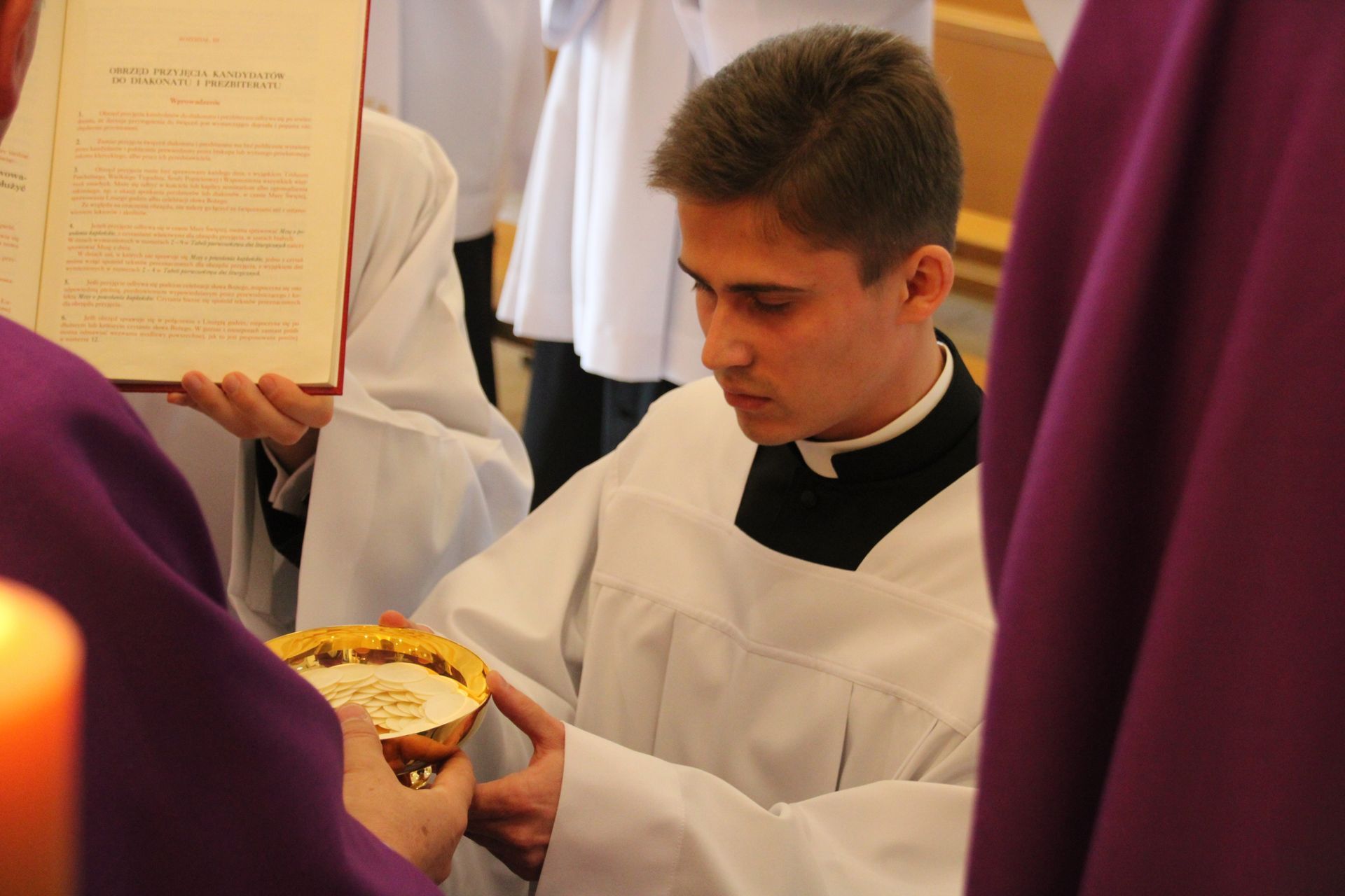 26 listopada, kilka dni po liturgicznym wspomnieniu św. Cecylii, która jest patronką muzyki kościelnej, przeżywaliśmy w naszej wspólnocie seminaryjnej wybudzenie i poświęcenie nowych organów. Z tej okazji gościliśmy w naszym domu JE abp. Zbigniewa Zielińskiego metropolitę poznańskiego oraz byłych kantorów seminaryjnych. Eucharystii, podczas której nasze organy zostały wybudzone, przewodniczył abp Zbigniew wraz z gośćmi oraz naszymi moderatorami. Podczas homilii wspomniał o kończącym się już Roku Jubileuszowym oraz zachęcił, abyśmy w nowym roku liturgicznym i formacyjnym pod hasłem uczniowie-misjonarze potrafili wychodzić jak misjonarze do ludzi z nadzieją, którą podczas tego Roku Jubileuszowego nabraliśmy i byli jej znakami w tym świecie. Po wygłoszonej homilii JE abp. Zbigniew wybudził, poświęcił oraz okadził nasze organy. Po skończonej Eucharystii udaliśmy się na refektarz, gdzie podziękowaliśmy naszym gościom za przybycie i danie świadectwa o tym, że muzyka jest nieodłączną częścią liturgii. Po zakończonej modlitwie, dalszy ciąg świętowania miał miejsce na refektarzu, gdzie czekała na nas gotowa kolacja, którą wspólnie spożyliśmy, a następnie mogliśmy wrócić do kaplicy, gdzie wysłuchaliśmy koncertu, pt. "Laudate Dominum" naszej seminaryjnej scholi "Inclina Aurem". Większość koncertu miała na celu pokazać możliwości naszego nowego instrumentu muzycznego, lecz znalazł się także moment, w którym mogliśmy wysłuchać naszej scholi. Koncert odbył się w następującym porządku: Preludium w klasycznym stylu Gordona Younga (wyk. kl. Bartłomiej) Toccata i fuga d-moll Jana Sebastiana Bacha (wyk. kl. Bartłomiej) Preludium c-moll op. 28 Fryderyka Chopina (wyk. kl. Marcel) Ave Maria Franza Schuberta wykonany przez duet organowo - skrzypcowy (wyk. kl. Marcel (organy) i kl. Franciszek (skrzypce) Laudate Dominum Ciro Grassiego (wyk. Inclina Aurem) Toccata Georgiego Mushela (wyk. Tomasz Kramer) Dziękujemy wszystkim, dzięki którym mogliśmy świętować uroczyste wybudzenie organów, w szczególności pragniemy podziękować JE abp. Zbigniewowi Zielińskiemu oraz firmie, która te organy dla nas znalazła, sprowadziła i zbudowała. Jesteśmy wdzięczni także wszystkim, którzy byli w tym dniu z nami. Prosimy również o modlitwę, aby te organy służymy wielu następnym pokoleniom i wspomagały ich w modlitwie w tej kaplicy. Zdjęcia za: Arcybiskupie Seminarium Duchowne