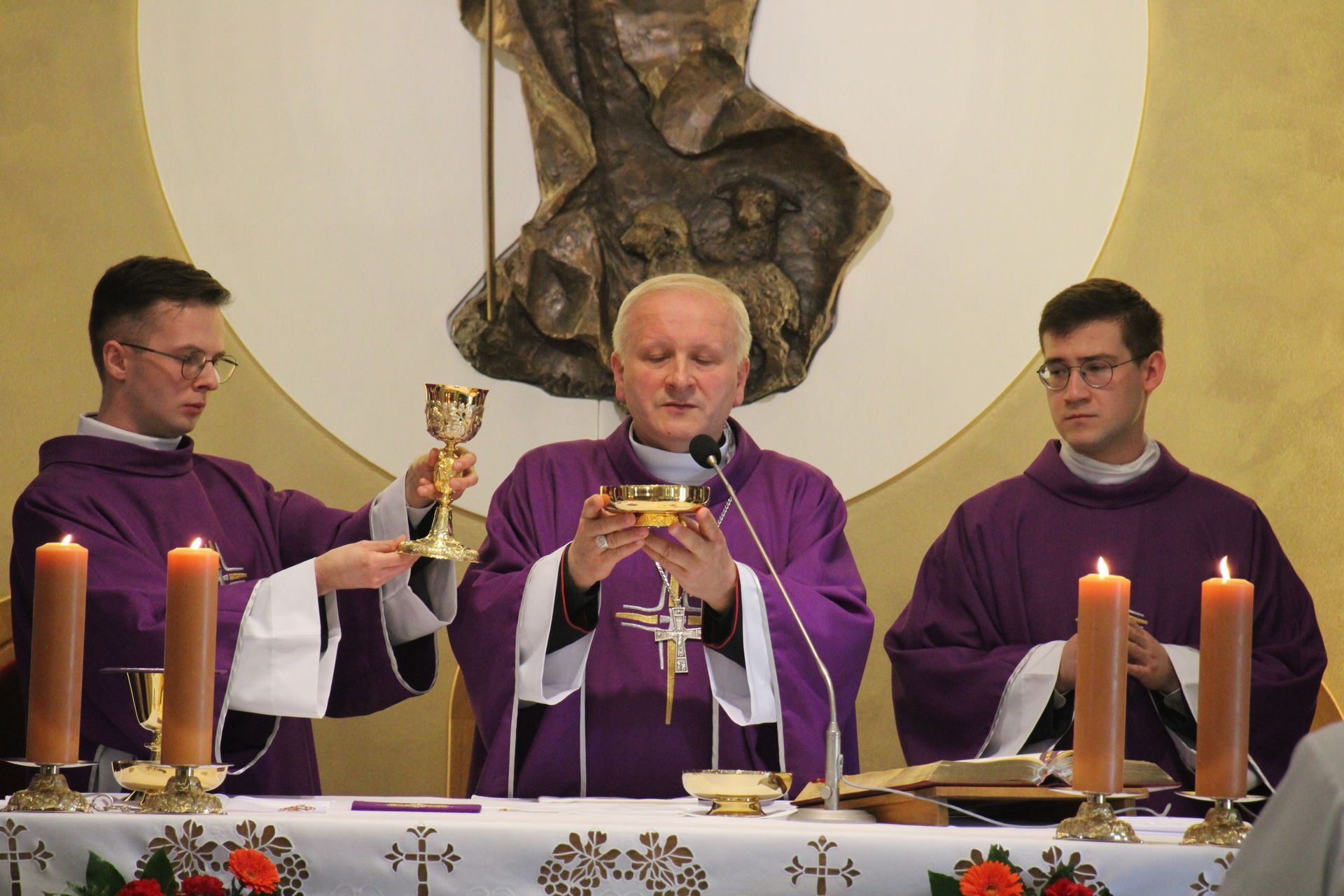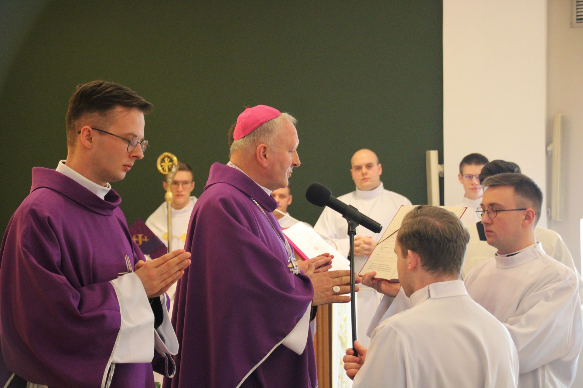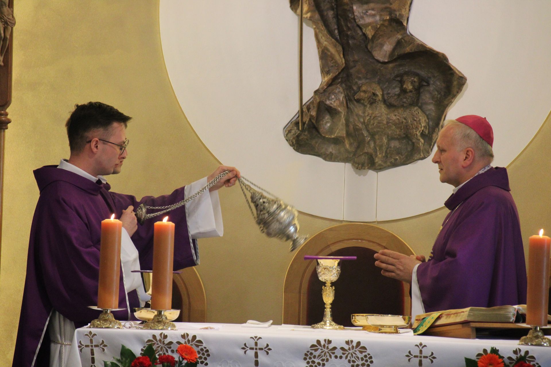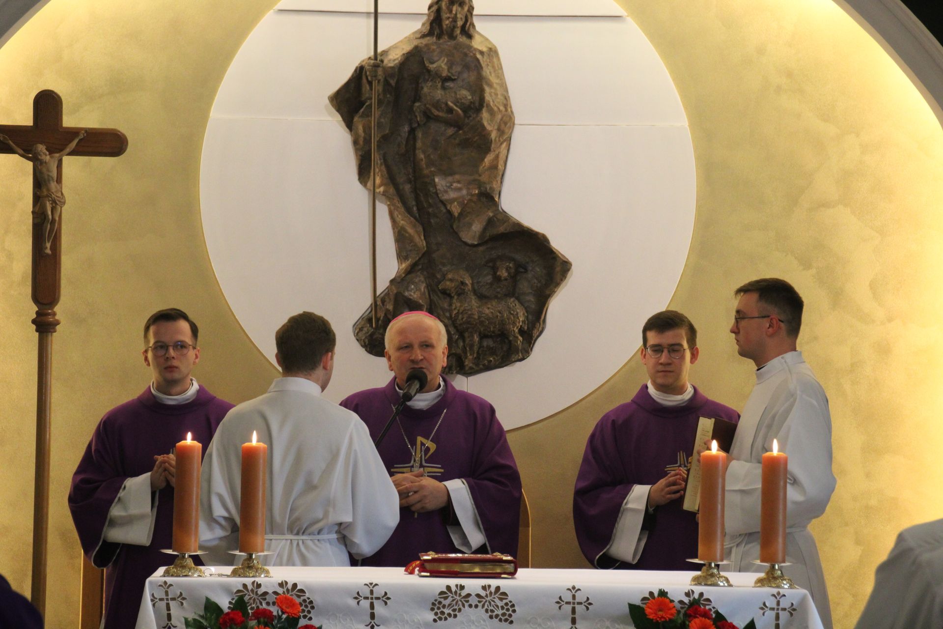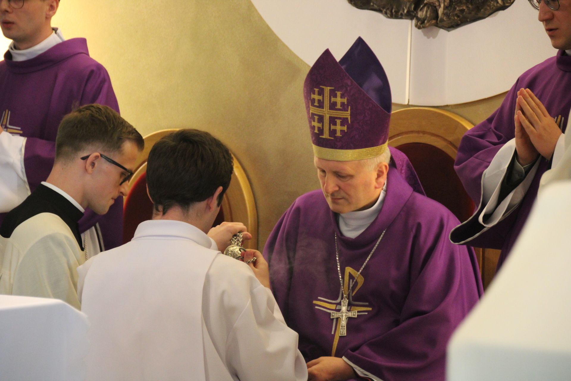26 listopada, kilka dni po liturgicznym wspomnieniu św. Cecylii, która jest patronką muzyki kościelnej, przeżywaliśmy w naszej wspólnocie seminaryjnej wybudzenie i poświęcenie nowych organów. Z tej okazji gościliśmy w naszym domu JE abp. Zbigniewa Zielińskiego metropolitę poznańskiego oraz byłych kantorów seminaryjnych. Eucharystii, podczas której nasze organy zostały wybudzone, przewodniczył abp Zbigniew wraz z gośćmi oraz naszymi moderatorami. Podczas homilii wspomniał o kończącym się już Roku Jubileuszowym oraz zachęcił, abyśmy w nowym roku liturgicznym i formacyjnym pod hasłem uczniowie-misjonarze potrafili wychodzić jak misjonarze do ludzi z nadzieją, którą podczas tego Roku Jubileuszowego nabraliśmy i byli jej znakami w tym świecie. Po wygłoszonej homilii JE abp. Zbigniew wybudził, poświęcił oraz okadził nasze organy. Po skończonej Eucharystii udaliśmy się na refektarz, gdzie podziękowaliśmy naszym gościom za przybycie i danie świadectwa o tym, że muzyka jest nieodłączną częścią liturgii. Po zakończonej modlitwie, dalszy ciąg świętowania miał miejsce na refektarzu, gdzie czekała na nas gotowa kolacja, którą wspólnie spożyliśmy, a następnie mogliśmy wrócić do kaplicy, gdzie wysłuchaliśmy koncertu, pt. "Laudate Dominum" naszej seminaryjnej scholi "Inclina Aurem". Większość koncertu miała na celu pokazać możliwości naszego nowego instrumentu muzycznego, lecz znalazł się także moment, w którym mogliśmy wysłuchać naszej scholi. Koncert odbył się w następującym porządku: Preludium w klasycznym stylu Gordona Younga (wyk. kl. Bartłomiej) Toccata i fuga d-moll Jana Sebastiana Bacha (wyk. kl. Bartłomiej) Preludium c-moll op. 28 Fryderyka Chopina (wyk. kl. Marcel) Ave Maria Franza Schuberta wykonany przez duet organowo - skrzypcowy (wyk. kl. Marcel (organy) i kl. Franciszek (skrzypce) Laudate Dominum Ciro Grassiego (wyk. Inclina Aurem) Toccata Georgiego Mushela (wyk. Tomasz Kramer) Dziękujemy wszystkim, dzięki którym mogliśmy świętować uroczyste wybudzenie organów, w szczególności pragniemy podziękować JE abp. Zbigniewowi Zielińskiemu oraz firmie, która te organy dla nas znalazła, sprowadziła i zbudowała. Jesteśmy wdzięczni także wszystkim, którzy byli w tym dniu z nami. Prosimy również o modlitwę, aby te organy służymy wielu następnym pokoleniom i wspomagały ich w modlitwie w tej kaplicy. Zdjęcia za: Arcybiskupie Seminarium Duchowne