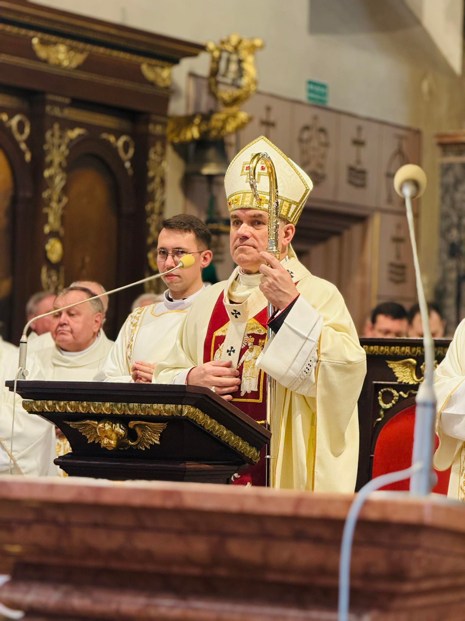 Po zakończonych rekolekcjach wielkopostnych, w niedzielę 08 marca świętowaliśmy w naszej wspólnocie seminaryjnej akolitat braci z kursu IV. Z tej okazji przybyli do naszego domu bliscy naszych nowo ustanowionych akolitów, a także inni zaproszeni goście wraz z JE bp. Radosławem Orchowiczem - biskupem pomocniczym archidiecezji gnieźnieńskiej na czele. Posługę akolitatu przyjęło dziesięciu naszych braci - 4 z archidiecezji poznańskiej, 4 z archidiecezji gnieźnieńskiej oraz 2 z diecezji kaliskiej. Z naszej diecezji posługę przyjęli: 1) kl. Jan Matuszak z parafii pw. św. papieża Jana Pawła II w Kaliszu 2) kl. Martyn Nagorzycki z parafii pw. św. Marcina w Jarocinie Uroczyste świętowanie rozpoczęliśmy wspólną jutrznią, która zakończyła nasze rekolekcje wielkopostne. Jutrzni przewodniczył ojciec duchowny - o. Łukasz Zawidzki, który również wygłosił podczas niej słowo dotyczące posługi akolity. Uroczysta Eucharystia z udzieleniem posługi akolitatu rozpoczęła się o godzinie 11.00 w naszej kaplicy seminaryjnej. Podczas homilii bp Radosław podjął temat czerpania wody ze źródła, którym ma być Chrystus. Odniósł to słowo do nowo ustanowionych akolitów, aby pamiętali, że... Akolici najpierw mają być, a więc "esse", a dopiero później czynić, czyli "egere". - podkreślił homilista Akolici najpierw powinni czerpać od Chrystusa, aby mogli dawać Chrystusa innym. Następnym tematem podjętym w trakcie homilii było natomiast dawanie siebie innym na wzór Chrystusa eucharystycznego. Homilista zaznaczył, że... Akolici powinni dawać siebie ludziom na wzór Chrystusa w Eucharystii . Po zakończonej modlitwie, udaliśmy się na refektarz, aby wspólnie spożyć posiłek. Dziękujemy JE bp. Radosławowi Orchowiczowi za udzielenie posługi akolitatu naszym braciom z kursu IV. Pamiętajmy również o nowo ustanowionych akolitach i módlmy się, aby zawsze godnie i odpowiedzialnie pełnili służbę powierzoną im w Kościele. Zdjęcia za: Arcybiskupie Seminarium Duchowne w Poznaniu .