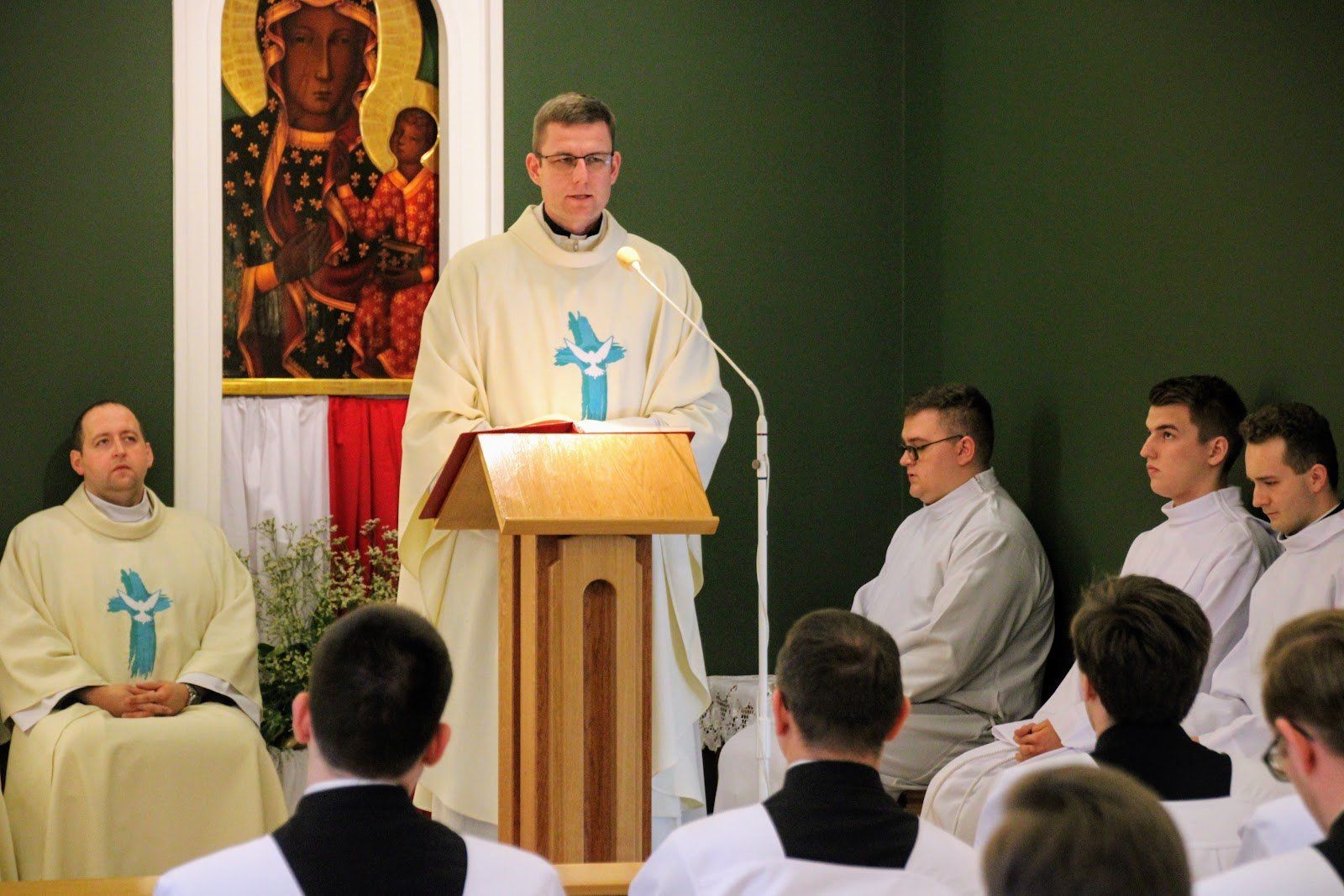 Tegoroczne rekolekcje adwentowe przeżywaliśmy w dniach 09-14 listopada i poprowadził je dla nas o. Janusz Chwast OP. Podczas rekolekcji towarzyszył nam cytat św. Katarzyny ze Sieny: "Dusza zamieszkuje celę poznania siebie, w której jest druga cela poznania dobroci Boga". W trakcie konferencji, o. Janusz przedstawił nam wiele myśli świętych, m.in. św. Katarzyny ze Sieny, św. s. Faustyny Kowalskiej, czy też św. Bernarda z Clairvaux. Rekolekcjonista przekazał nam także wiele myśli na temat pychy, modlitwy, pokory, życia w prawdzie i poznaniu samego siebie, czym modlitwa powinna być. Przekazał nam w naukach również swoje doświadczenie z bycia Magistrem nowicjuszy w klasztorze oo. Dominikanów w Warszawie na Służewie przez wiele lat. W swoich rozważaniach ojciec dominikanin chciał nam przekazać bardzo ważną kwestię dotyczącą relacji z Bogiem: "Poznanie siebie jest wprost proporcjonalne do poznania Boga. Im lepiej będziemy znali siebie, tym lepiej będziemy znali Boga". - powiedział rekolekcjonista Dziękujemy o. Januszowi za przekazanie nam wielu tak ważnych i wartościowych myśli, konkretnie odnoszących się do naszego życia, podzieleniem się z nami swoim doświadczeniem z przepowiadania i życia kapłańskiego oraz poprowadzenie nas przez ten czas wraz z myślami wielu świętych. Pamiętajmy o modlitwie w intencji o. Janusza, aby w dalszym ciągu poddawał się natchnieniom Ducha Świętego i wypełniał swoje powołanie do głoszenia Ewangelii według zamysłu Bożego. Zdjęcia za: Arcybiskupie Seminarium Duchowne