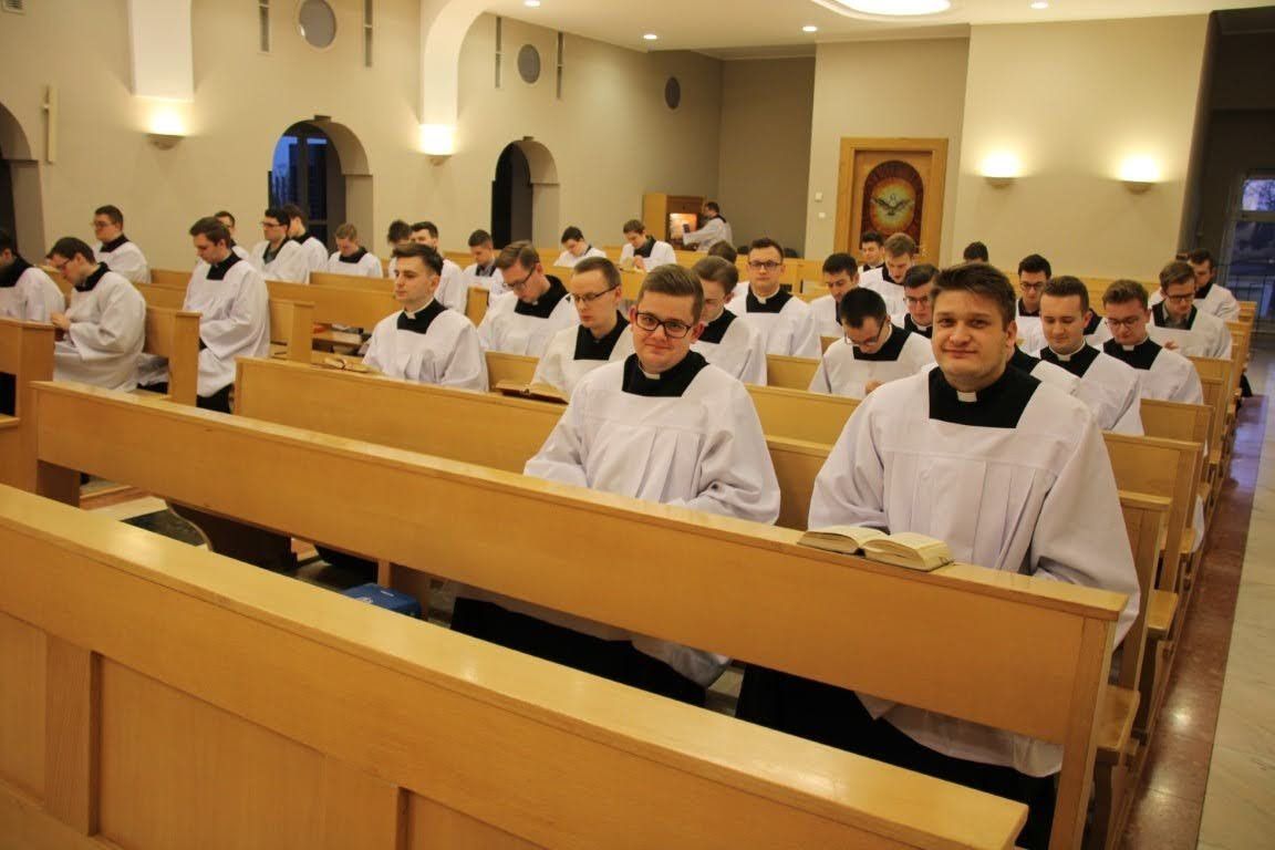 Tegoroczne rekolekcje adwentowe przeżywaliśmy w dniach 09-14 listopada i poprowadził je dla nas o. Janusz Chwast OP. Podczas rekolekcji towarzyszył nam cytat św. Katarzyny ze Sieny: "Dusza zamieszkuje celę poznania siebie, w której jest druga cela poznania dobroci Boga". W trakcie konferencji, o. Janusz przedstawił nam wiele myśli świętych, m.in. św. Katarzyny ze Sieny, św. s. Faustyny Kowalskiej, czy też św. Bernarda z Clairvaux. Rekolekcjonista przekazał nam także wiele myśli na temat pychy, modlitwy, pokory, życia w prawdzie i poznaniu samego siebie, czym modlitwa powinna być. Przekazał nam w naukach również swoje doświadczenie z bycia Magistrem nowicjuszy w klasztorze oo. Dominikanów w Warszawie na Służewie przez wiele lat. W swoich rozważaniach ojciec dominikanin chciał nam przekazać bardzo ważną kwestię dotyczącą relacji z Bogiem: "Poznanie siebie jest wprost proporcjonalne do poznania Boga. Im lepiej będziemy znali siebie, tym lepiej będziemy znali Boga". - powiedział rekolekcjonista Dziękujemy o. Januszowi za przekazanie nam wielu tak ważnych i wartościowych myśli, konkretnie odnoszących się do naszego życia, podzieleniem się z nami swoim doświadczeniem z przepowiadania i życia kapłańskiego oraz poprowadzenie nas przez ten czas wraz z myślami wielu świętych. Pamiętajmy o modlitwie w intencji o. Janusza, aby w dalszym ciągu poddawał się natchnieniom Ducha Świętego i wypełniał swoje powołanie do głoszenia Ewangelii według zamysłu Bożego. Zdjęcia za: Arcybiskupie Seminarium Duchowne