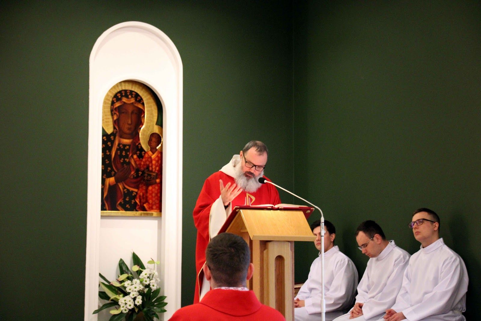 Kończąc ten czas wyciszenia się i spotkania ze Słowem Bożym uczestniczymy w Eucharystii pod przewodnictwem o. Surówki, który celebrował ją wraz z naszymi przełożonymi. W homilii pouczył nas abyśmy nie bali się zadawać pytań jeśli czegoś nie rozumiemy. Mamy także odważnie kierować nasze wątpliwości do Jezusa a On nam wszystko wyjaśni. Chrystus dopuszcza nas do jedności ze sobą, do takiej relacji jaka jest między Nim a Ojcem. Dominikanin zostawił nas ze słowami, w których mówił, że to działanie świadczy o osobie i powinno być spójne z tym w kogo wierzymy.