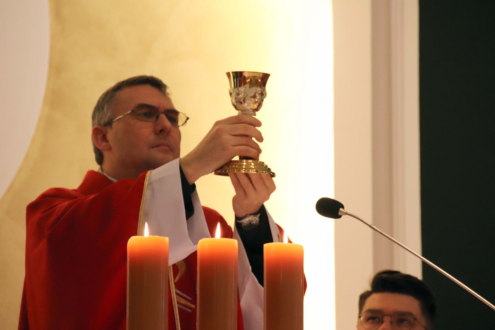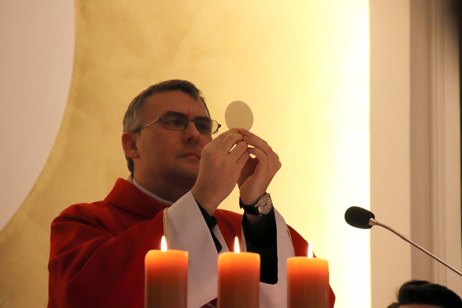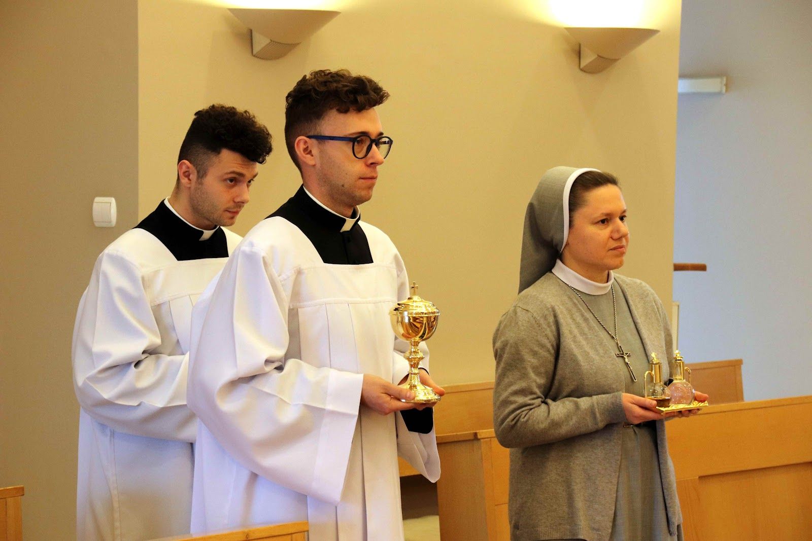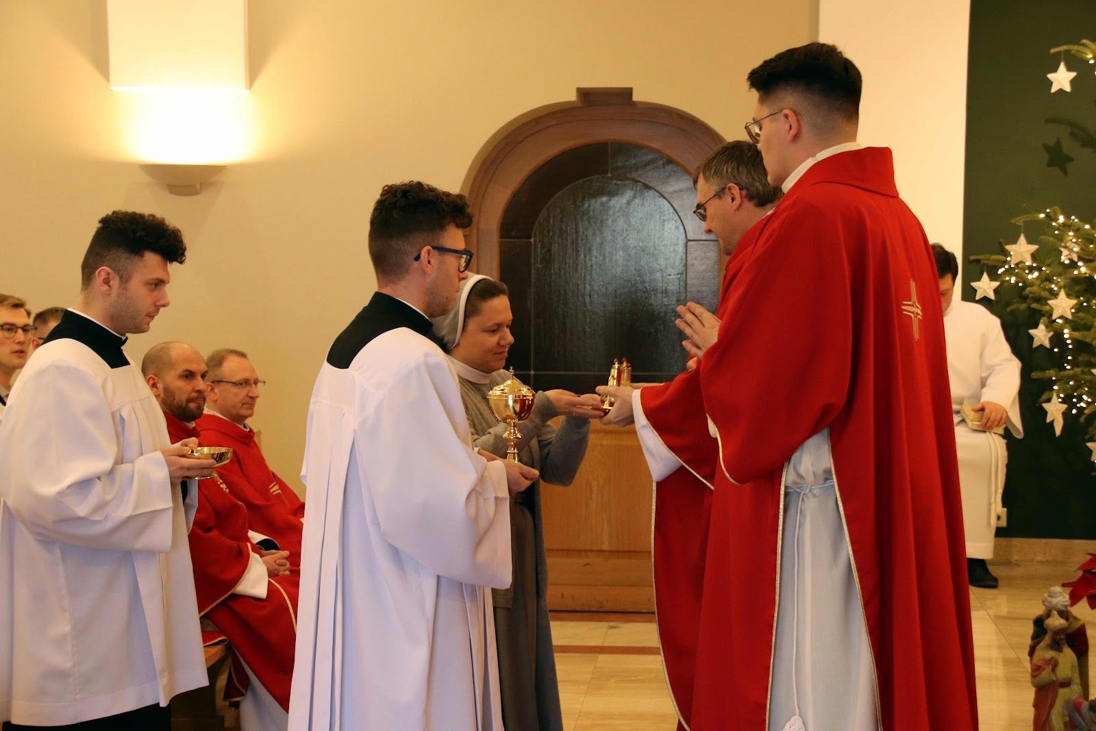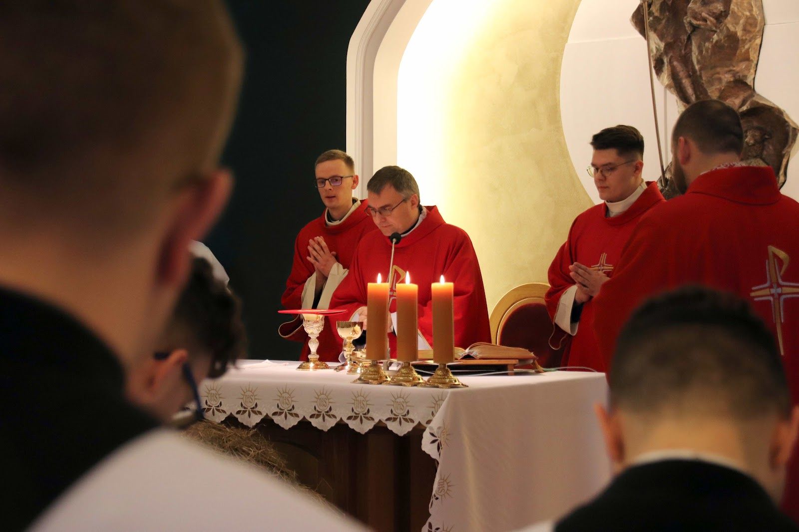 W trakcie Eucharystii kończącej czas naszego skupienia homilię wygłosił o. Łukasz, który bezpośrednio odnosząc się do pierwszego czytania (Hbr 9, 1-3. 11-14) mówił nam o tym, że Pan Bóg pragnie wejść do naszego wnętrza naszego serca będącego miejscem najświętszym - jednakże nie łamie naszej woli i czeka na to, abyśmy mu to serce otworzyli