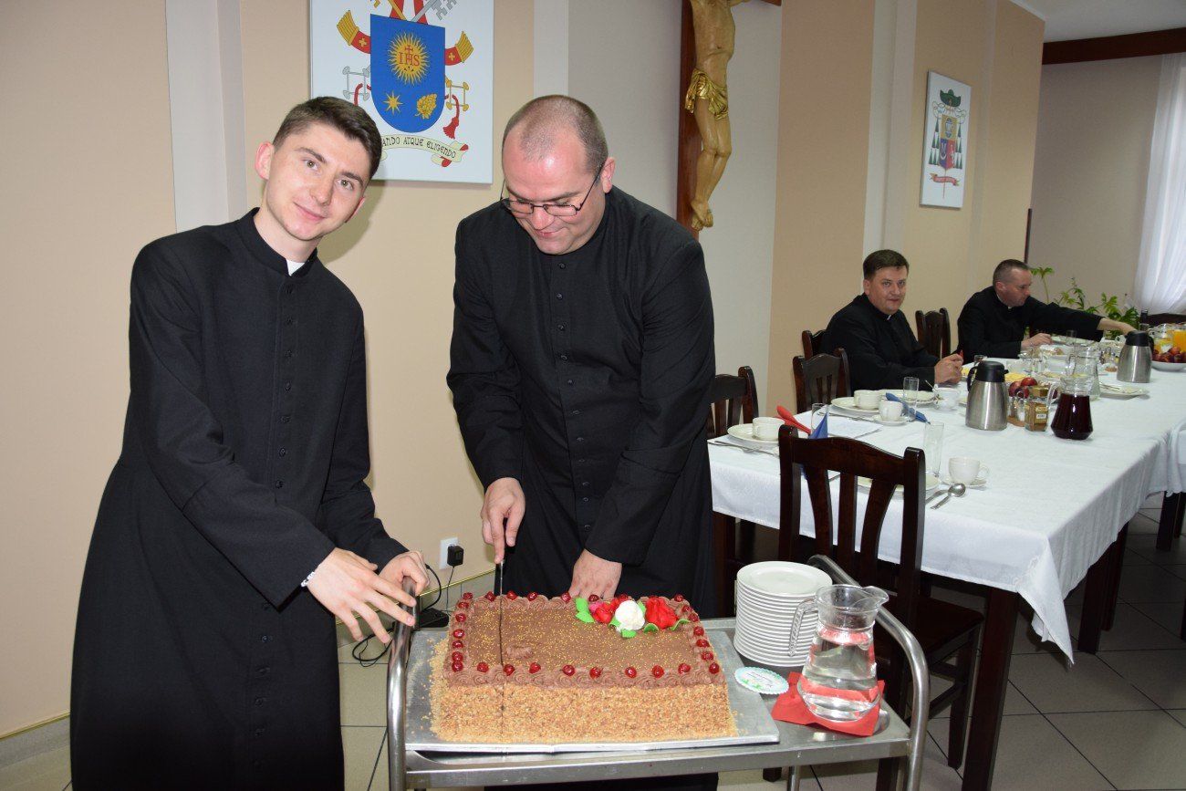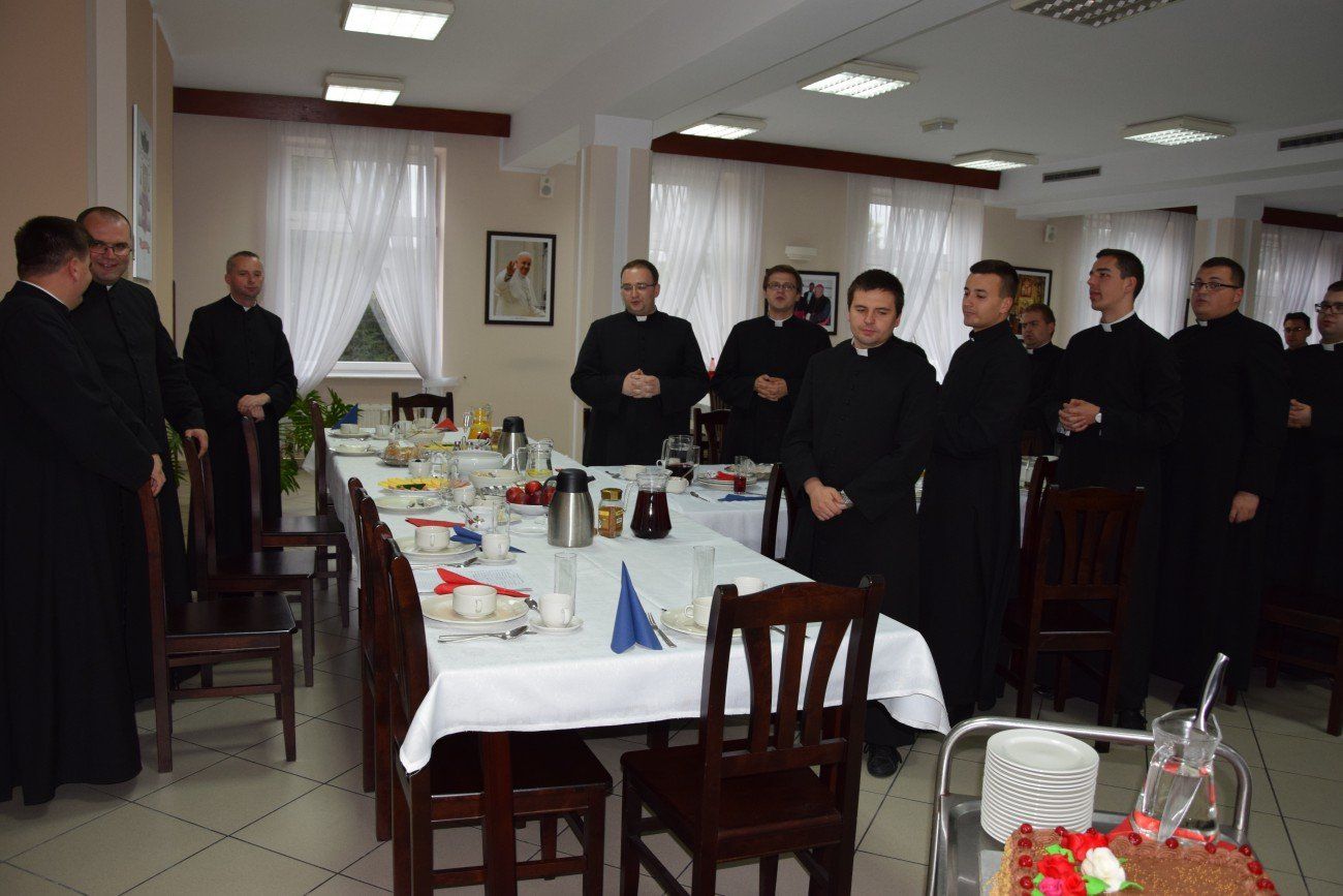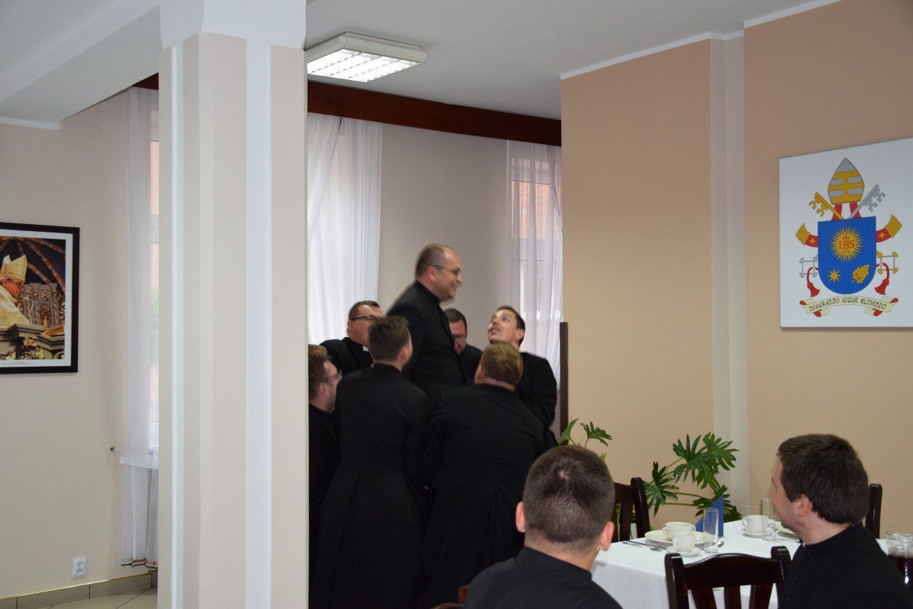 Dzień skupienia zakończyła uroczysta Eucharystia pod przewodnictwem księdza Rektora. Na sam koniec Mszy świętej dziekan alumnów wraz z wicedziekanem złożyli księdzu Rektorowi podziękowania za wygłoszone w tym dniu słowo oraz życzenia z okazji urodzin, które obchodził tego dnia, z okazji Dnia Ojca (bo przecież Rektor to nasz seminaryjny Tata) oraz z okazji zbliżających się imienin. Po Eucharystii miała miejsce uroczysta kolacja i kawa z tortem imieninowym. W czasie wspólnego śpiewu Plurimos annos klerycy wyhuśtali solenizanta.