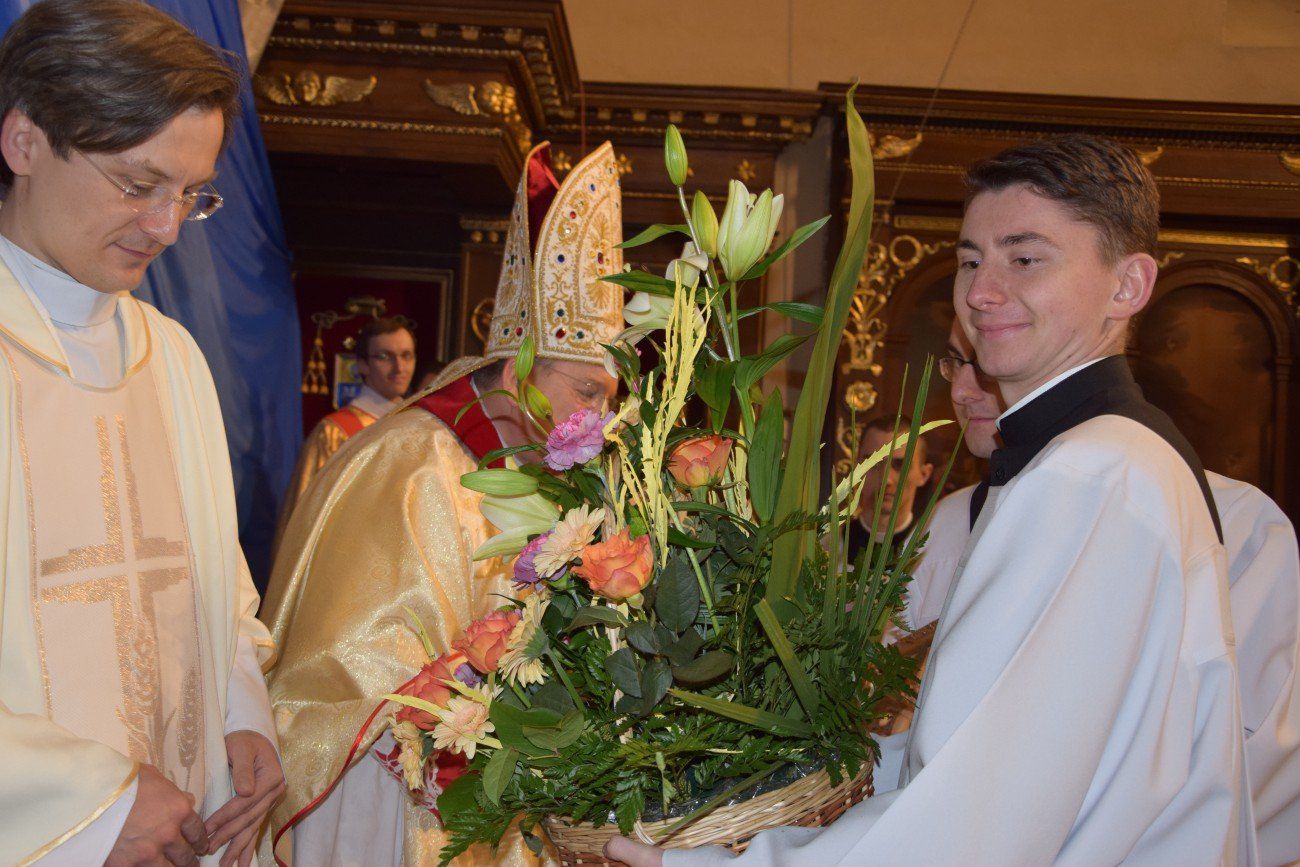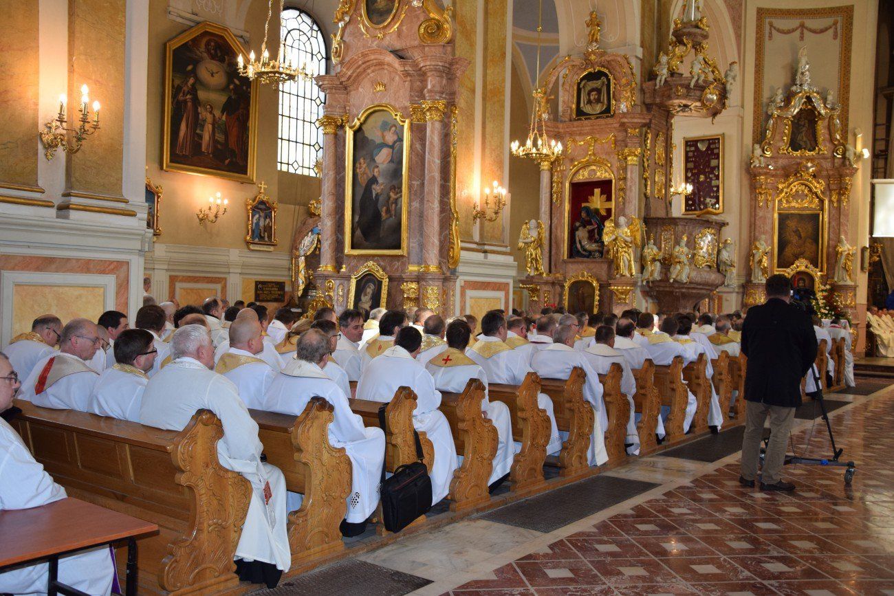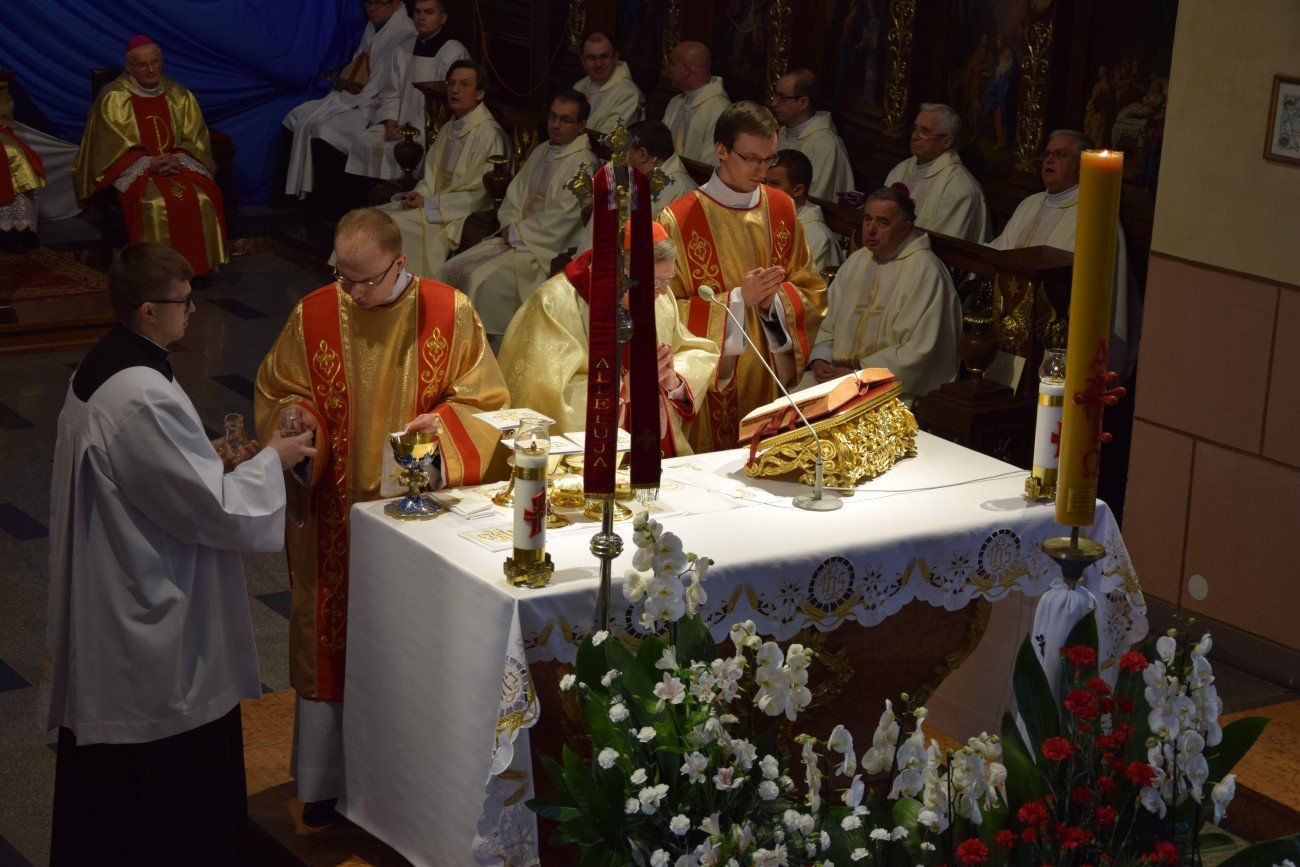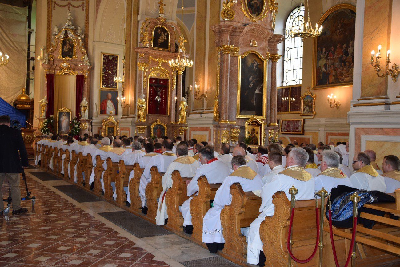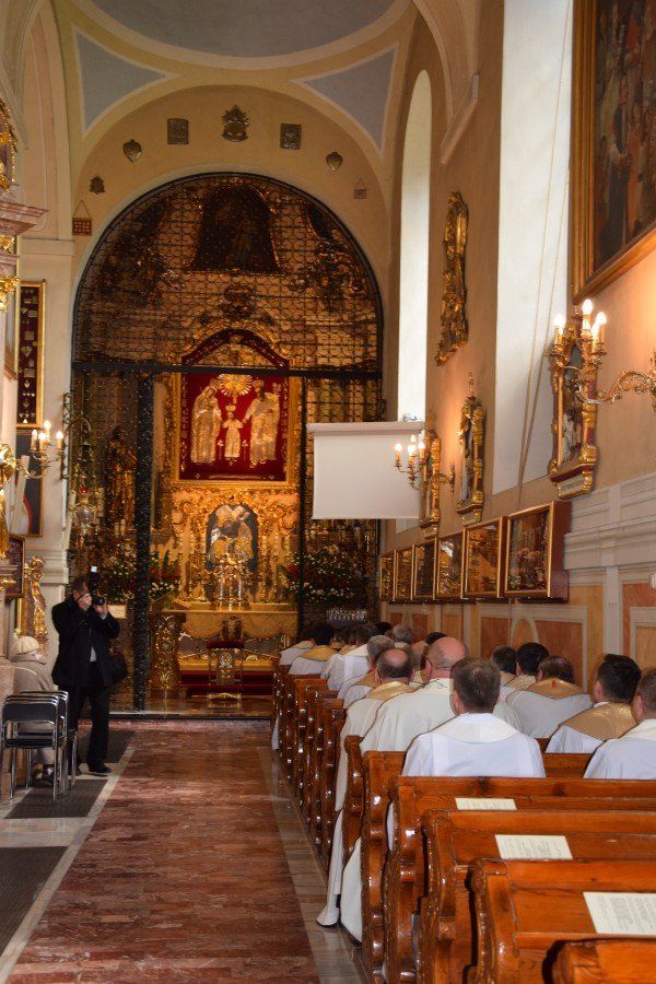 Z tej okazji o godzinie 10:00 w katedrze kaliskiej rozpoczęło się nabożeństwo pokutne wraz z adoracją Najświętszego Sakramentu i ze spowiedzią dla naszych kapłanów. Nabożeństwu przewodniczył ojciec duchowny naszego seminarium ksiądz Marcin Załężny. Po nabożeństwie wszyscy kapłani udali się w procesji do bazyliki świętego Józefa, gdzie sprawowana była uroczysta Eucharystia. Mszy świętej koncelebrowanej przez wszystkich przybyłych kapłanów oraz przez naszych księży biskupów przewodniczył ksiądz Kardynał Raymond Leo Burke. Po Eucharystii wszyscy udali się do naszego seminarium, gdzie miał miejsce wspólny obiad.
