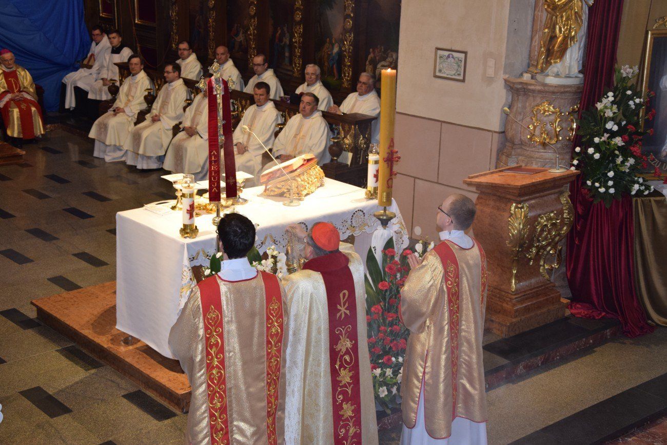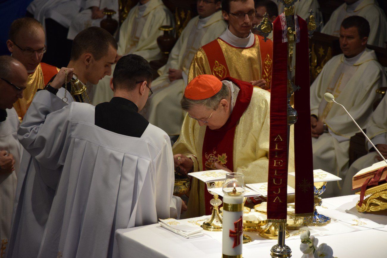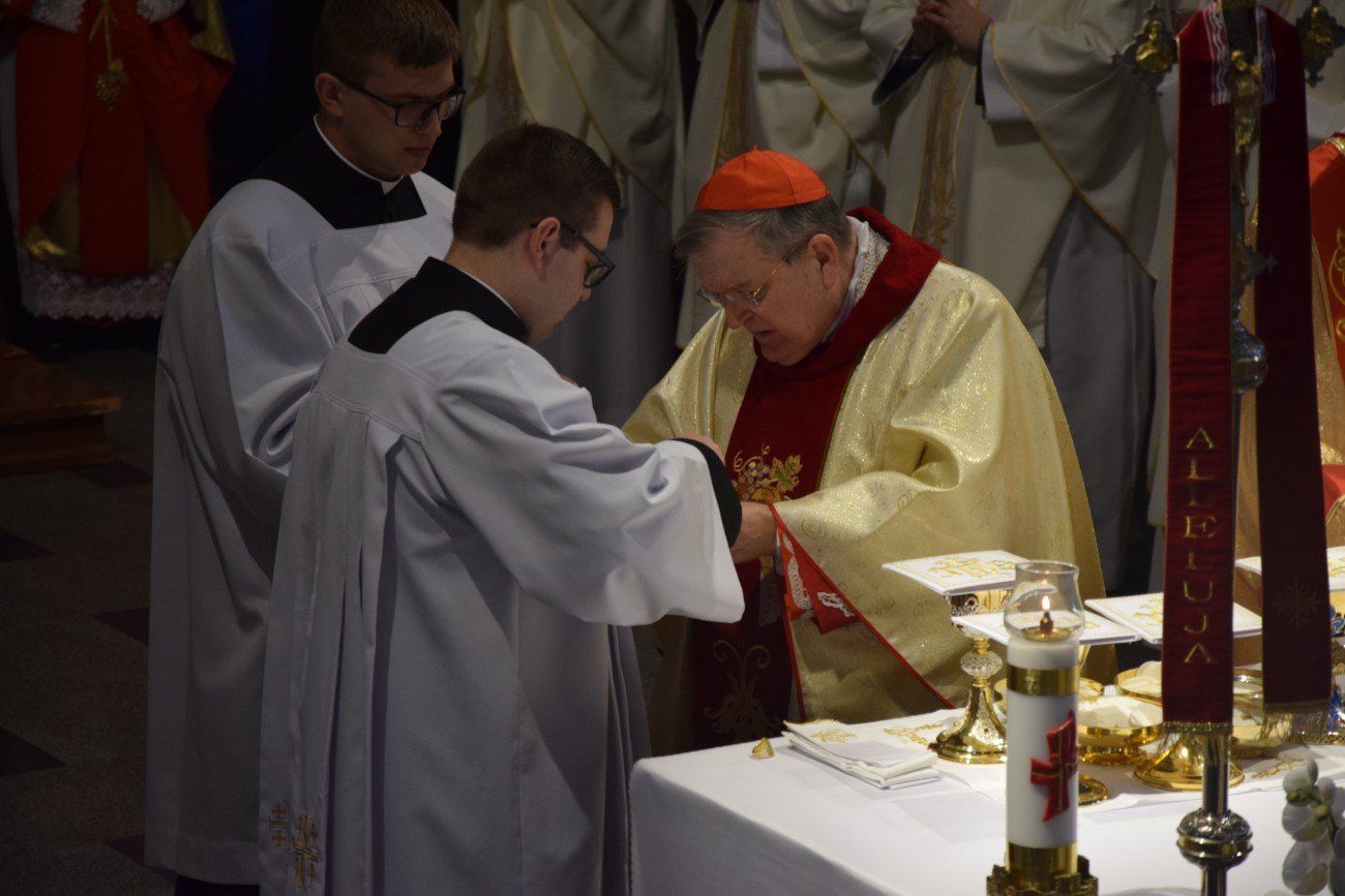 Z tej okazji o godzinie 10:00 w katedrze kaliskiej rozpoczęło się nabożeństwo pokutne wraz z adoracją Najświętszego Sakramentu i ze spowiedzią dla naszych kapłanów. Nabożeństwu przewodniczył ojciec duchowny naszego seminarium ksiądz Marcin Załężny. Po nabożeństwie wszyscy kapłani udali się w procesji do bazyliki świętego Józefa, gdzie sprawowana była uroczysta Eucharystia. Mszy świętej koncelebrowanej przez wszystkich przybyłych kapłanów oraz przez naszych księży biskupów przewodniczył ksiądz Kardynał Raymond Leo Burke. Po Eucharystii wszyscy udali się do naszego seminarium, gdzie miał miejsce wspólny obiad.