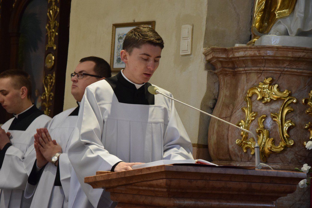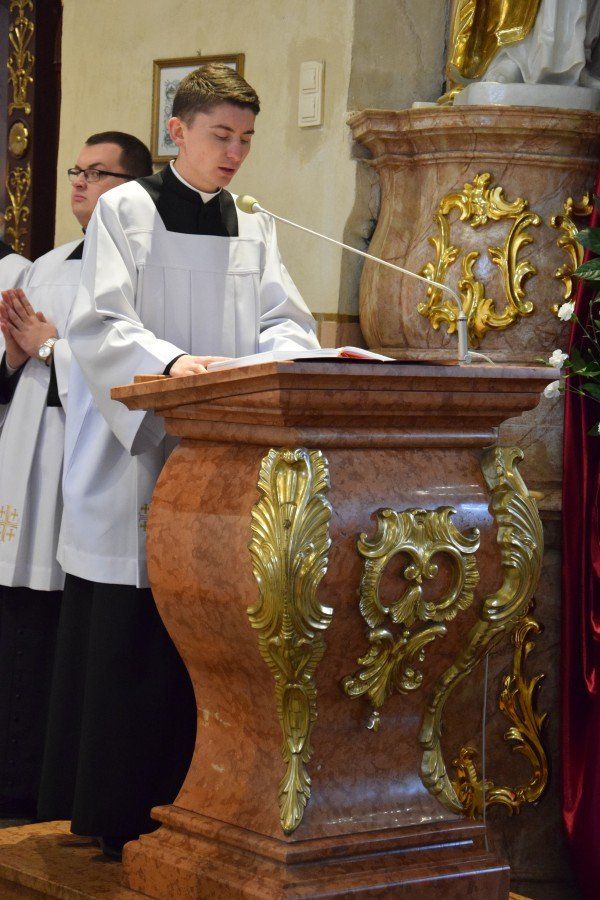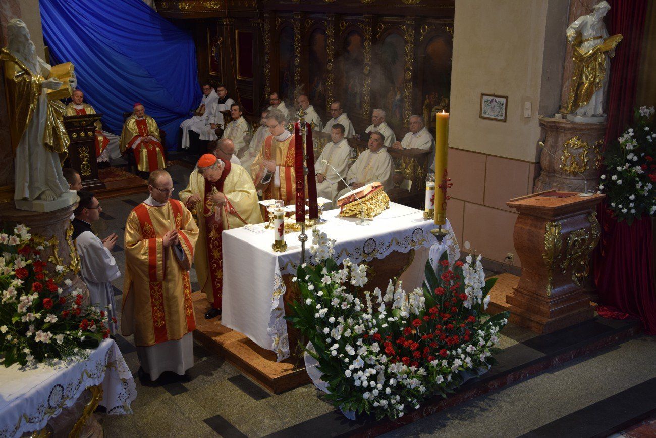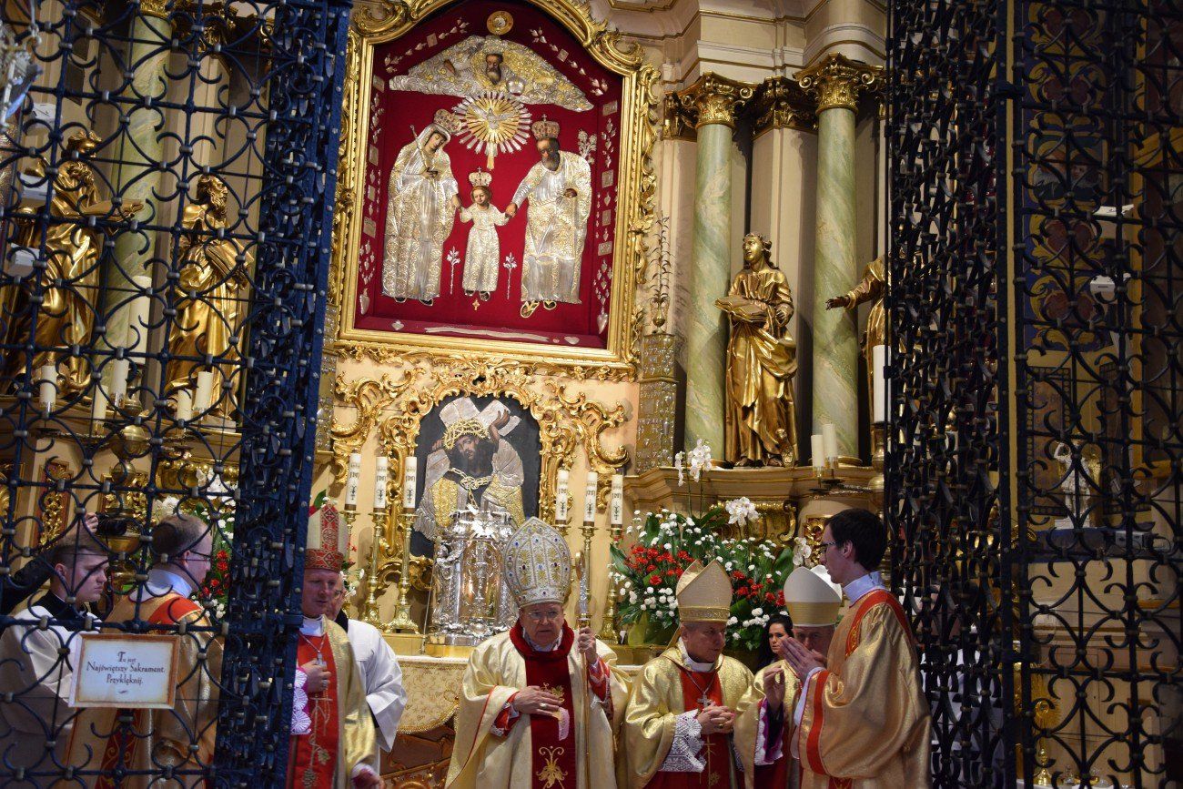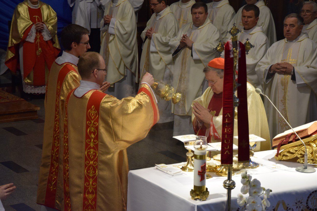 Z tej okazji o godzinie 10:00 w katedrze kaliskiej rozpoczęło się nabożeństwo pokutne wraz z adoracją Najświętszego Sakramentu i ze spowiedzią dla naszych kapłanów. Nabożeństwu przewodniczył ojciec duchowny naszego seminarium ksiądz Marcin Załężny. Po nabożeństwie wszyscy kapłani udali się w procesji do bazyliki świętego Józefa, gdzie sprawowana była uroczysta Eucharystia. Mszy świętej koncelebrowanej przez wszystkich przybyłych kapłanów oraz przez naszych księży biskupów przewodniczył ksiądz Kardynał Raymond Leo Burke. Po Eucharystii wszyscy udali się do naszego seminarium, gdzie miał miejsce wspólny obiad.
