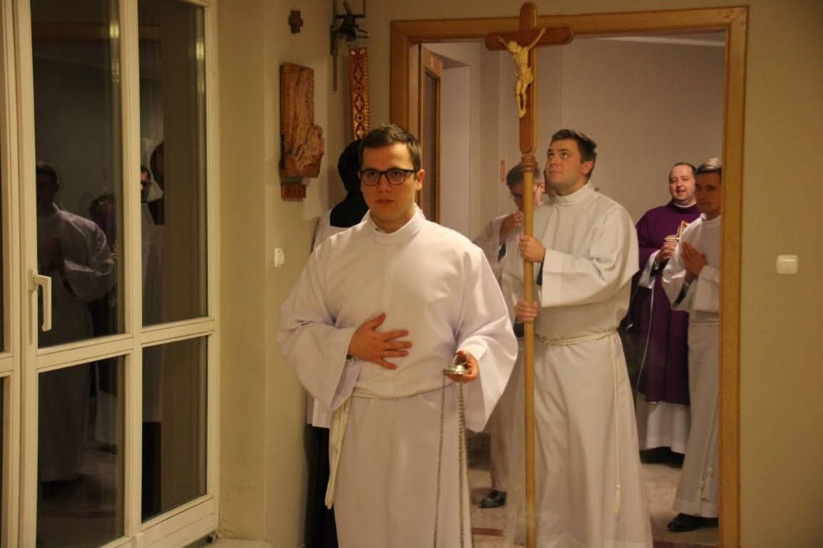 Tegoroczne rekolekcje adwentowe przeżywaliśmy w dniach 09-14 listopada i poprowadził je dla nas o. Janusz Chwast OP. Podczas rekolekcji towarzyszył nam cytat św. Katarzyny ze Sieny: "Dusza zamieszkuje celę poznania siebie, w której jest druga cela poznania dobroci Boga". W trakcie konferencji, o. Janusz przedstawił nam wiele myśli świętych, m.in. św. Katarzyny ze Sieny, św. s. Faustyny Kowalskiej, czy też św. Bernarda z Clairvaux. Rekolekcjonista przekazał nam także wiele myśli na temat pychy, modlitwy, pokory, życia w prawdzie i poznaniu samego siebie, czym modlitwa powinna być. Przekazał nam w naukach również swoje doświadczenie z bycia Magistrem nowicjuszy w klasztorze oo. Dominikanów w Warszawie na Służewie przez wiele lat. W swoich rozważaniach ojciec dominikanin chciał nam przekazać bardzo ważną kwestię dotyczącą relacji z Bogiem: "Poznanie siebie jest wprost proporcjonalne do poznania Boga. Im lepiej będziemy znali siebie, tym lepiej będziemy znali Boga". - powiedział rekolekcjonista Dziękujemy o. Januszowi za przekazanie nam wielu tak ważnych i wartościowych myśli, konkretnie odnoszących się do naszego życia, podzieleniem się z nami swoim doświadczeniem z przepowiadania i życia kapłańskiego oraz poprowadzenie nas przez ten czas wraz z myślami wielu świętych. Pamiętajmy o modlitwie w intencji o. Janusza, aby w dalszym ciągu poddawał się natchnieniom Ducha Świętego i wypełniał swoje powołanie do głoszenia Ewangelii według zamysłu Bożego. Zdjęcia za: Arcybiskupie Seminarium Duchowne