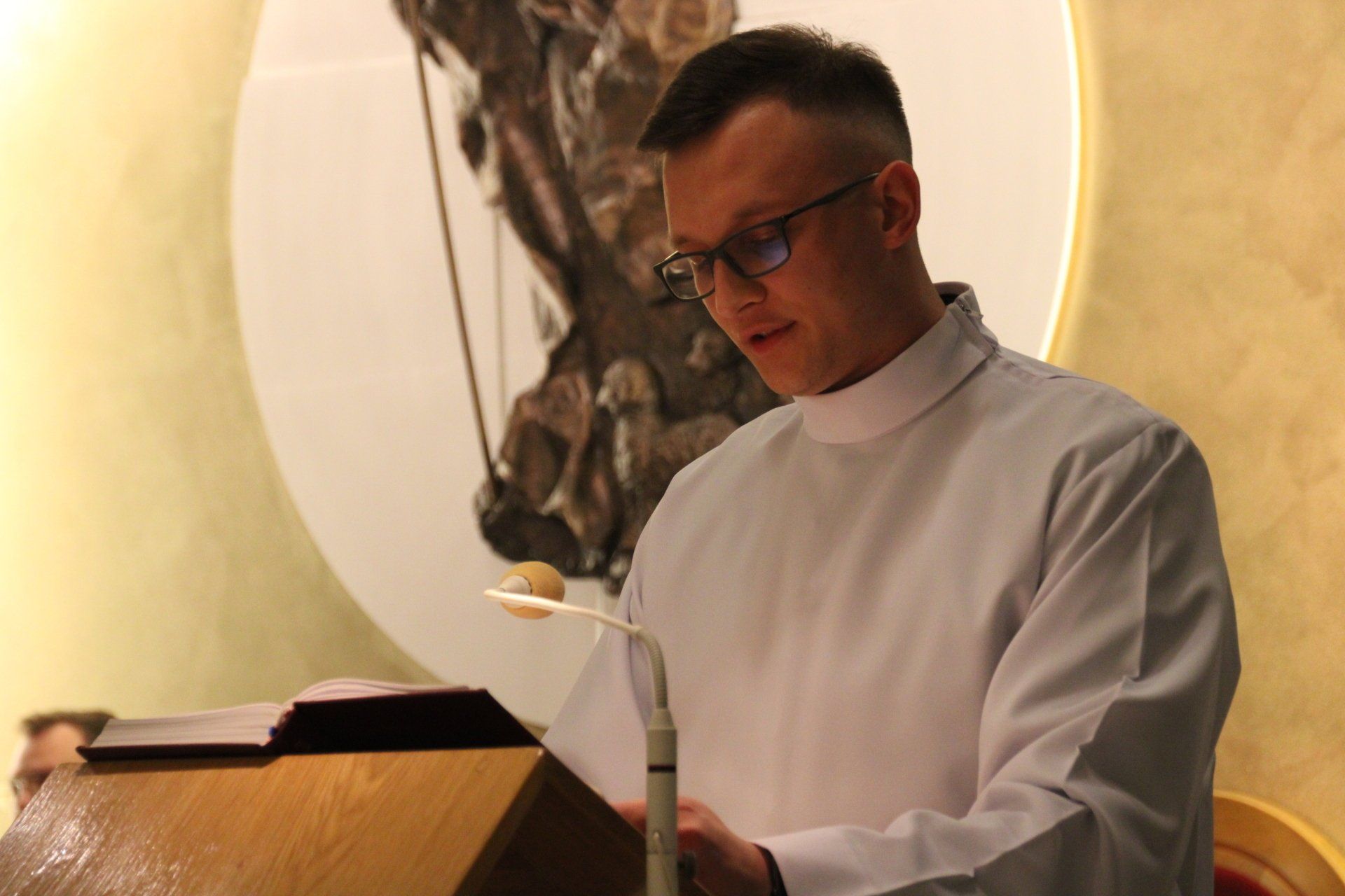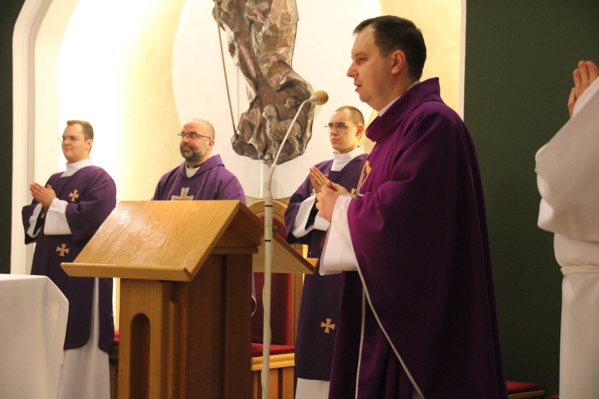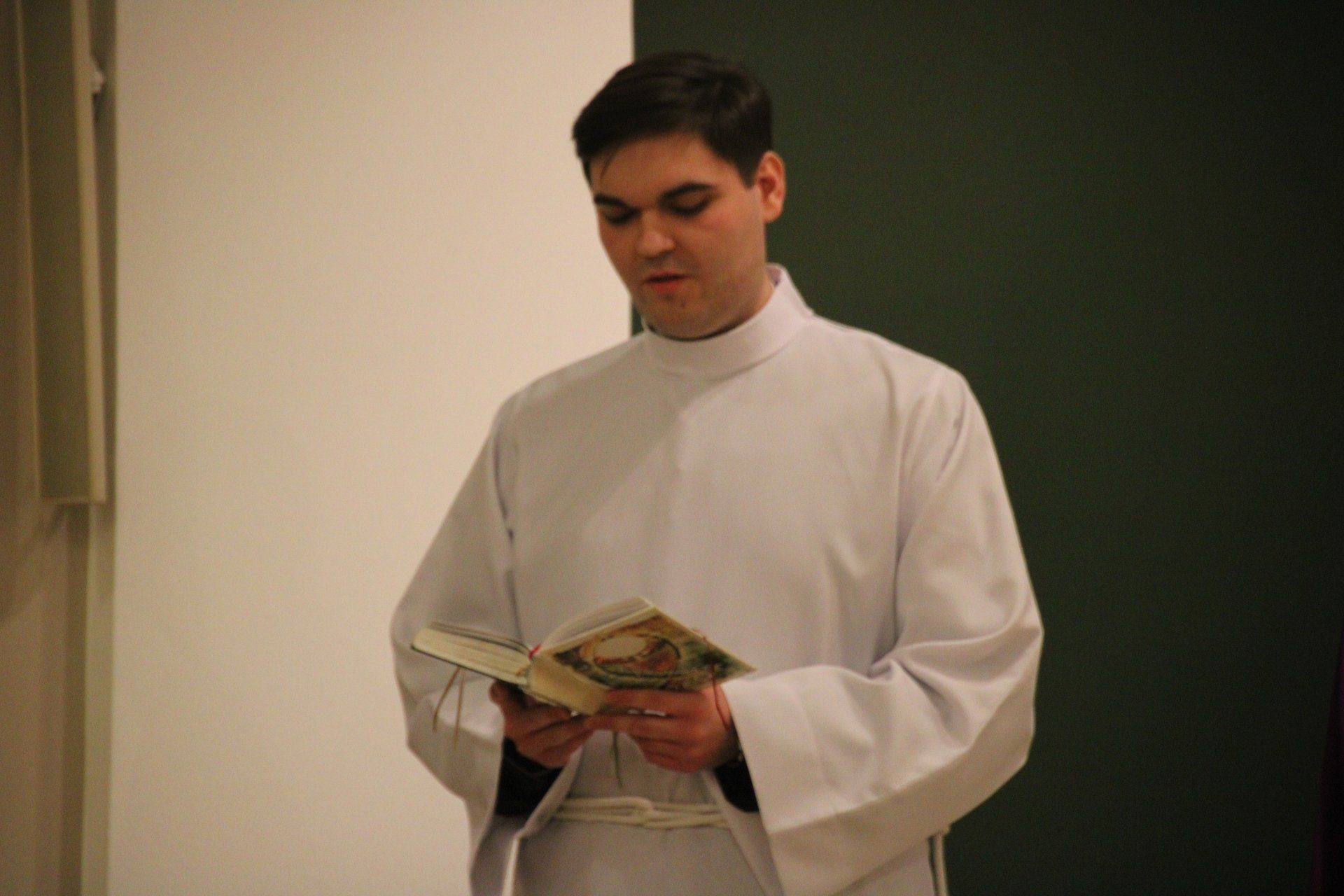 Z naszym goście spotkaliśmy się na wspólnej Eucharystii sprawowanej wraz z przełożonymi seminaryjnymi. Podczas Mszy Świętej ks. Piotr podzielił się z nami historią swojej posługi kapłańskiej oraz rozeznawania powołania. Ukazał także, iż w życiu pomimo trudnych doświadczeń można odkryć Boga, który zdecydowanie staje w opozycji do zła.