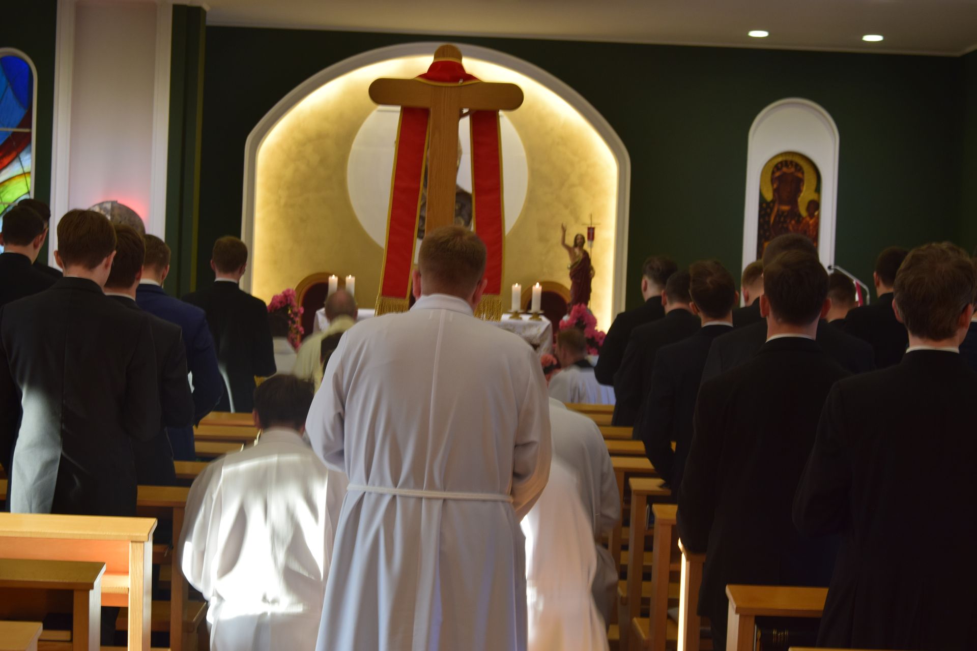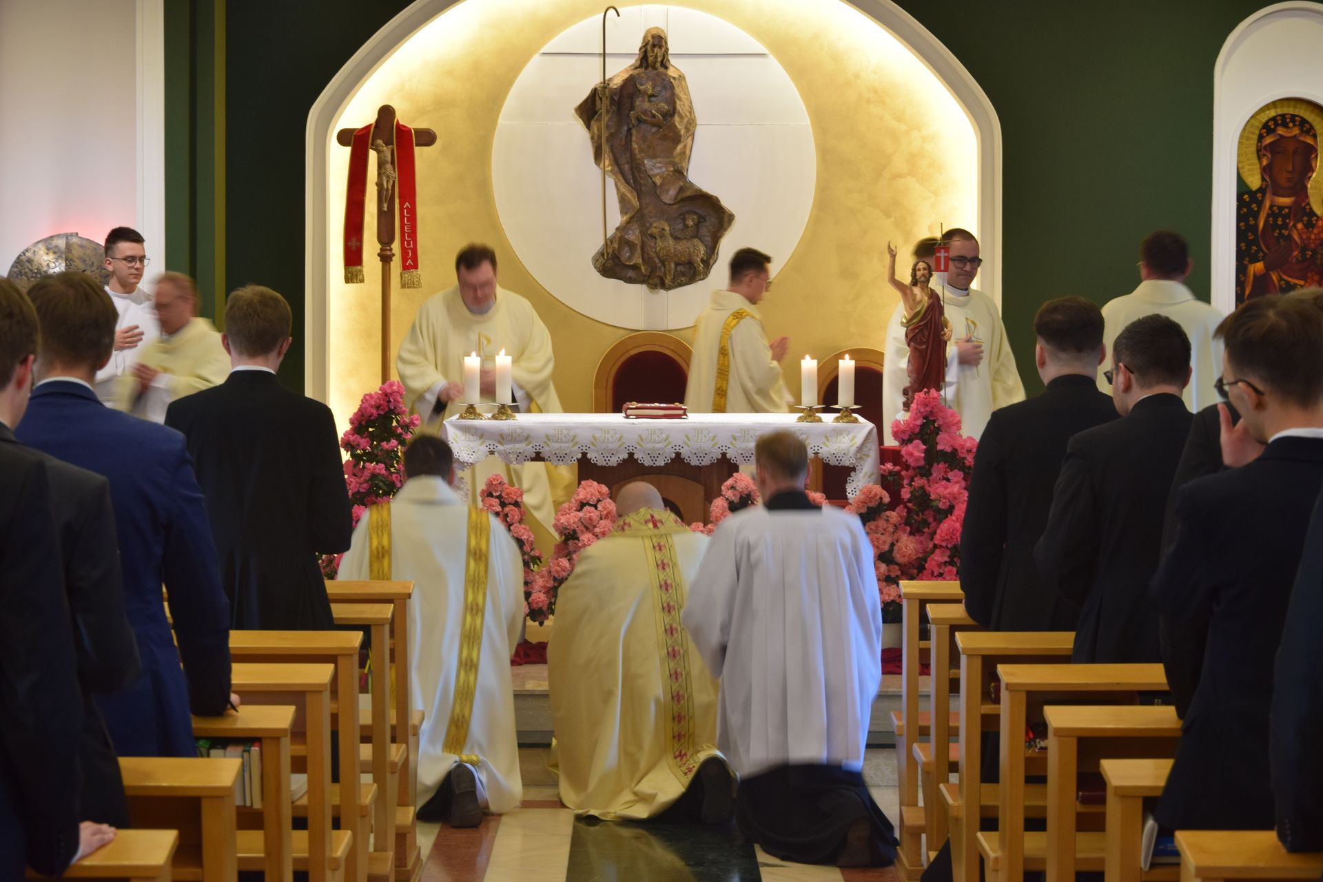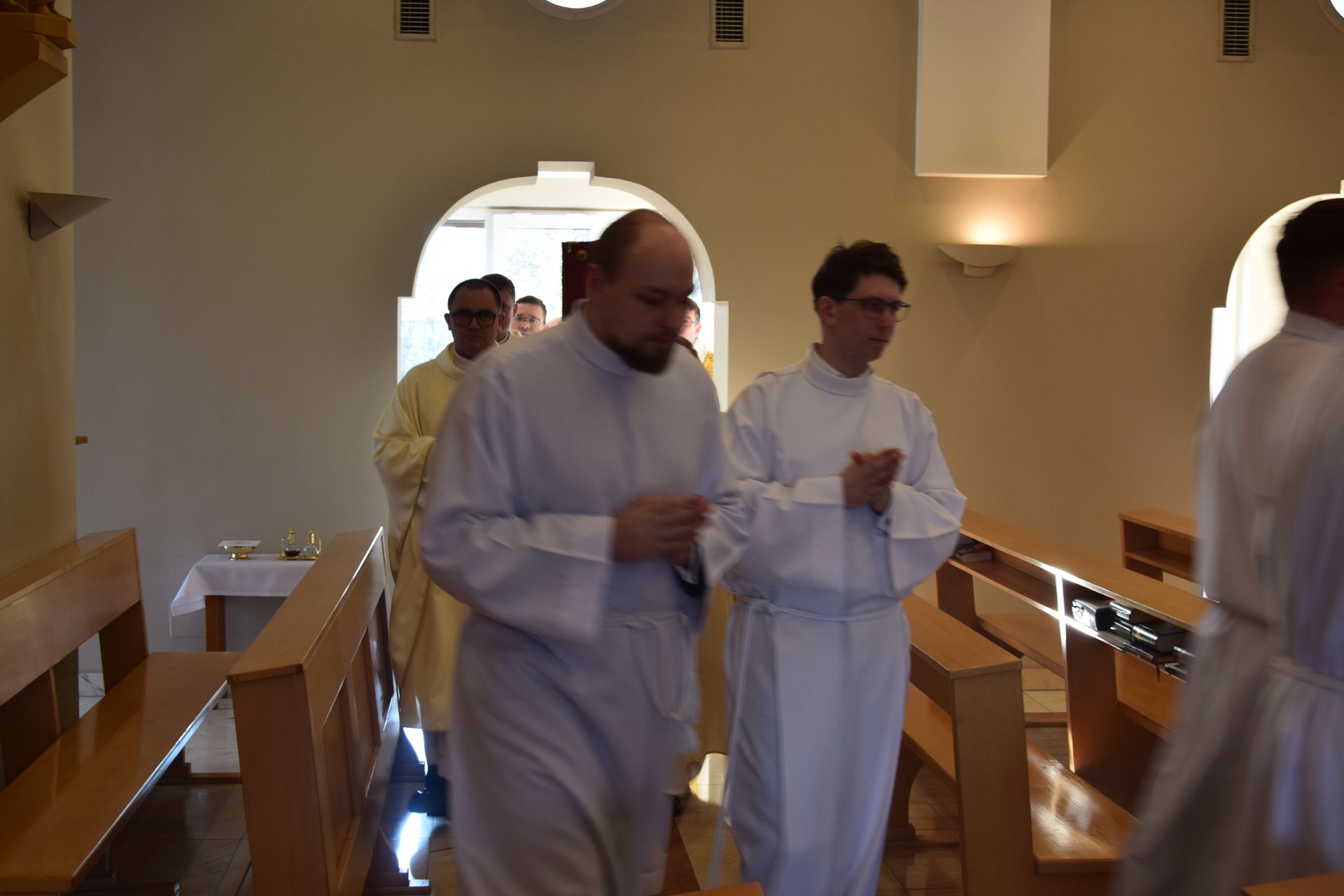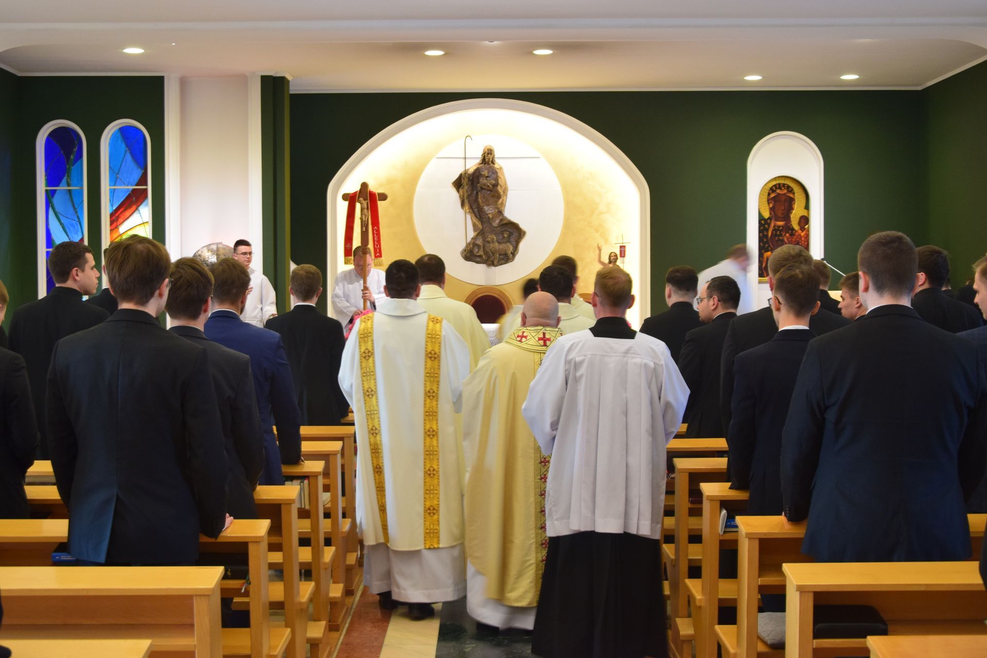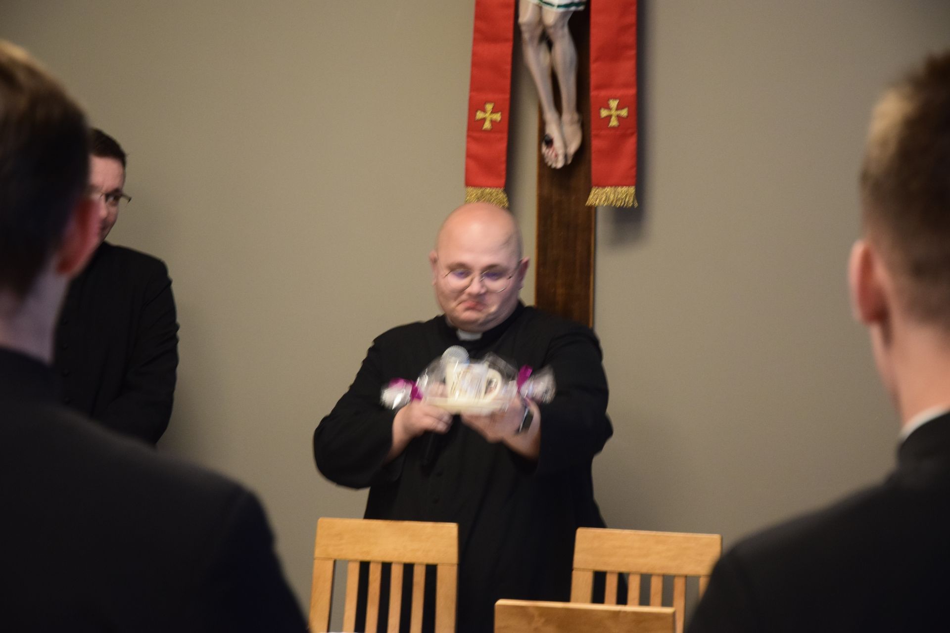 Na początku zebraliśmy się w naszej seminaryjnej kaplicy, aby przeżyć wspólną Eucharystię. Celebrował ją nasz gość - ks. Przemysław wraz z naszymi moderatorami. Podczas homilii przedstawił nam swoją historię życia i podzielił się swoim świadectwem powołania. Wspomniał także o tym, że Pan Bóg ma plan dla każdego z nas i przyjmuje nas takimi, jacy jesteśmy. To ma być właśnie jedną z podstaw naszego powołania. Zaznaczył również, że jego pragnieniem jako kapłana jest przede wszystkim głoszenie miłości Boga do każdego z nas.