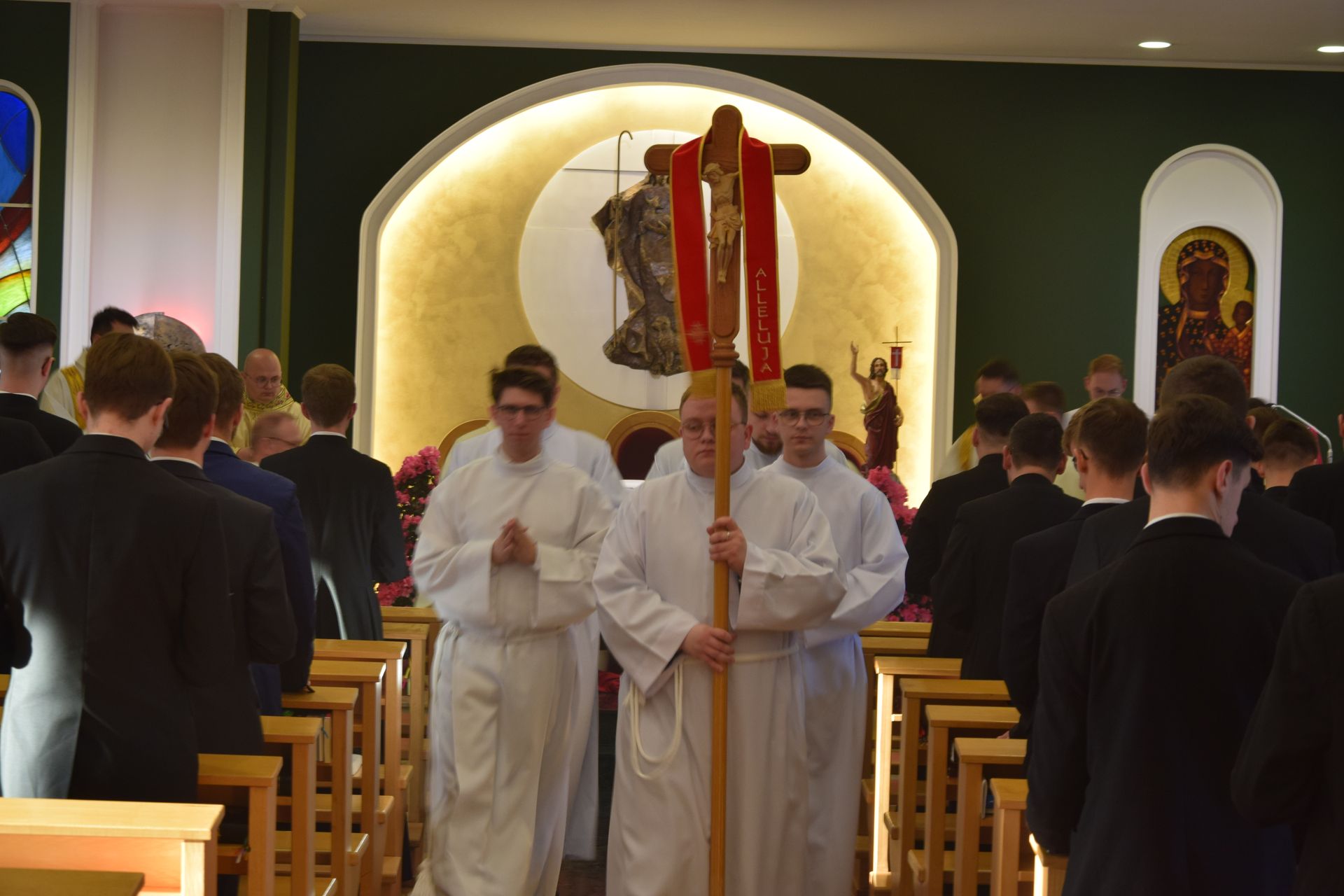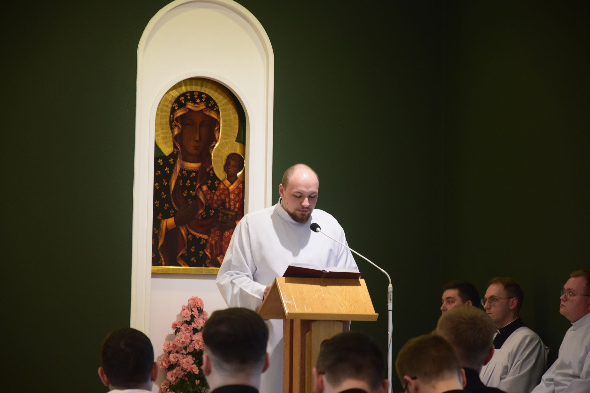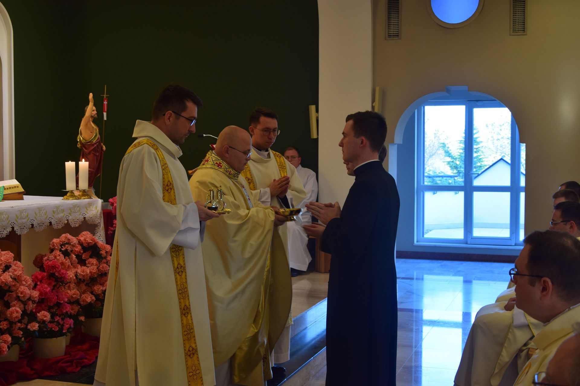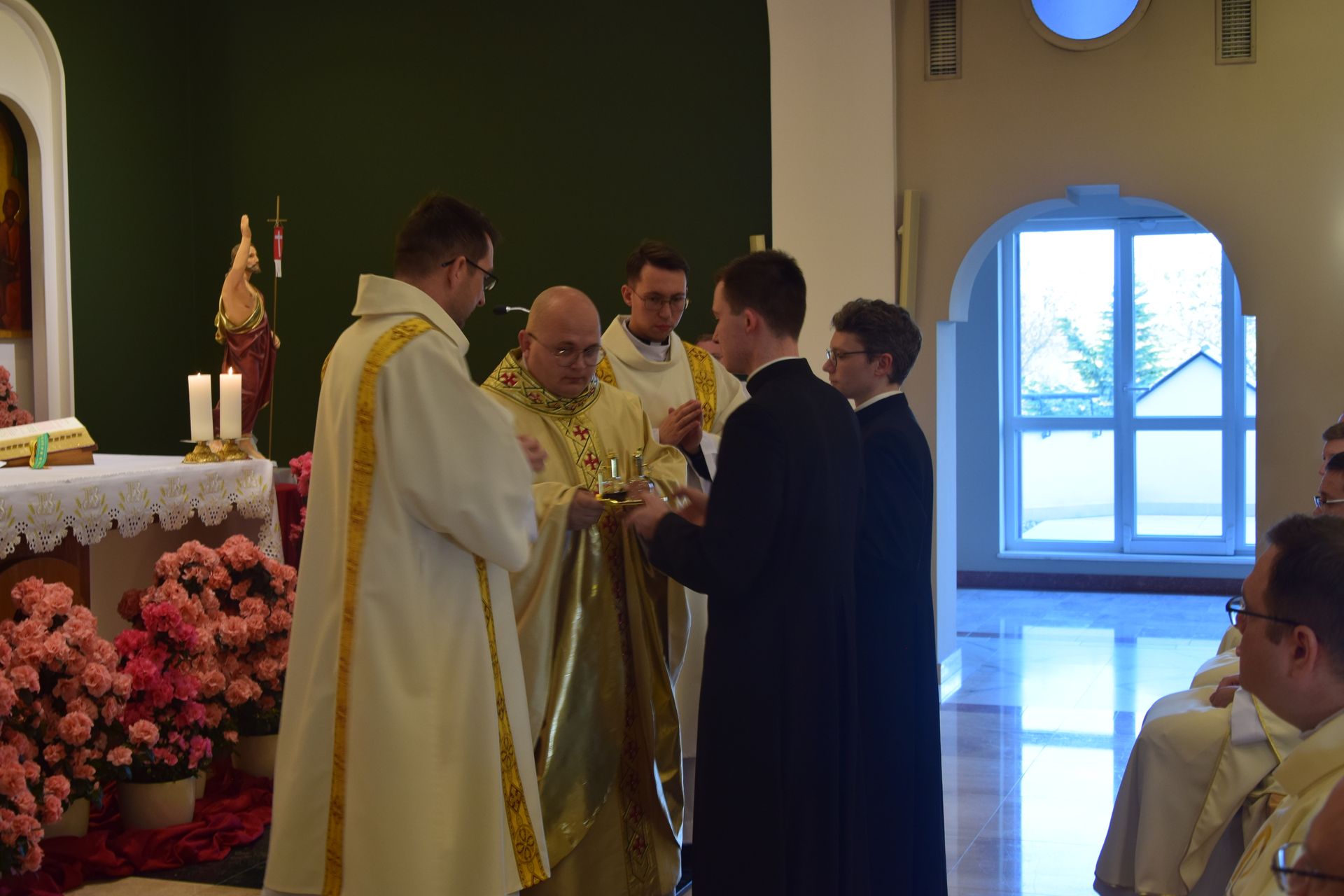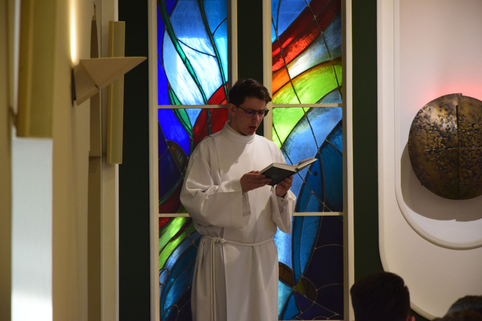Na początku zebraliśmy się w naszej seminaryjnej kaplicy, aby przeżyć wspólną Eucharystię. Celebrował ją nasz gość - ks. Przemysław wraz z naszymi moderatorami. Podczas homilii przedstawił nam swoją historię życia i podzielił się swoim świadectwem powołania. Wspomniał także o tym, że Pan Bóg ma plan dla każdego z nas i przyjmuje nas takimi, jacy jesteśmy. To ma być właśnie jedną z podstaw naszego powołania. Zaznaczył również, że jego pragnieniem jako kapłana jest przede wszystkim głoszenie miłości Boga do każdego z nas.