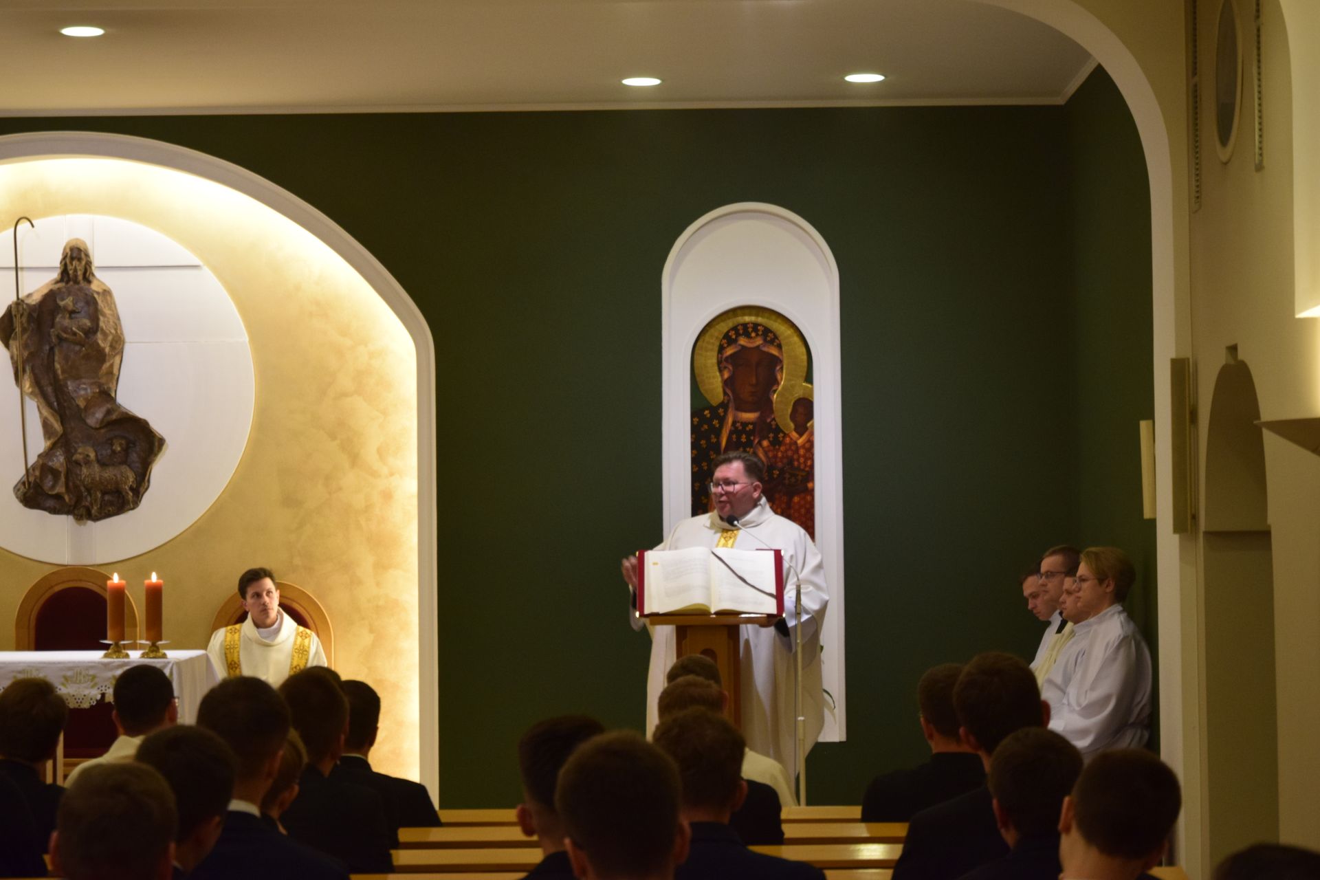 Podczas Eucharystii Ksiądz Przemysław podzielił się z nami swoim słowem, w którym odnosząc się do refrenu dzisiejszego psalmu - Błogosławieni wezwanie na ucztę (Ap 19, 9a) pokazał nam jak wielką łaską jest możliwość trwania w formacji seminaryjnej.