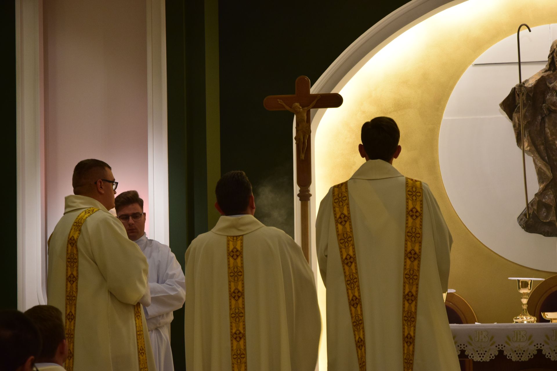 Mszę Świętą wraz z ks. Sławomirem celebrowali księża moderatorzy, a w tym ks. Waldemar Graczyk, który wypowiedział słowa powitania dla naszego Gościa.