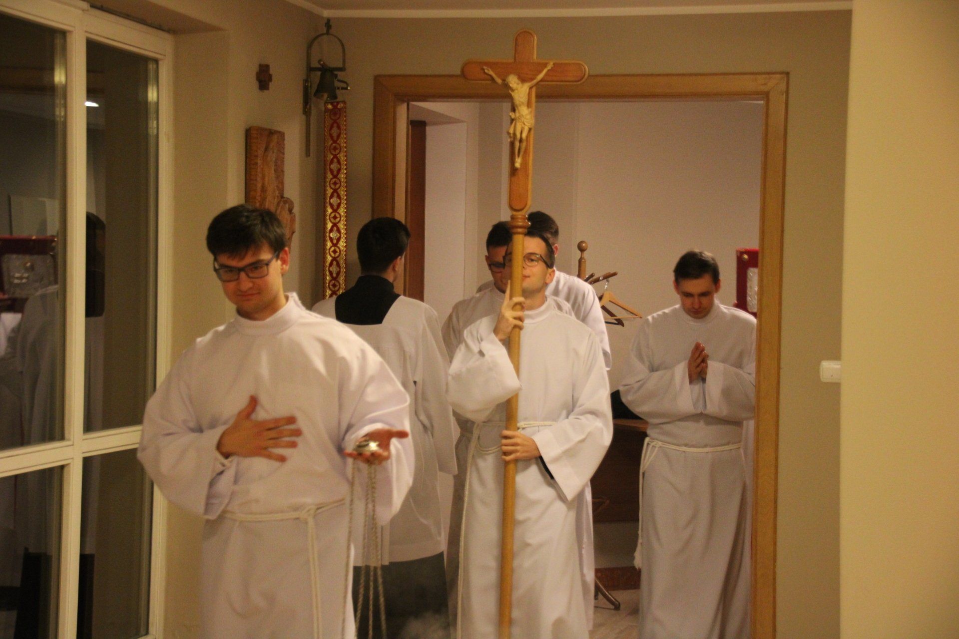 Tegoroczne rekolekcje adwentowe przeżywaliśmy w dniach 09-14 listopada i poprowadził je dla nas o. Janusz Chwast OP. Podczas rekolekcji towarzyszył nam cytat św. Katarzyny ze Sieny: "Dusza zamieszkuje celę poznania siebie, w której jest druga cela poznania dobroci Boga". W trakcie konferencji, o. Janusz przedstawił nam wiele myśli świętych, m.in. św. Katarzyny ze Sieny, św. s. Faustyny Kowalskiej, czy też św. Bernarda z Clairvaux. Rekolekcjonista przekazał nam także wiele myśli na temat pychy, modlitwy, pokory, życia w prawdzie i poznaniu samego siebie, czym modlitwa powinna być. Przekazał nam w naukach również swoje doświadczenie z bycia Magistrem nowicjuszy w klasztorze oo. Dominikanów w Warszawie na Służewie przez wiele lat. W swoich rozważaniach ojciec dominikanin chciał nam przekazać bardzo ważną kwestię dotyczącą relacji z Bogiem: "Poznanie siebie jest wprost proporcjonalne do poznania Boga. Im lepiej będziemy znali siebie, tym lepiej będziemy znali Boga". - powiedział rekolekcjonista Dziękujemy o. Januszowi za przekazanie nam wielu tak ważnych i wartościowych myśli, konkretnie odnoszących się do naszego życia, podzieleniem się z nami swoim doświadczeniem z przepowiadania i życia kapłańskiego oraz poprowadzenie nas przez ten czas wraz z myślami wielu świętych. Pamiętajmy o modlitwie w intencji o. Janusza, aby w dalszym ciągu poddawał się natchnieniom Ducha Świętego i wypełniał swoje powołanie do głoszenia Ewangelii według zamysłu Bożego. Zdjęcia za: Arcybiskupie Seminarium Duchowne