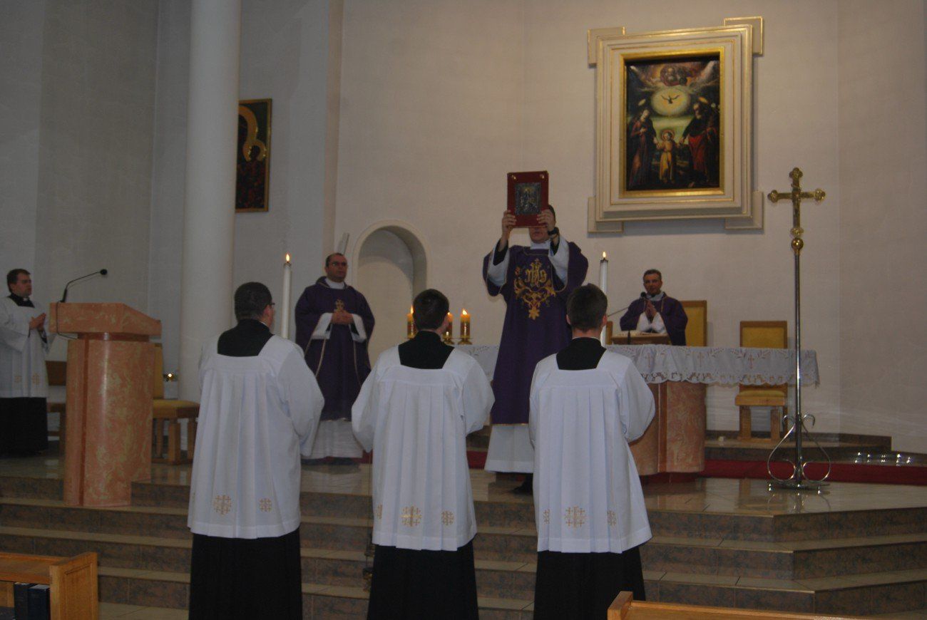 Zaproszony kapłan przewodniczył uroczystej Eucharystii, która rozpoczęła się o godzinie 17:00 w seminaryjnej kaplicy. Swoją homilię nasz Gość oparł o Słowo Boże wyznaczone przez Kościół na dany dzień. Na samym początku zwrócił uwagę, że Pan Bóg w tym słowie szczególnie zachęca nas do słuchania. Trzeba nam jednak być szczególnie uważnym, gdyż zły duch nieustannie powraca, aby nam zagłuszyć słowo kierowane do nas przez Boga. Przez działanie złego ducha niekiedy występuje w nas rozdwojenie: z jednej strony chcemy czynić dobrze i żyć tak, jak Bóg tego pragnie, z drugiej strony czynimy jednak zupełnie coś innego. Dlatego ważna jest spójność pomiędzy tym, co wyznajemy a tym, co czynimy. Owszem, będą zdarzały się nam upadki, ale wtedy nie możemy się załamywać, lecz musimy szybko z nich powstawać. Na samym końcu ksiądz prałat zachęcał alumnów, aby słuchać poleceń Boga i przełożonych, bo jeśli będziemy chcieli robić wszystko po swojemu i nie będziemy im posłuszni, to prędzej czy później pojawią się w nas wyrzuty sumienia, że źle wybraliśmy.