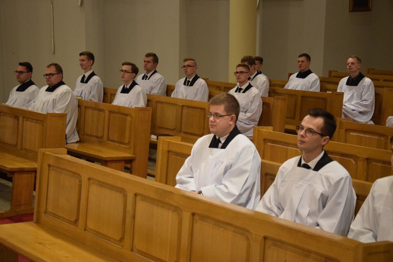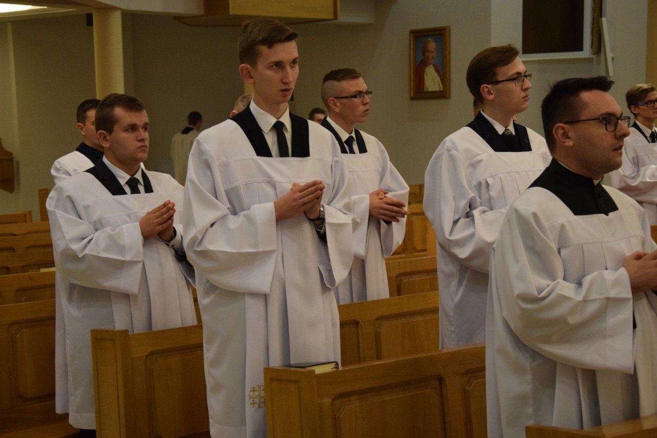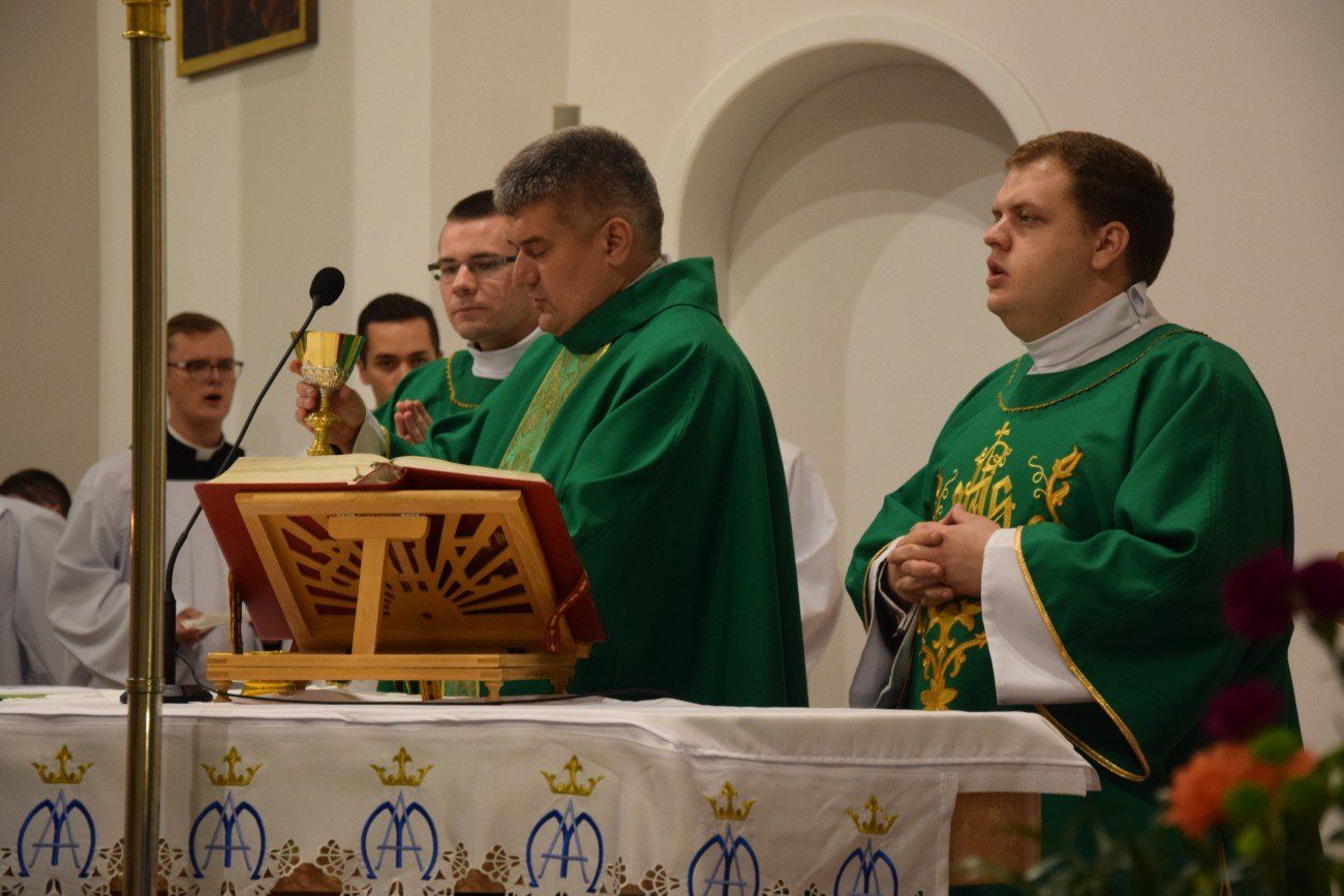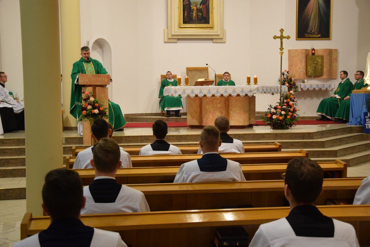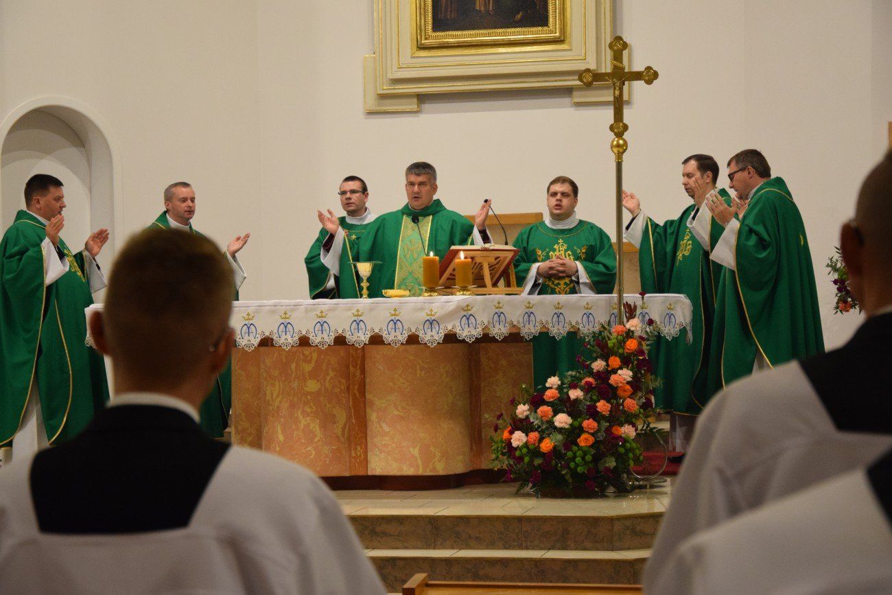 Nasz Gość przewodniczył uroczystej Mszy Świętej koncelebrowanej z księżmi moderatorami. W słowie skierowanym do nas ksiądz Prałat podzielił się swoim bogatym doświadczeniem Bożej obecności w życiu oraz przeżyciami związanymi z posługą kapłańską. Polecił alumnom pytać Boga oto, czego On od nas oczekuje i kształtować się według tych wartości. Zwrócił uwagę, że posłuszeństwo Bogu należy budować poprzez małe sprawy, dzięki czemu dorośniemy do bezapelacyjnego słuchania Jego głosu w sprawach wielkich. Wasze zaufanie i wierność służbie Bogu sprawią, że On nigdy was nie opuści – dodał. Na zakończenie homilii ksiądz Robert zaprosił nas do tego, abyśmy pamiętali, że dobry kapłan musi być w pierwszej kolejności dobrym człowiekiem.