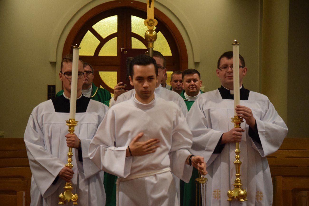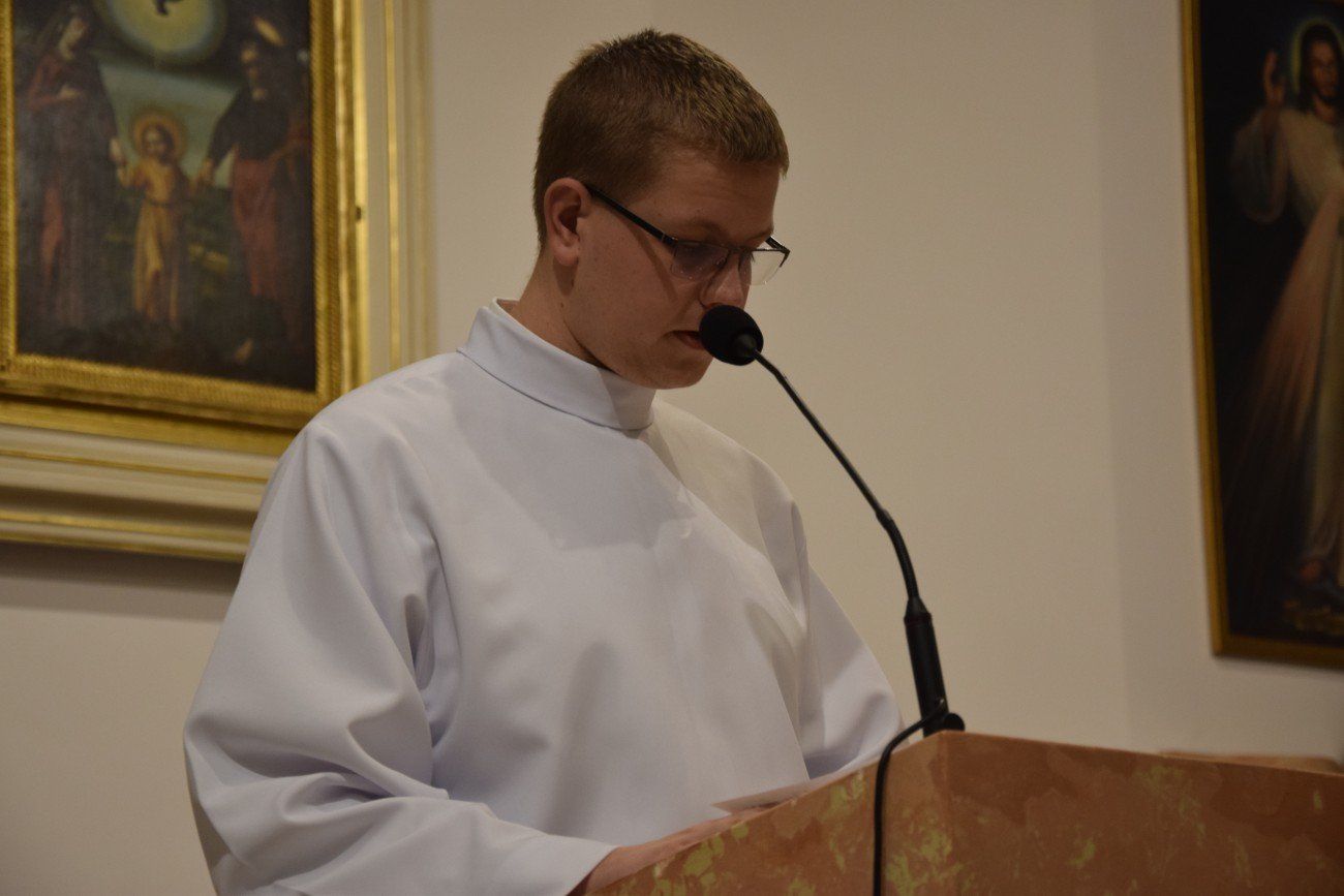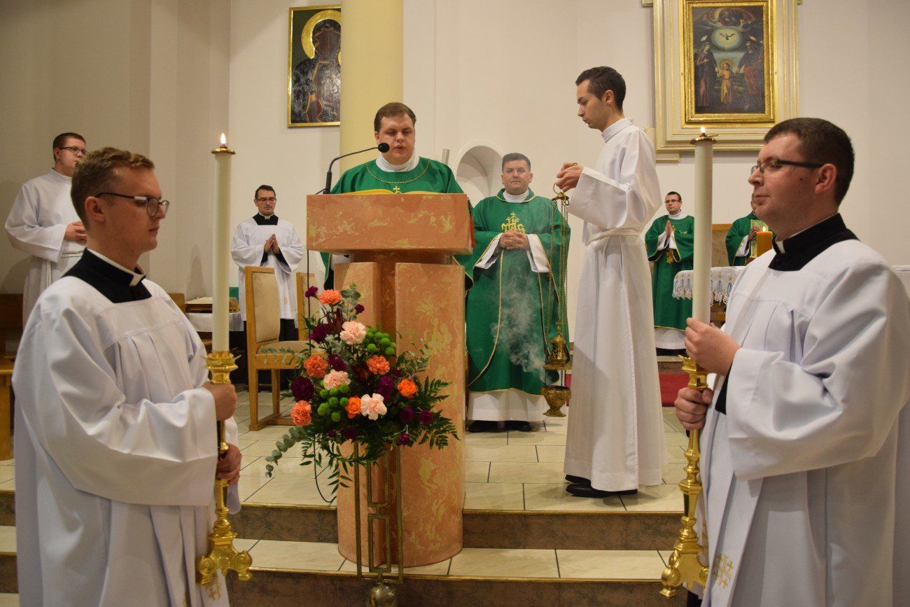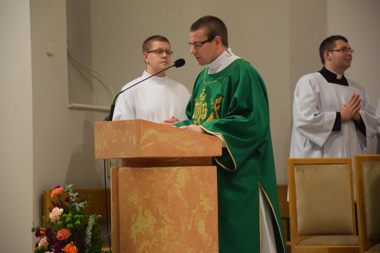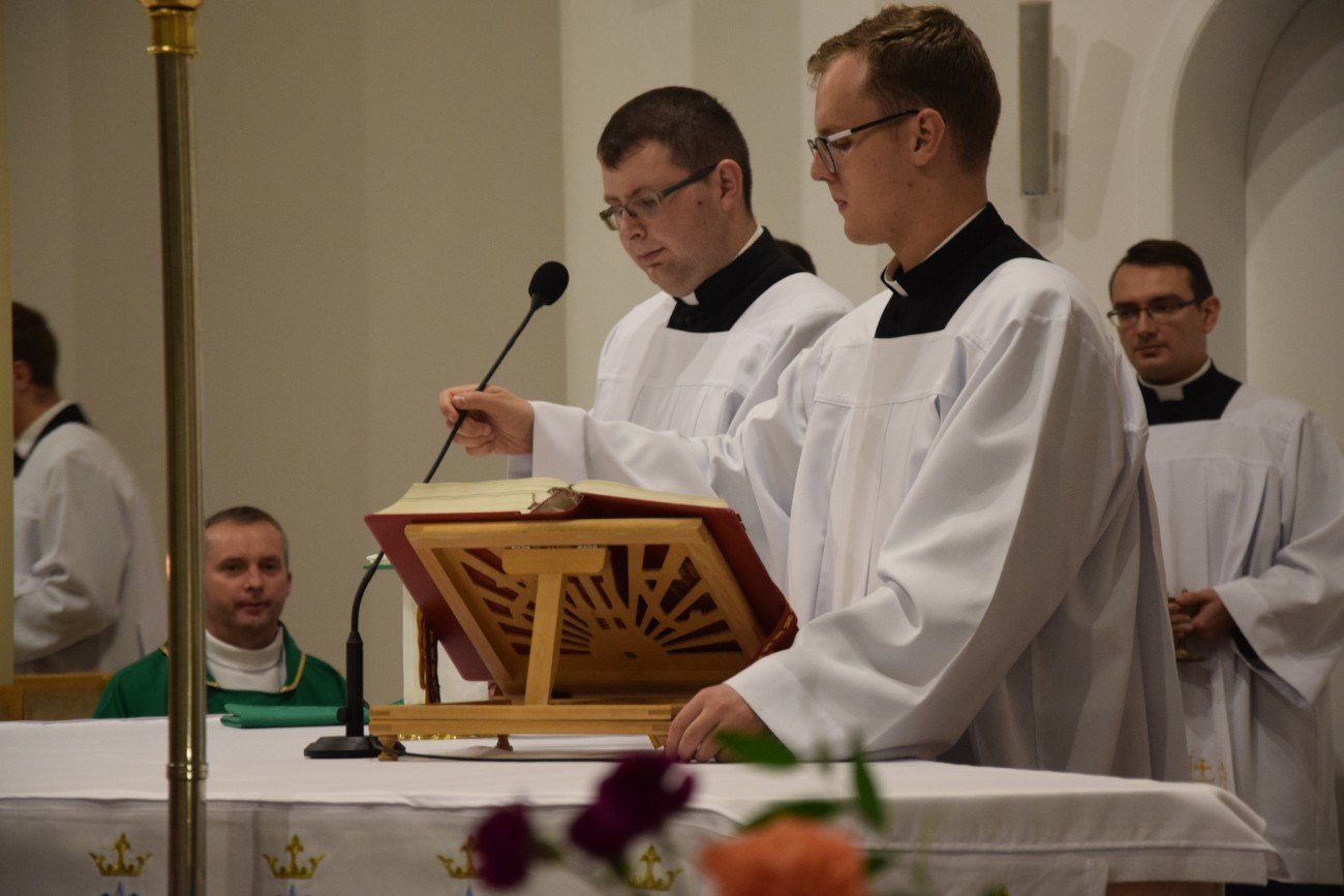 Nasz Gość przewodniczył uroczystej Mszy Świętej koncelebrowanej z księżmi moderatorami. W słowie skierowanym do nas ksiądz Prałat podzielił się swoim bogatym doświadczeniem Bożej obecności w życiu oraz przeżyciami związanymi z posługą kapłańską. Polecił alumnom pytać Boga oto, czego On od nas oczekuje i kształtować się według tych wartości. Zwrócił uwagę, że posłuszeństwo Bogu należy budować poprzez małe sprawy, dzięki czemu dorośniemy do bezapelacyjnego słuchania Jego głosu w sprawach wielkich. Wasze zaufanie i wierność służbie Bogu sprawią, że On nigdy was nie opuści – dodał. Na zakończenie homilii ksiądz Robert zaprosił nas do tego, abyśmy pamiętali, że dobry kapłan musi być w pierwszej kolejności dobrym człowiekiem.