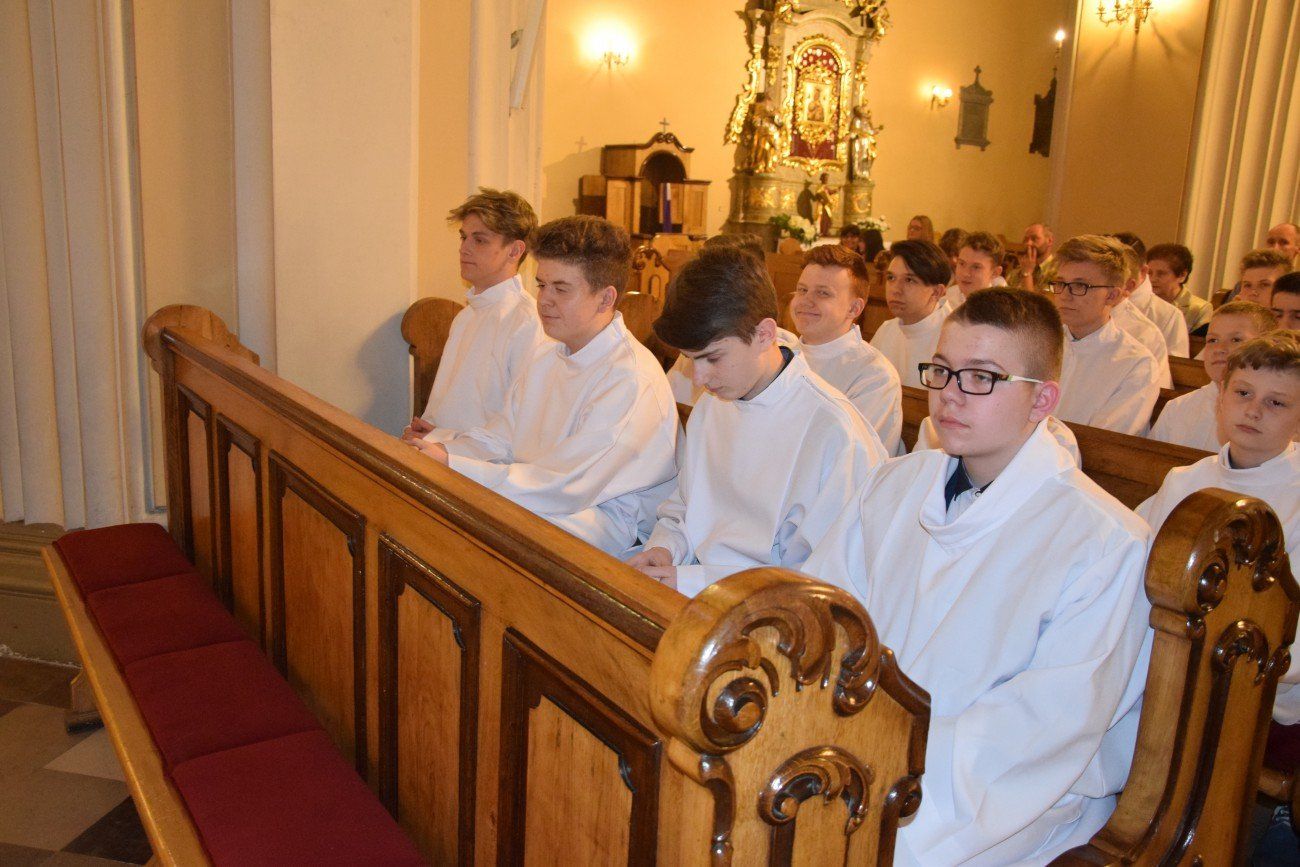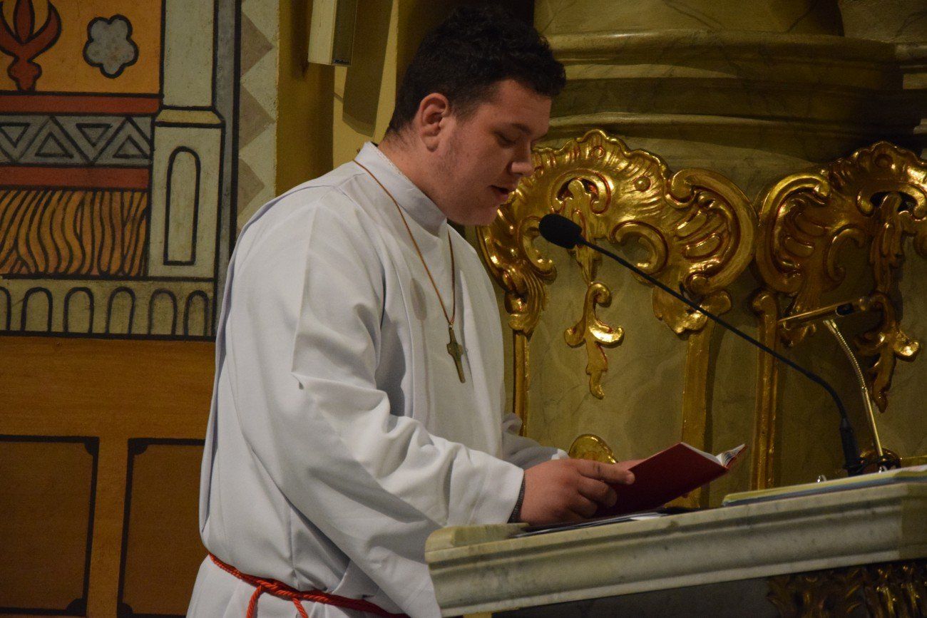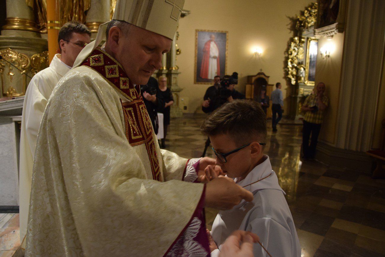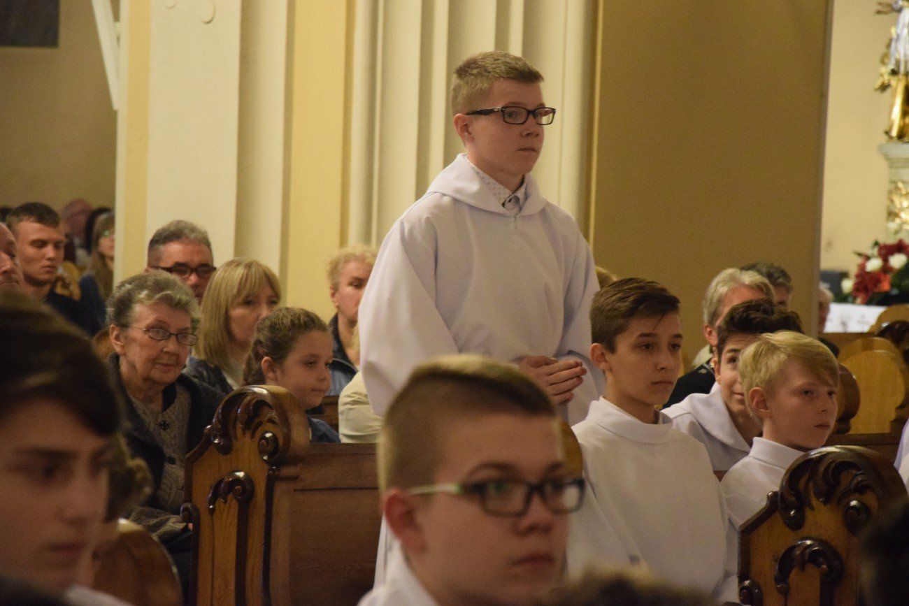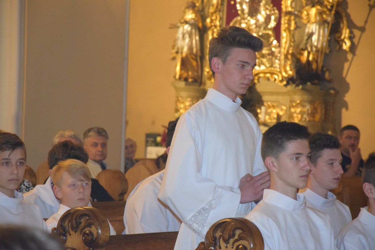 Kulminacją a zarazem podsumowaniem całego kursu lektorskiego była uroczysta Eucharystia w Katedrze Kaliskiej, którą sprawowali księża proboszczowie i wikariusze ministrantów oraz kapłani prowadzący kurs pod przewodnictwem księdza Biskupa Łukasza Buzuna – biskupa pomocniczego naszej diecezji w niedzielne popołudnie, 22 kwietnia. W Eucharystii uczestniczyli rodzice oraz najbliższe rodziny ministrantów, którzy zostali ustanowieni lektorami. Po homilii nastąpiło imienne przedstawienie księdzu Biskupowi kandydatów do przyjęcia posługi lektora oraz parafii, z których pochodzą. Po homilii ksiądz Biskup odmówił modlitwę ustanawiającą lektorów. Następnie ksiądz Biskup wręczył każdemu z ministrantów księgę Pisma Świętego, wypowiadając słowa Przyjmij księgę Pisma Świętego i wiernie przekazuj Słowo Boże, aby coraz mocniej działało w sercach ludzkich. Ksiądz Biskup Łukasz Buzun dokonał także poświęcenia alb i krzyży lektorskich, którymi od tego dnia będą posługiwać się nowo ustanowieni lektorzy. Na zakończenie Eucharystii nowi lektorzy złożyli podziękowania Panu Bogu, księdzu Biskupowi Łukaszowi, kapłanom prowadzącym kurs, proboszczowi Katedry oraz swoim rodzicom, którzy przybyli do Katedry, aby towarzyszyć swoim synom w tym ważnym dla nich dniu.