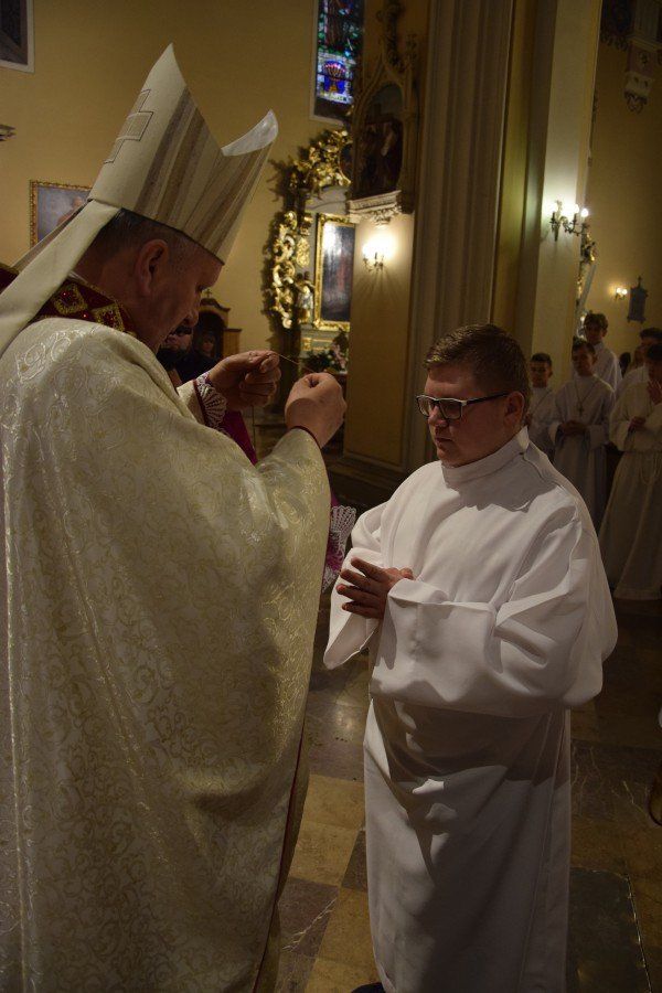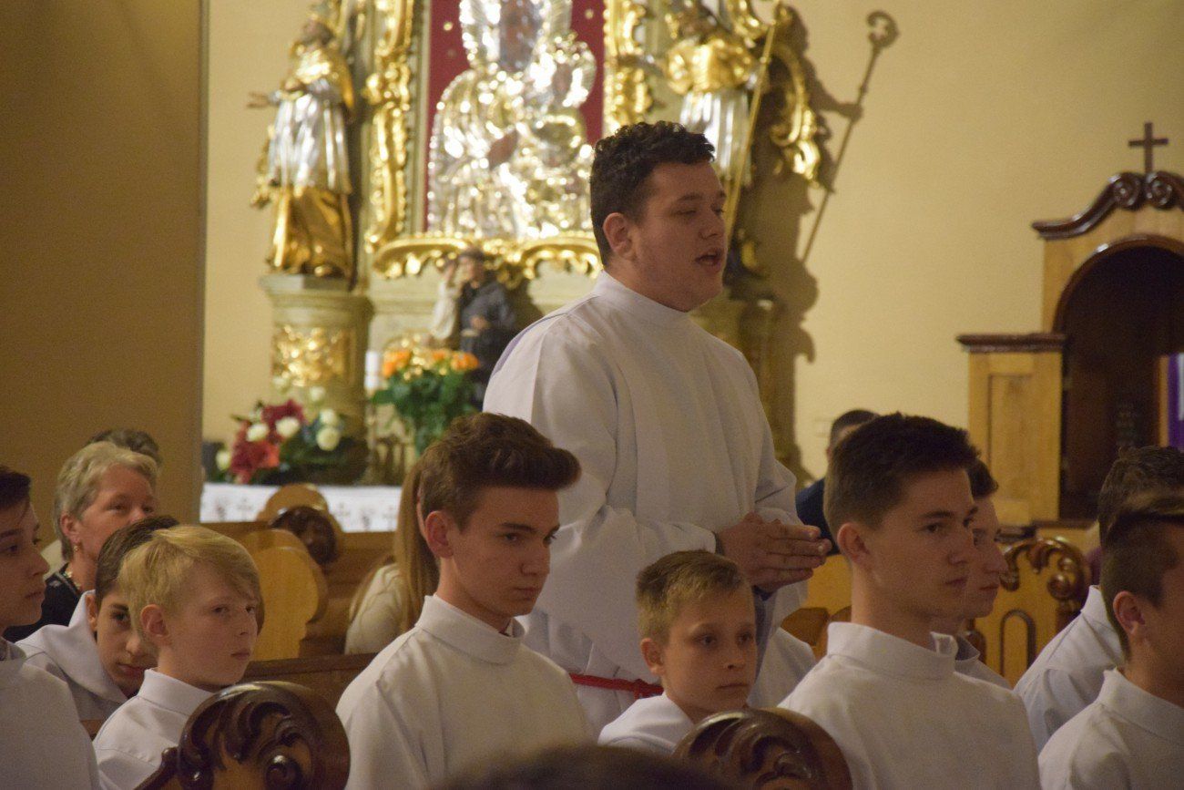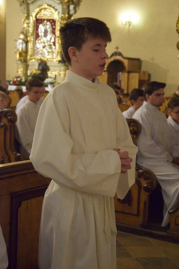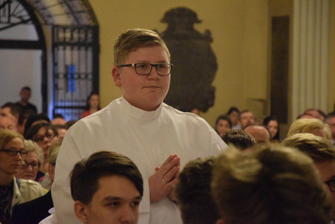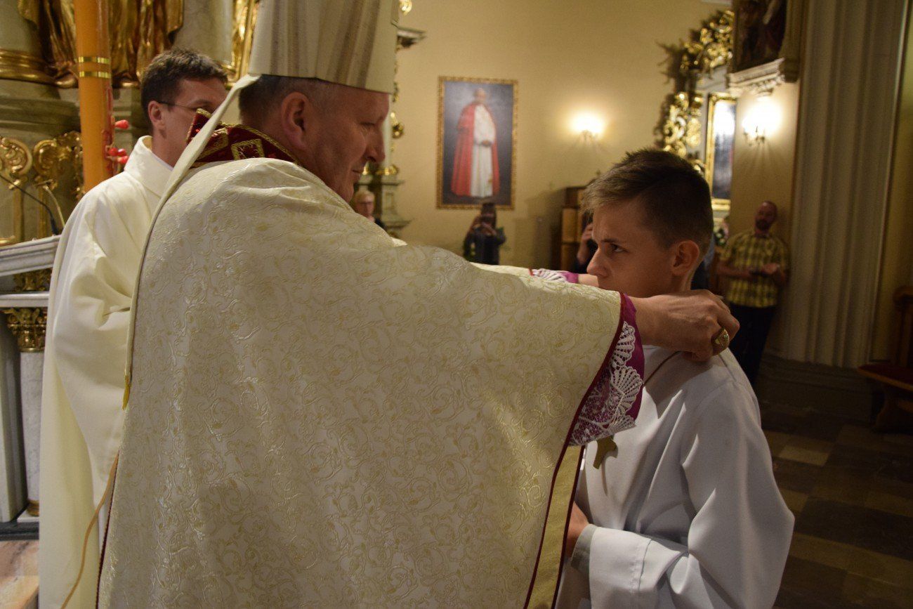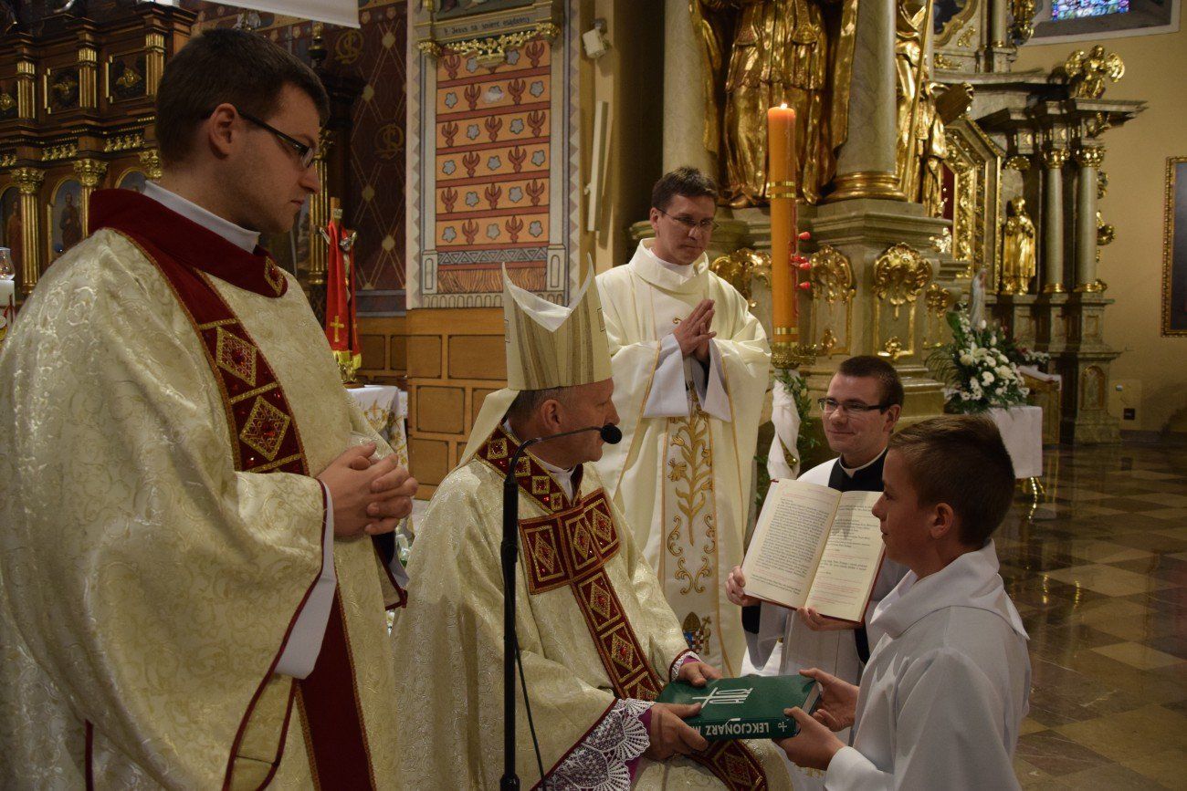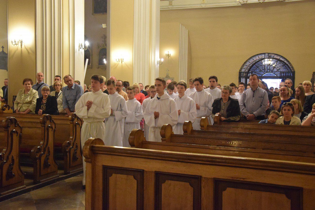 Kulminacją a zarazem podsumowaniem całego kursu lektorskiego była uroczysta Eucharystia w Katedrze Kaliskiej, którą sprawowali księża proboszczowie i wikariusze ministrantów oraz kapłani prowadzący kurs pod przewodnictwem księdza Biskupa Łukasza Buzuna – biskupa pomocniczego naszej diecezji w niedzielne popołudnie, 22 kwietnia. W Eucharystii uczestniczyli rodzice oraz najbliższe rodziny ministrantów, którzy zostali ustanowieni lektorami. Po homilii nastąpiło imienne przedstawienie księdzu Biskupowi kandydatów do przyjęcia posługi lektora oraz parafii, z których pochodzą. Po homilii ksiądz Biskup odmówił modlitwę ustanawiającą lektorów. Następnie ksiądz Biskup wręczył każdemu z ministrantów księgę Pisma Świętego, wypowiadając słowa Przyjmij księgę Pisma Świętego i wiernie przekazuj Słowo Boże, aby coraz mocniej działało w sercach ludzkich. Ksiądz Biskup Łukasz Buzun dokonał także poświęcenia alb i krzyży lektorskich, którymi od tego dnia będą posługiwać się nowo ustanowieni lektorzy. Na zakończenie Eucharystii nowi lektorzy złożyli podziękowania Panu Bogu, księdzu Biskupowi Łukaszowi, kapłanom prowadzącym kurs, proboszczowi Katedry oraz swoim rodzicom, którzy przybyli do Katedry, aby towarzyszyć swoim synom w tym ważnym dla nich dniu.