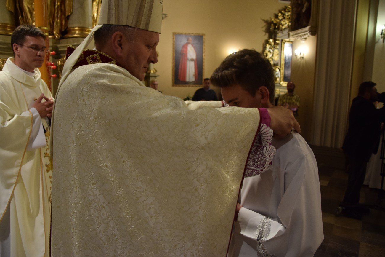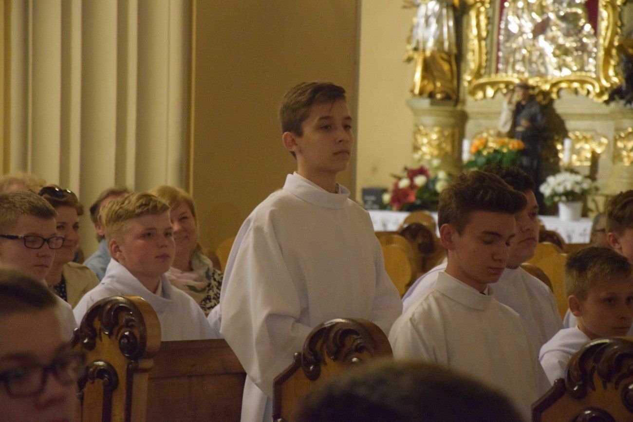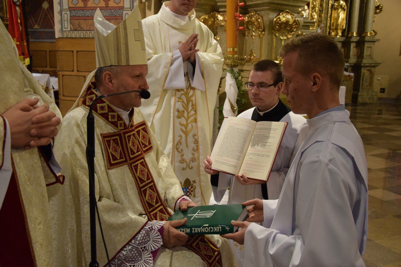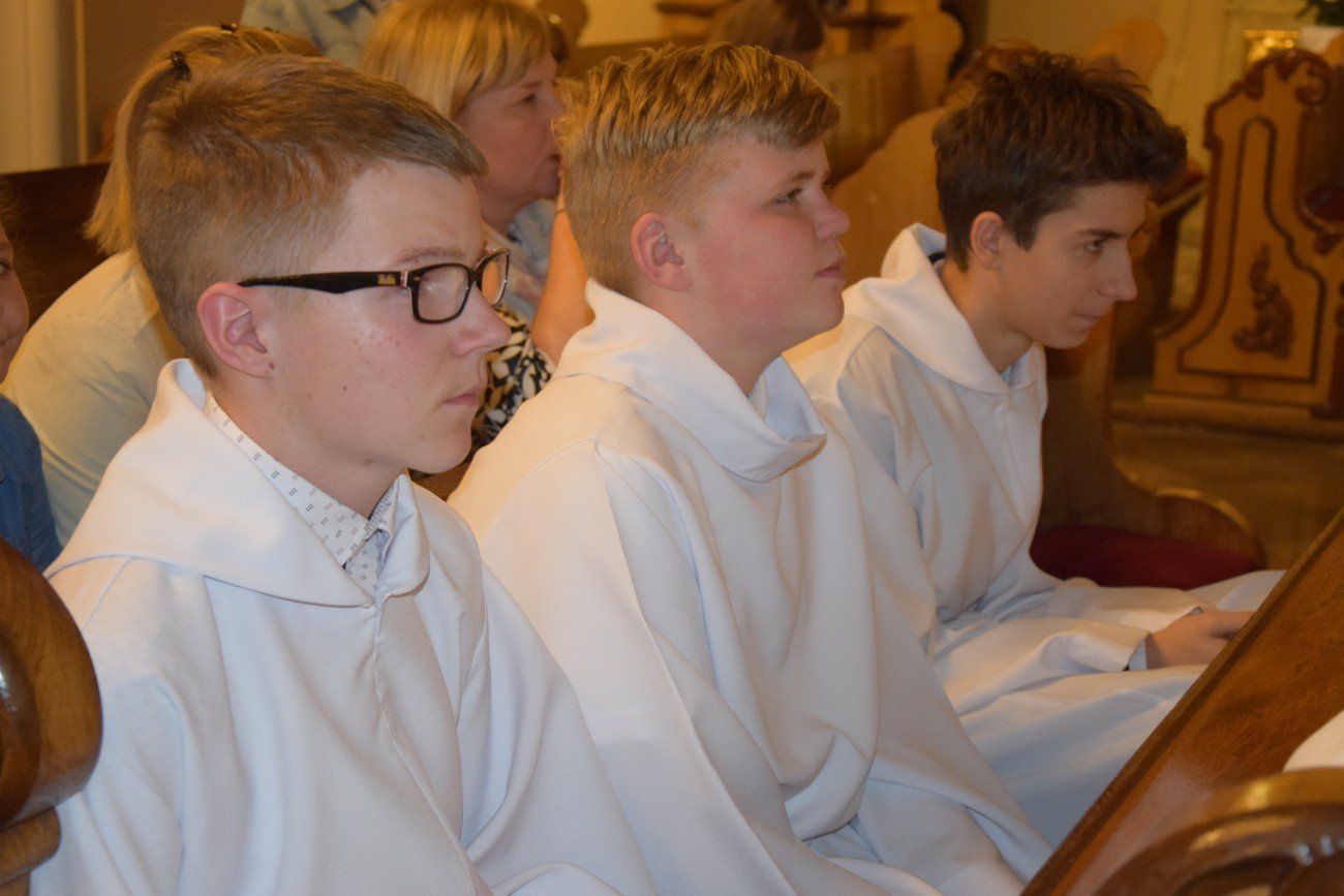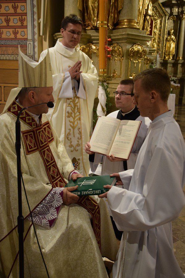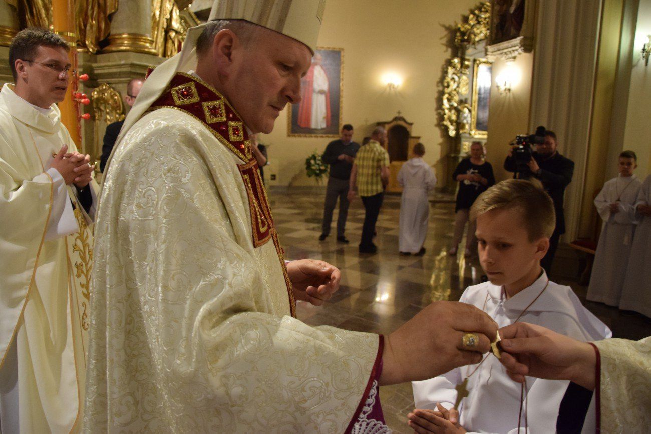 Kulminacją a zarazem podsumowaniem całego kursu lektorskiego była uroczysta Eucharystia w Katedrze Kaliskiej, którą sprawowali księża proboszczowie i wikariusze ministrantów oraz kapłani prowadzący kurs pod przewodnictwem księdza Biskupa Łukasza Buzuna – biskupa pomocniczego naszej diecezji w niedzielne popołudnie, 22 kwietnia. W Eucharystii uczestniczyli rodzice oraz najbliższe rodziny ministrantów, którzy zostali ustanowieni lektorami. Po homilii nastąpiło imienne przedstawienie księdzu Biskupowi kandydatów do przyjęcia posługi lektora oraz parafii, z których pochodzą. Po homilii ksiądz Biskup odmówił modlitwę ustanawiającą lektorów. Następnie ksiądz Biskup wręczył każdemu z ministrantów księgę Pisma Świętego, wypowiadając słowa Przyjmij księgę Pisma Świętego i wiernie przekazuj Słowo Boże, aby coraz mocniej działało w sercach ludzkich. Ksiądz Biskup Łukasz Buzun dokonał także poświęcenia alb i krzyży lektorskich, którymi od tego dnia będą posługiwać się nowo ustanowieni lektorzy. Na zakończenie Eucharystii nowi lektorzy złożyli podziękowania Panu Bogu, księdzu Biskupowi Łukaszowi, kapłanom prowadzącym kurs, proboszczowi Katedry oraz swoim rodzicom, którzy przybyli do Katedry, aby towarzyszyć swoim synom w tym ważnym dla nich dniu.