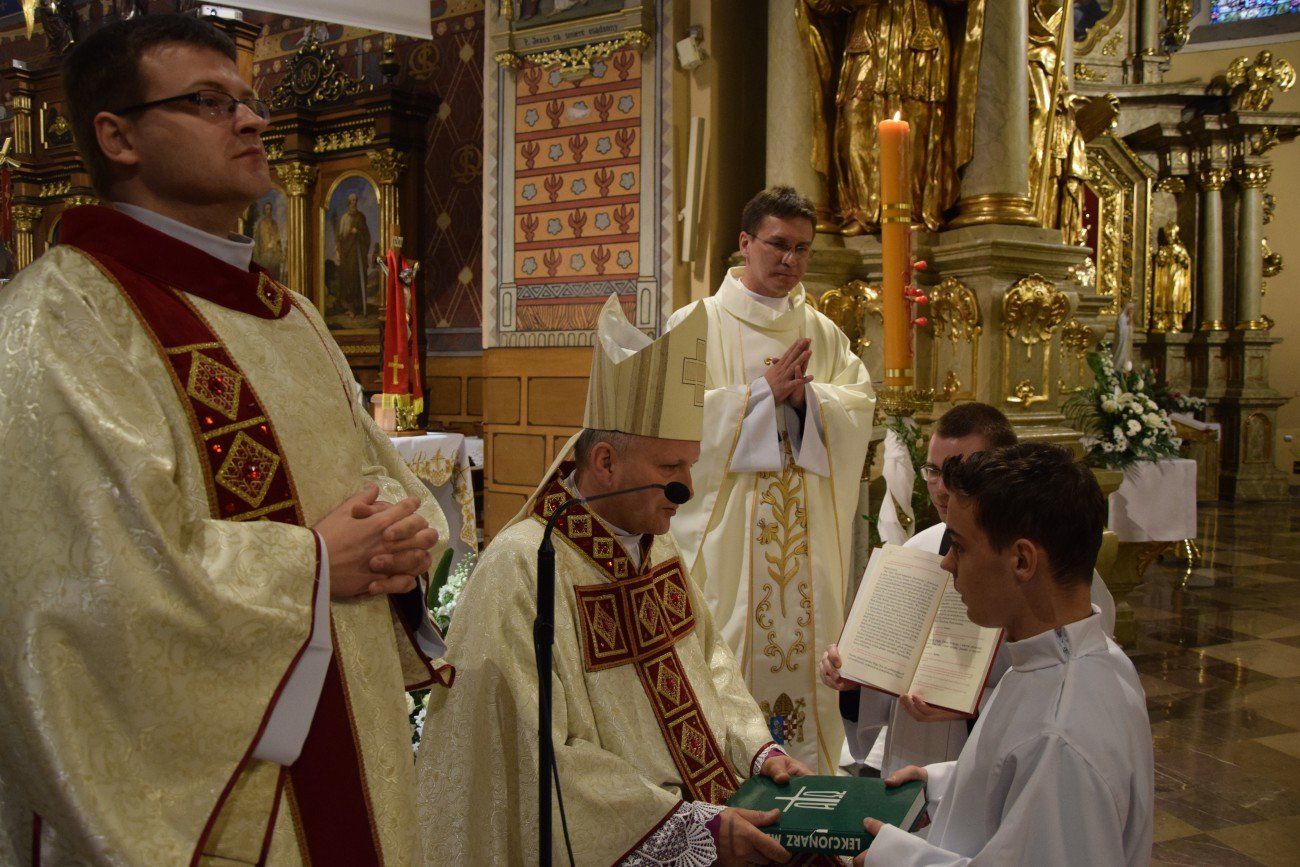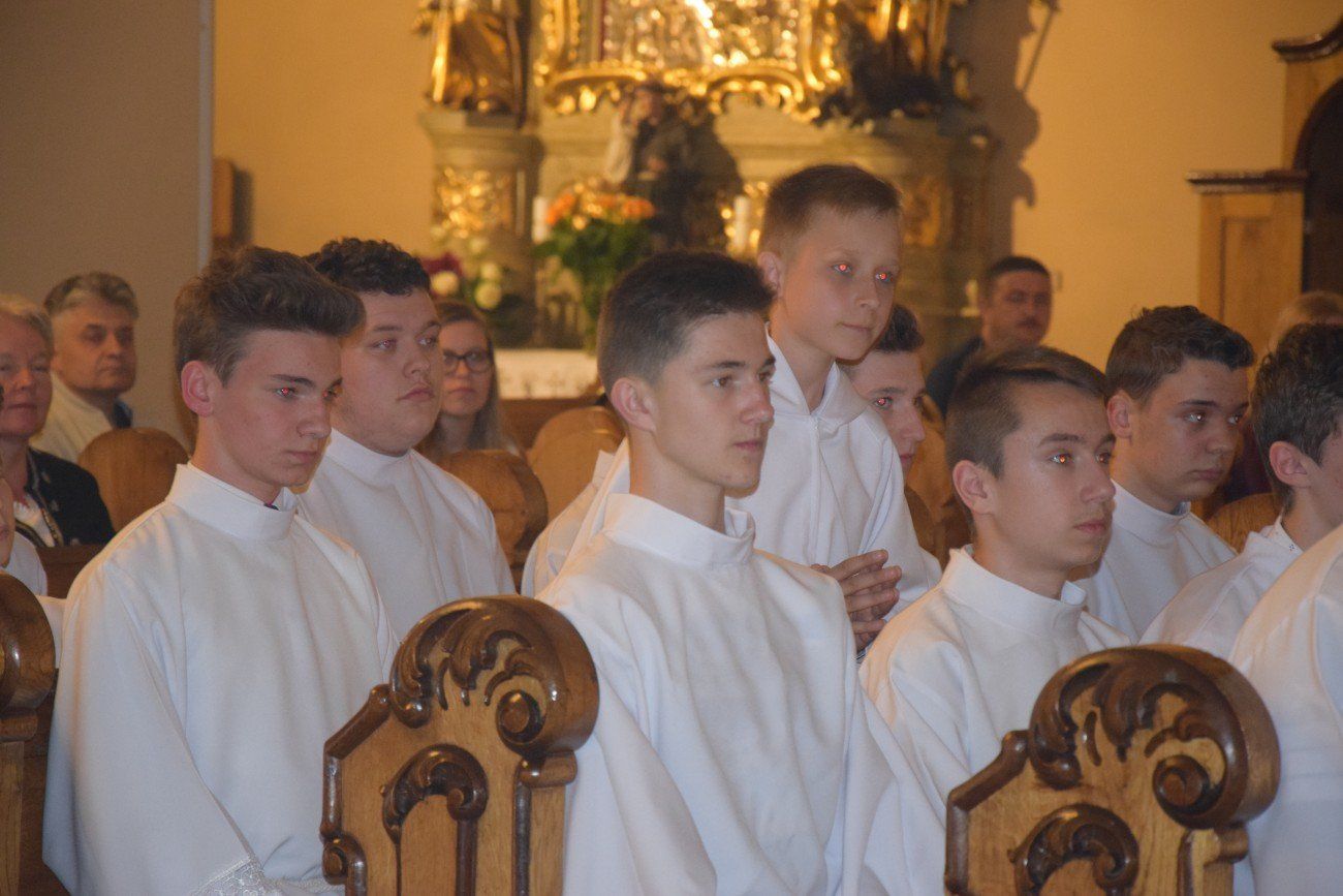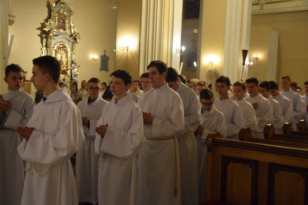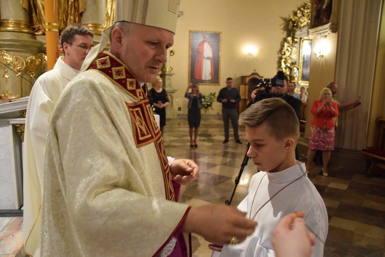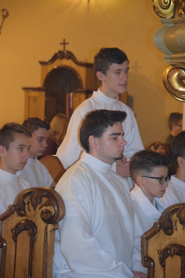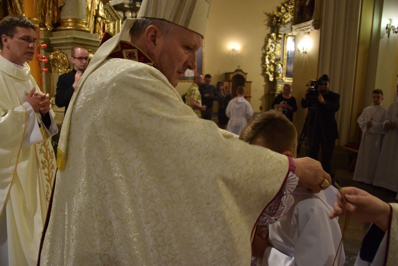 Kulminacją a zarazem podsumowaniem całego kursu lektorskiego była uroczysta Eucharystia w Katedrze Kaliskiej, którą sprawowali księża proboszczowie i wikariusze ministrantów oraz kapłani prowadzący kurs pod przewodnictwem księdza Biskupa Łukasza Buzuna – biskupa pomocniczego naszej diecezji w niedzielne popołudnie, 22 kwietnia. W Eucharystii uczestniczyli rodzice oraz najbliższe rodziny ministrantów, którzy zostali ustanowieni lektorami. Po homilii nastąpiło imienne przedstawienie księdzu Biskupowi kandydatów do przyjęcia posługi lektora oraz parafii, z których pochodzą. Po homilii ksiądz Biskup odmówił modlitwę ustanawiającą lektorów. Następnie ksiądz Biskup wręczył każdemu z ministrantów księgę Pisma Świętego, wypowiadając słowa Przyjmij księgę Pisma Świętego i wiernie przekazuj Słowo Boże, aby coraz mocniej działało w sercach ludzkich. Ksiądz Biskup Łukasz Buzun dokonał także poświęcenia alb i krzyży lektorskich, którymi od tego dnia będą posługiwać się nowo ustanowieni lektorzy. Na zakończenie Eucharystii nowi lektorzy złożyli podziękowania Panu Bogu, księdzu Biskupowi Łukaszowi, kapłanom prowadzącym kurs, proboszczowi Katedry oraz swoim rodzicom, którzy przybyli do Katedry, aby towarzyszyć swoim synom w tym ważnym dla nich dniu.