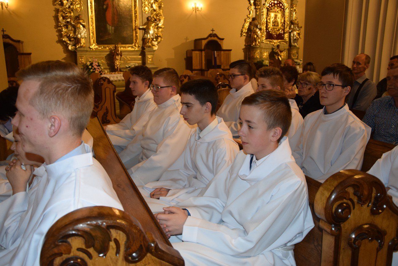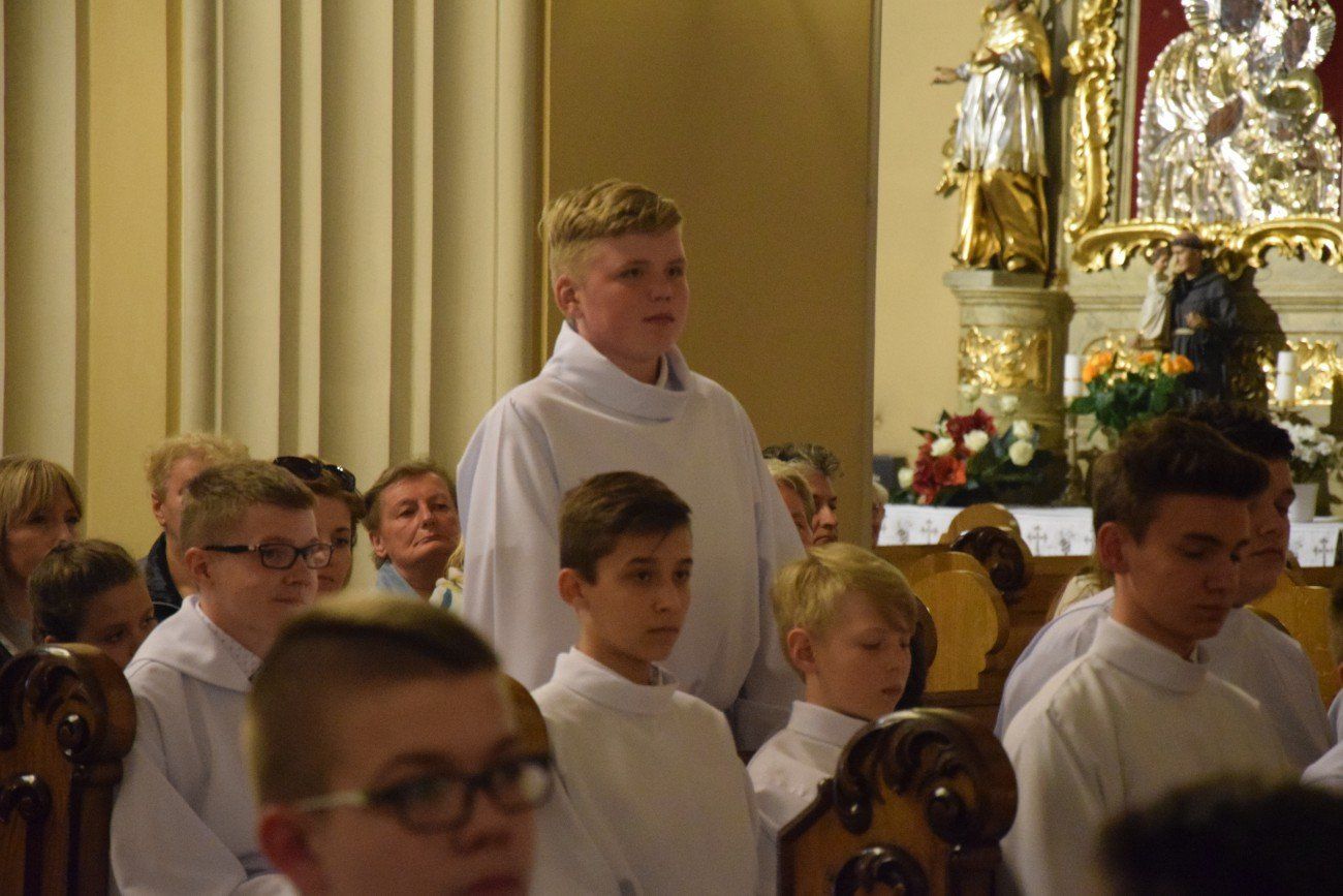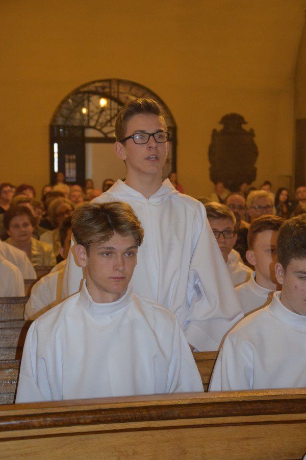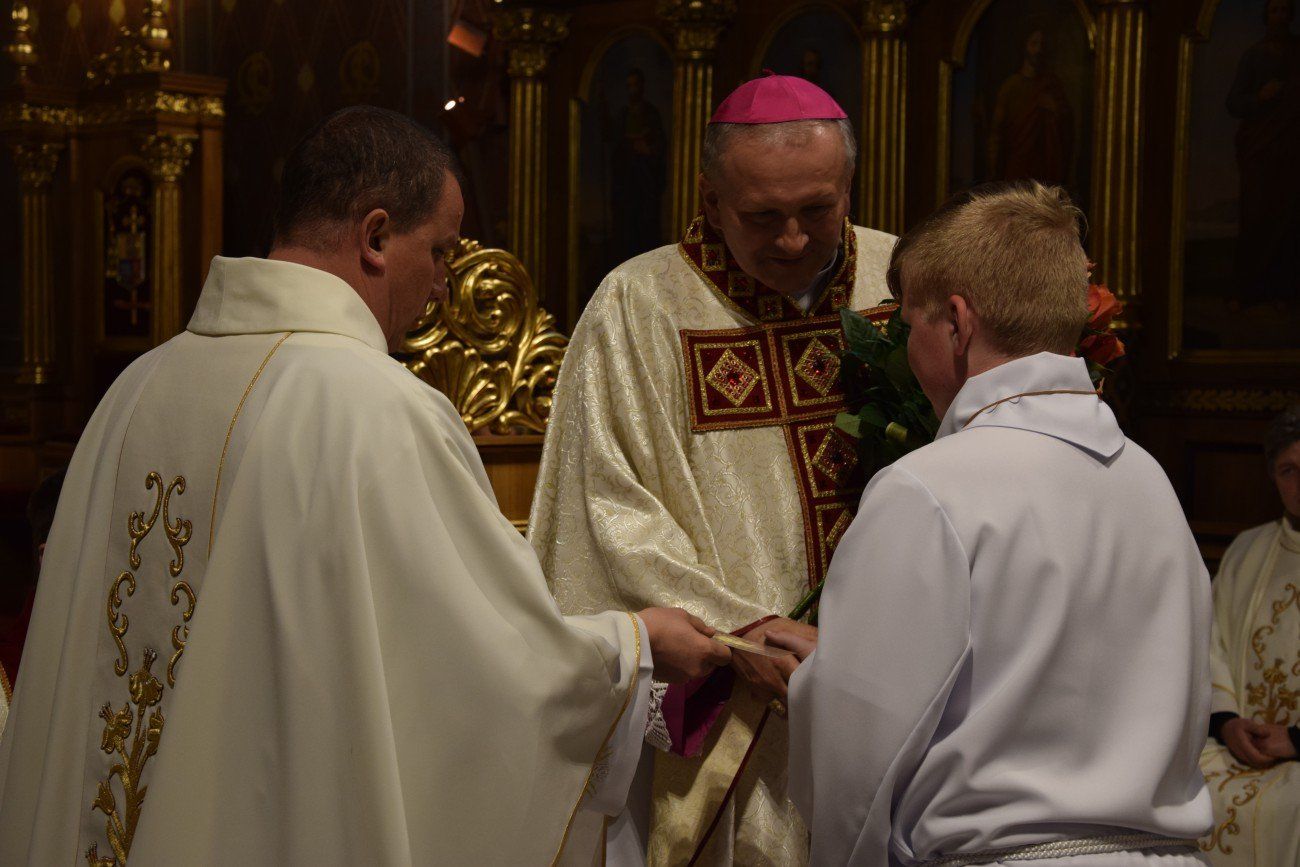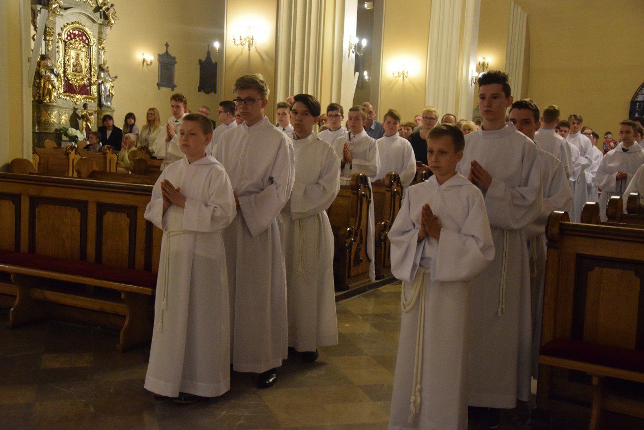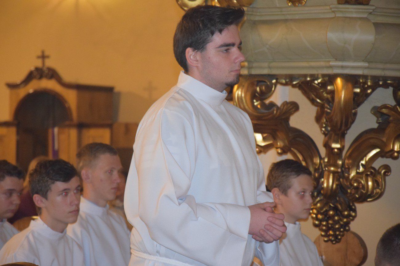 Kulminacją a zarazem podsumowaniem całego kursu lektorskiego była uroczysta Eucharystia w Katedrze Kaliskiej, którą sprawowali księża proboszczowie i wikariusze ministrantów oraz kapłani prowadzący kurs pod przewodnictwem księdza Biskupa Łukasza Buzuna – biskupa pomocniczego naszej diecezji w niedzielne popołudnie, 22 kwietnia. W Eucharystii uczestniczyli rodzice oraz najbliższe rodziny ministrantów, którzy zostali ustanowieni lektorami. Po homilii nastąpiło imienne przedstawienie księdzu Biskupowi kandydatów do przyjęcia posługi lektora oraz parafii, z których pochodzą. Po homilii ksiądz Biskup odmówił modlitwę ustanawiającą lektorów. Następnie ksiądz Biskup wręczył każdemu z ministrantów księgę Pisma Świętego, wypowiadając słowa Przyjmij księgę Pisma Świętego i wiernie przekazuj Słowo Boże, aby coraz mocniej działało w sercach ludzkich. Ksiądz Biskup Łukasz Buzun dokonał także poświęcenia alb i krzyży lektorskich, którymi od tego dnia będą posługiwać się nowo ustanowieni lektorzy. Na zakończenie Eucharystii nowi lektorzy złożyli podziękowania Panu Bogu, księdzu Biskupowi Łukaszowi, kapłanom prowadzącym kurs, proboszczowi Katedry oraz swoim rodzicom, którzy przybyli do Katedry, aby towarzyszyć swoim synom w tym ważnym dla nich dniu.