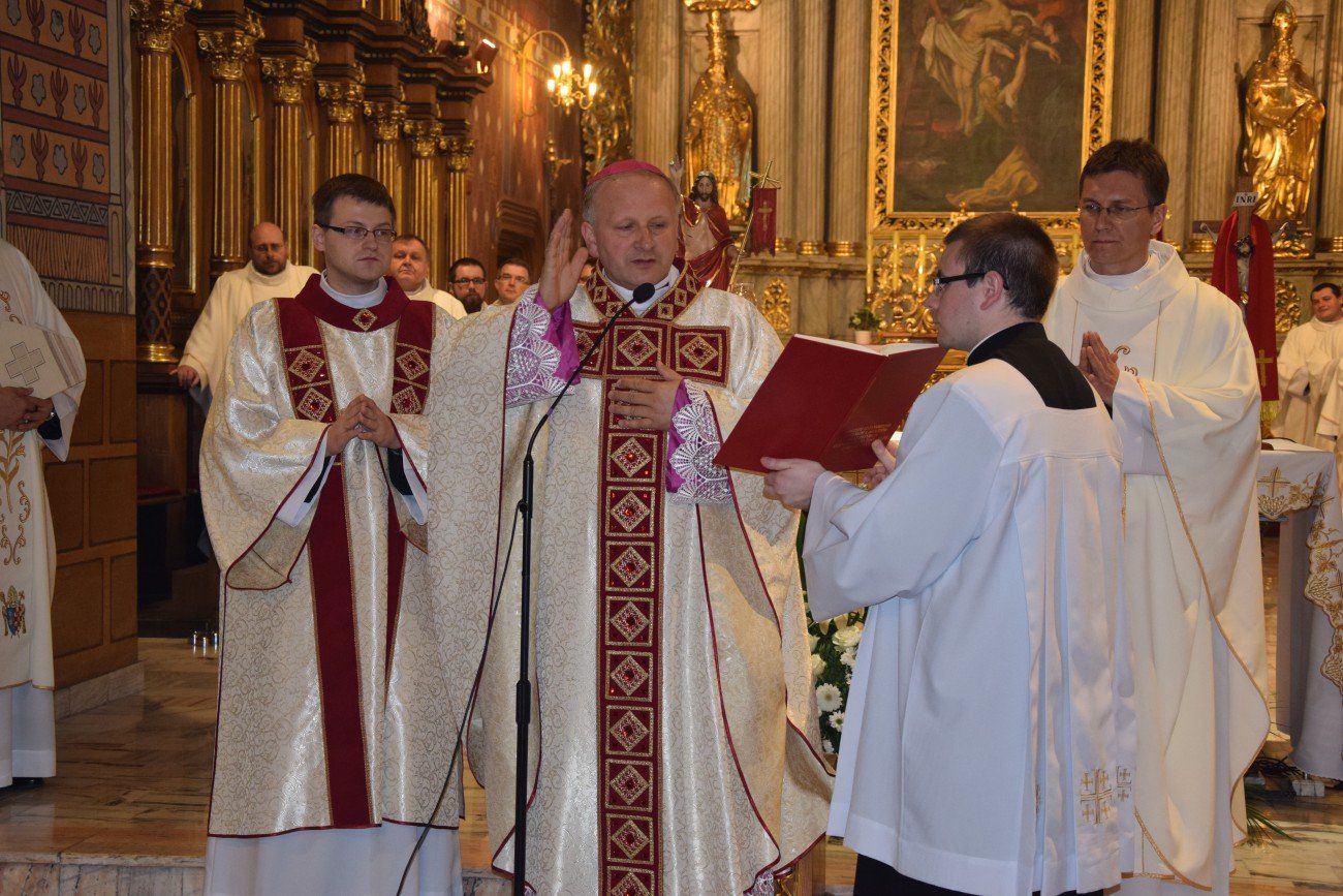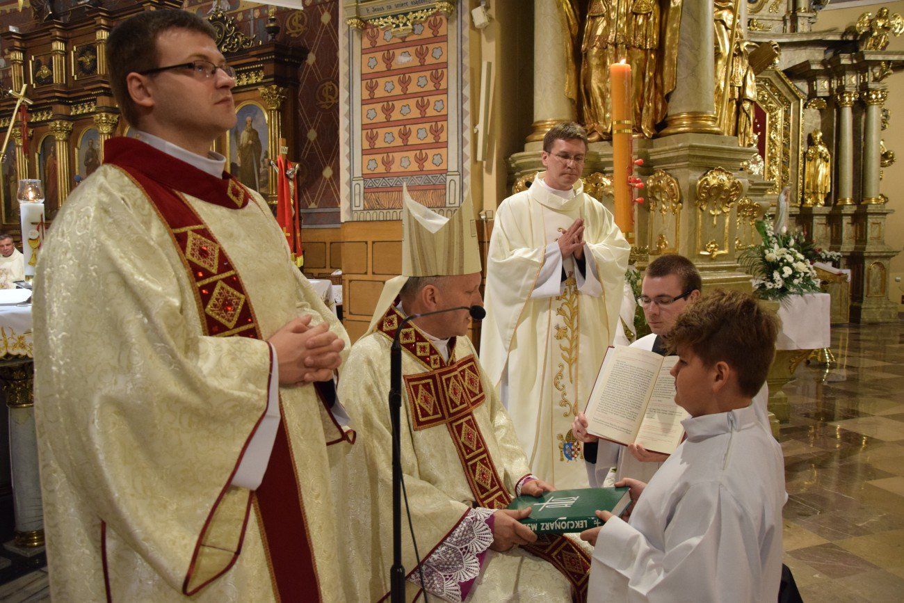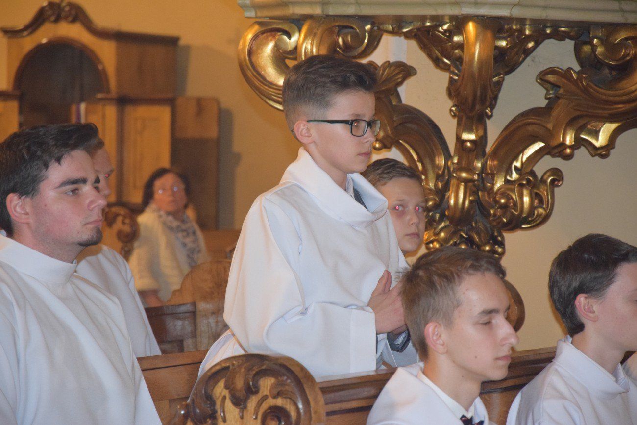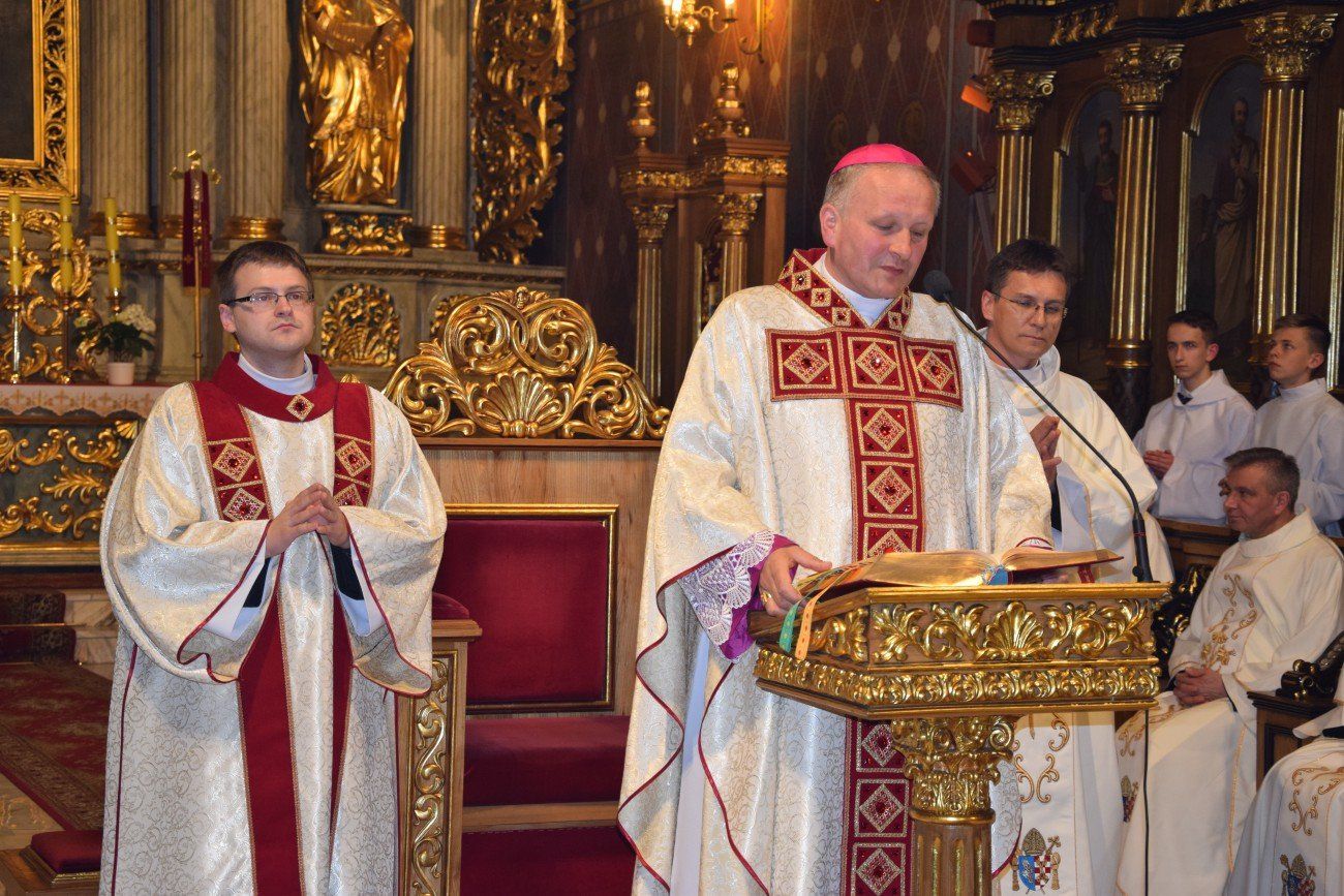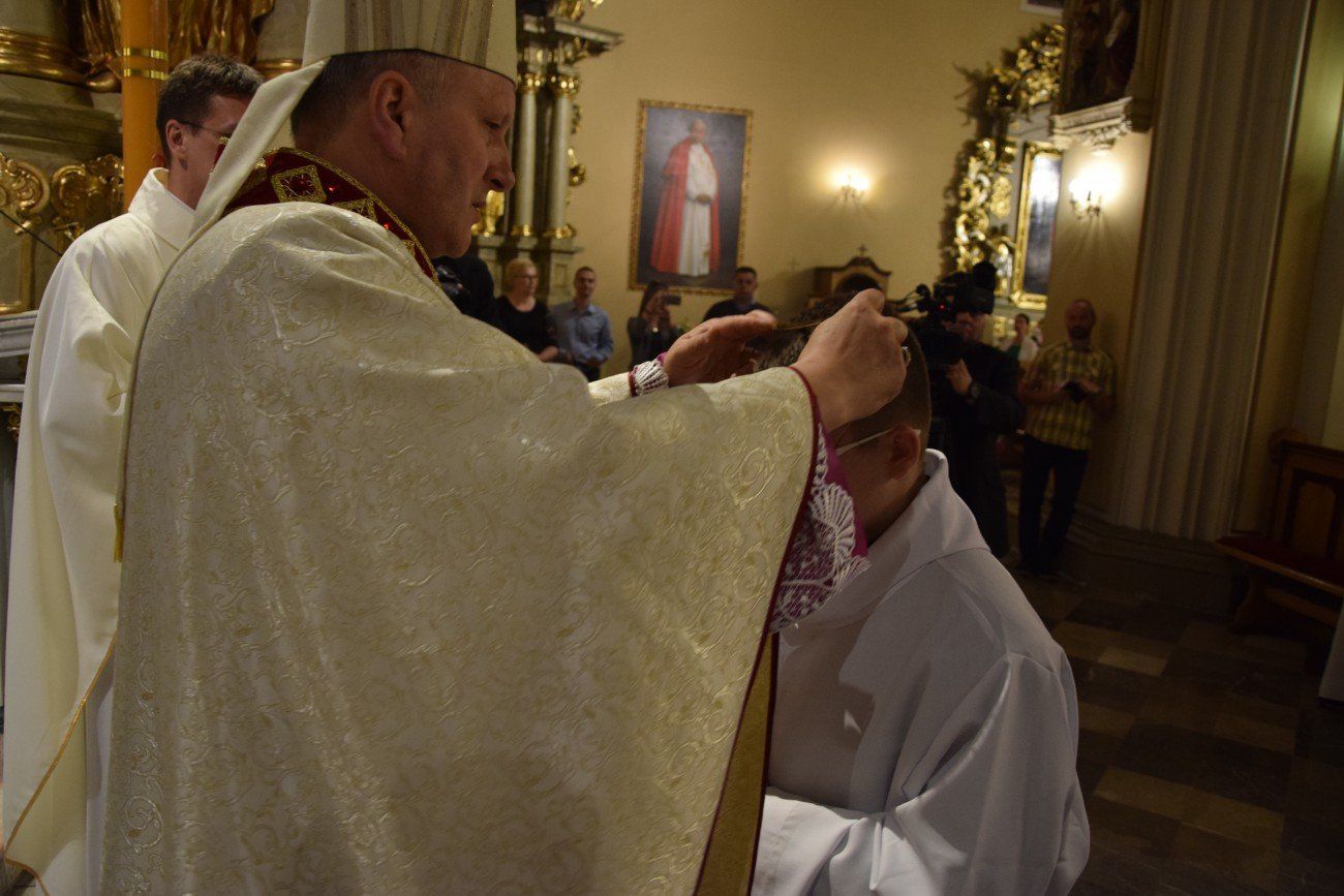 Kulminacją a zarazem podsumowaniem całego kursu lektorskiego była uroczysta Eucharystia w Katedrze Kaliskiej, którą sprawowali księża proboszczowie i wikariusze ministrantów oraz kapłani prowadzący kurs pod przewodnictwem księdza Biskupa Łukasza Buzuna – biskupa pomocniczego naszej diecezji w niedzielne popołudnie, 22 kwietnia. W Eucharystii uczestniczyli rodzice oraz najbliższe rodziny ministrantów, którzy zostali ustanowieni lektorami. Po homilii nastąpiło imienne przedstawienie księdzu Biskupowi kandydatów do przyjęcia posługi lektora oraz parafii, z których pochodzą. Po homilii ksiądz Biskup odmówił modlitwę ustanawiającą lektorów. Następnie ksiądz Biskup wręczył każdemu z ministrantów księgę Pisma Świętego, wypowiadając słowa Przyjmij księgę Pisma Świętego i wiernie przekazuj Słowo Boże, aby coraz mocniej działało w sercach ludzkich. Ksiądz Biskup Łukasz Buzun dokonał także poświęcenia alb i krzyży lektorskich, którymi od tego dnia będą posługiwać się nowo ustanowieni lektorzy. Na zakończenie Eucharystii nowi lektorzy złożyli podziękowania Panu Bogu, księdzu Biskupowi Łukaszowi, kapłanom prowadzącym kurs, proboszczowi Katedry oraz swoim rodzicom, którzy przybyli do Katedry, aby towarzyszyć swoim synom w tym ważnym dla nich dniu.