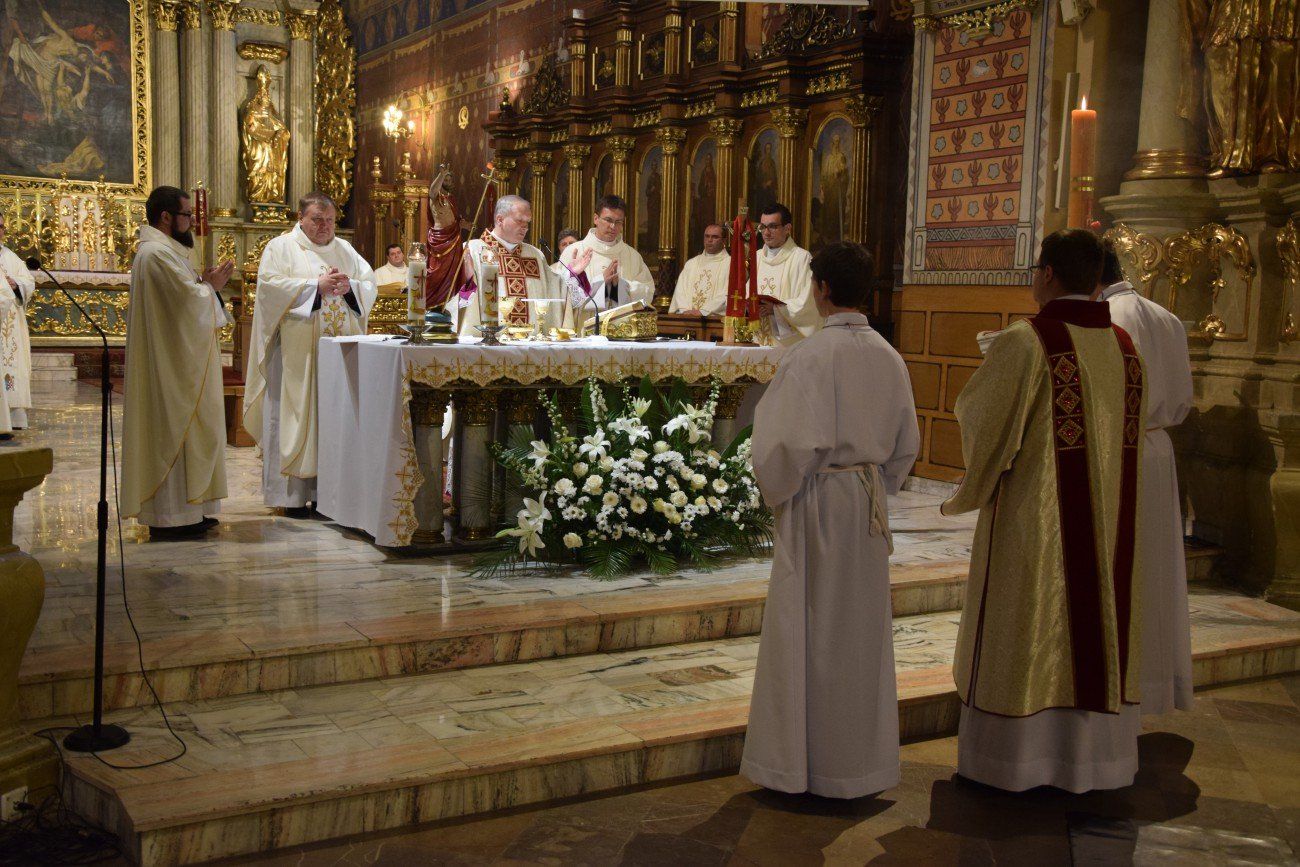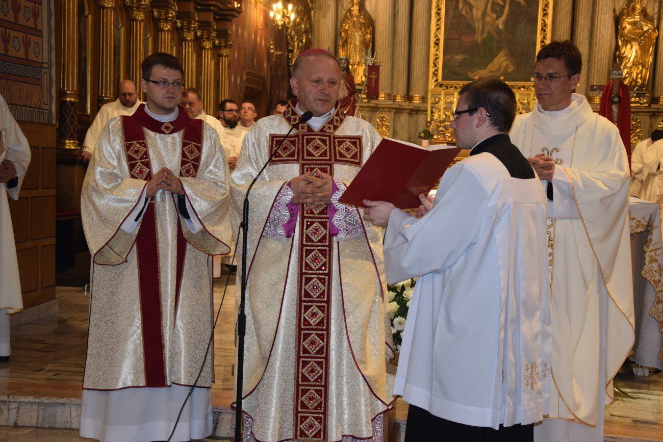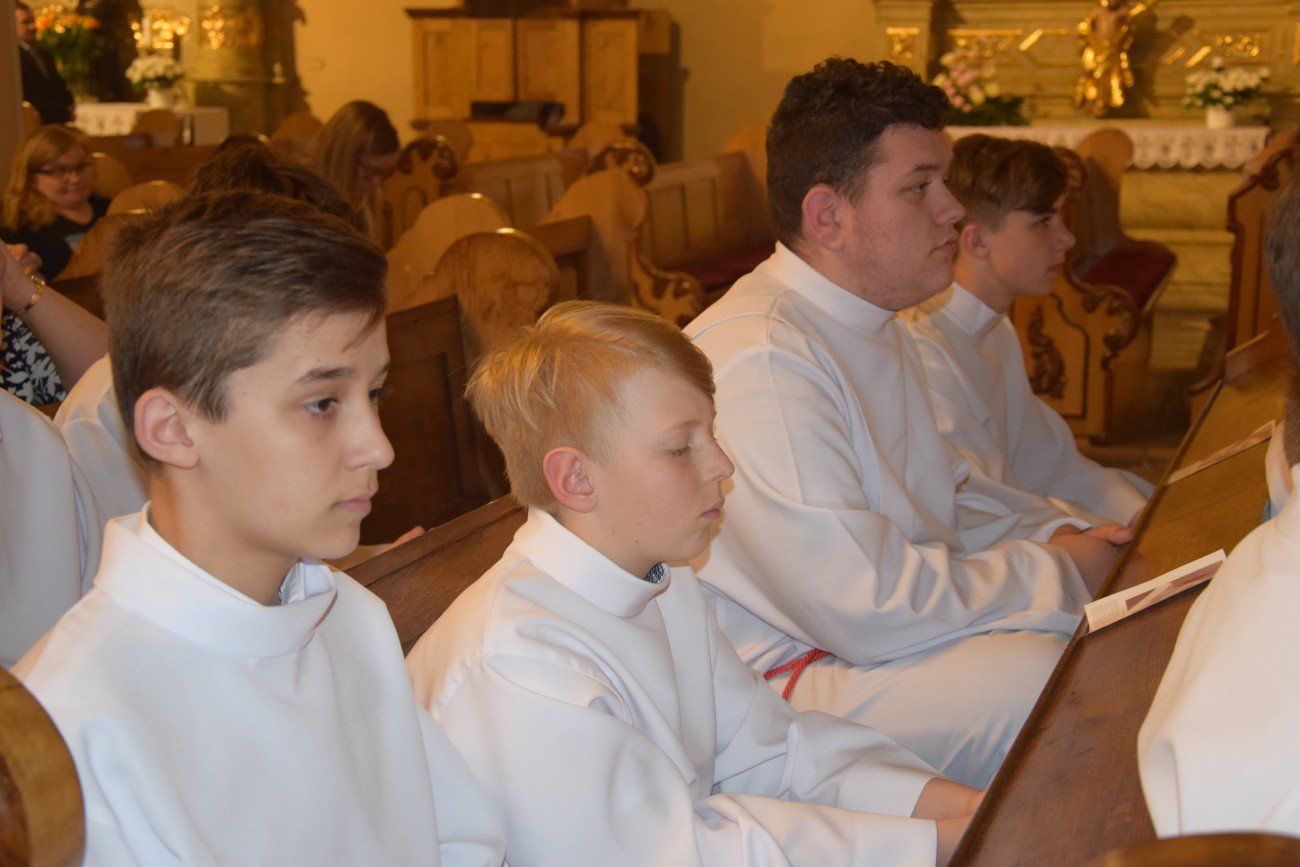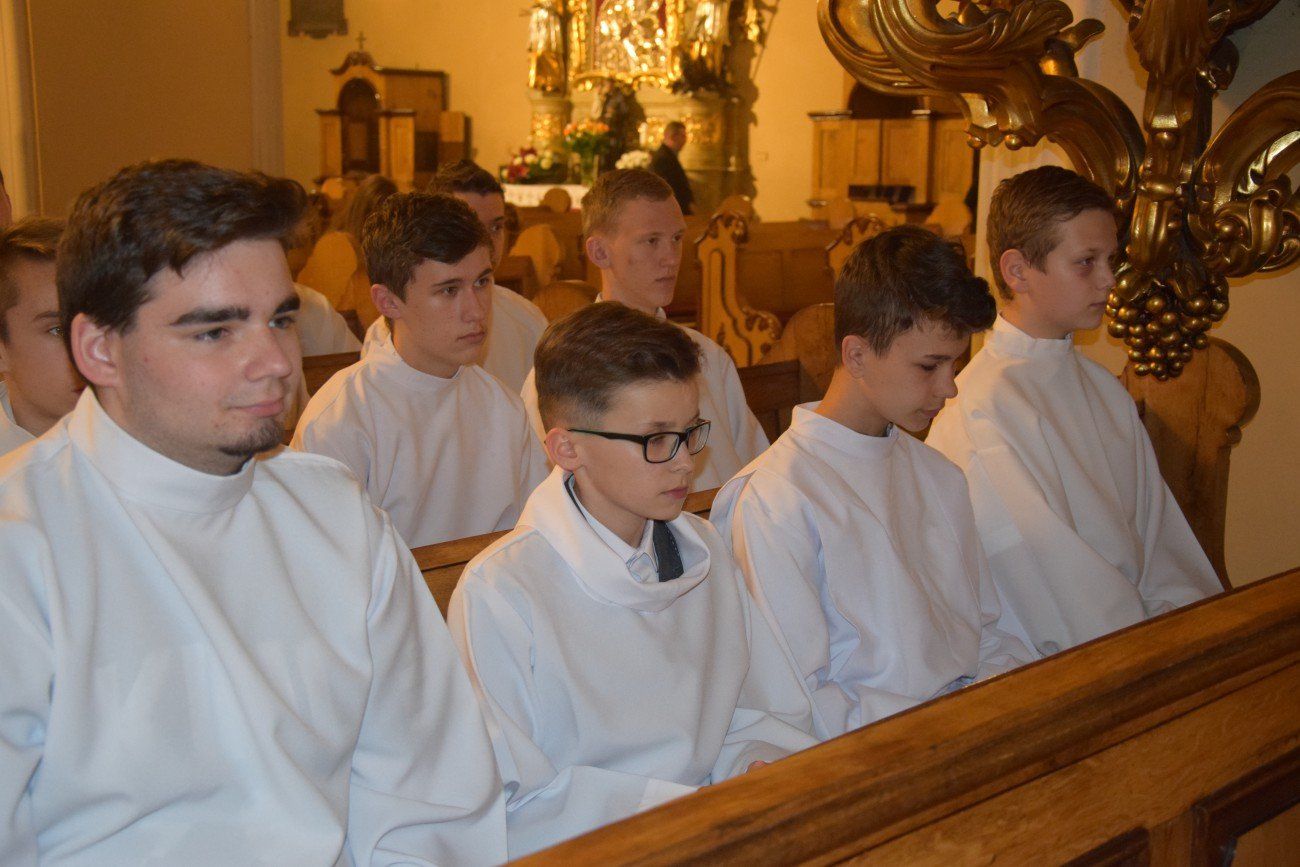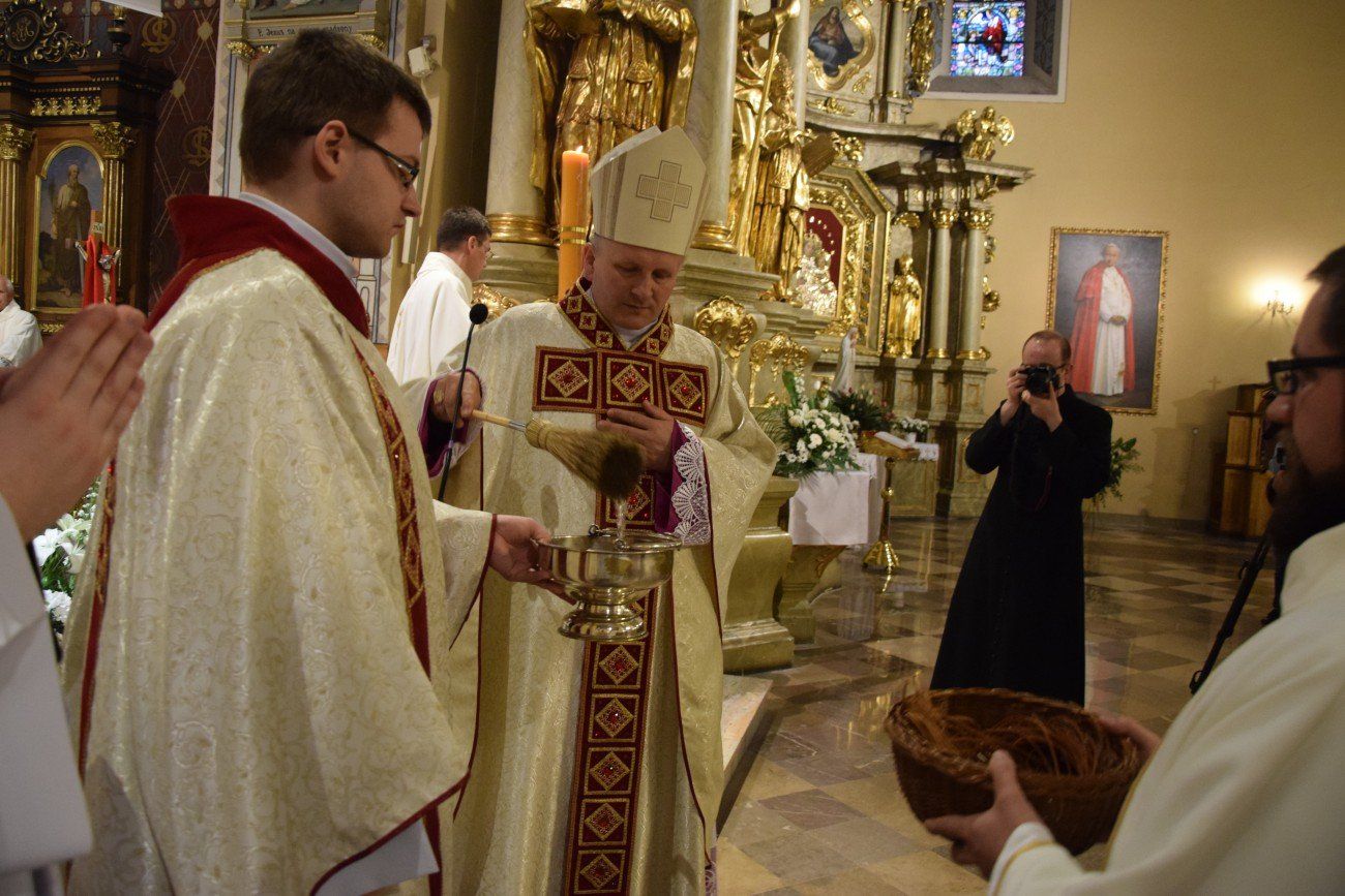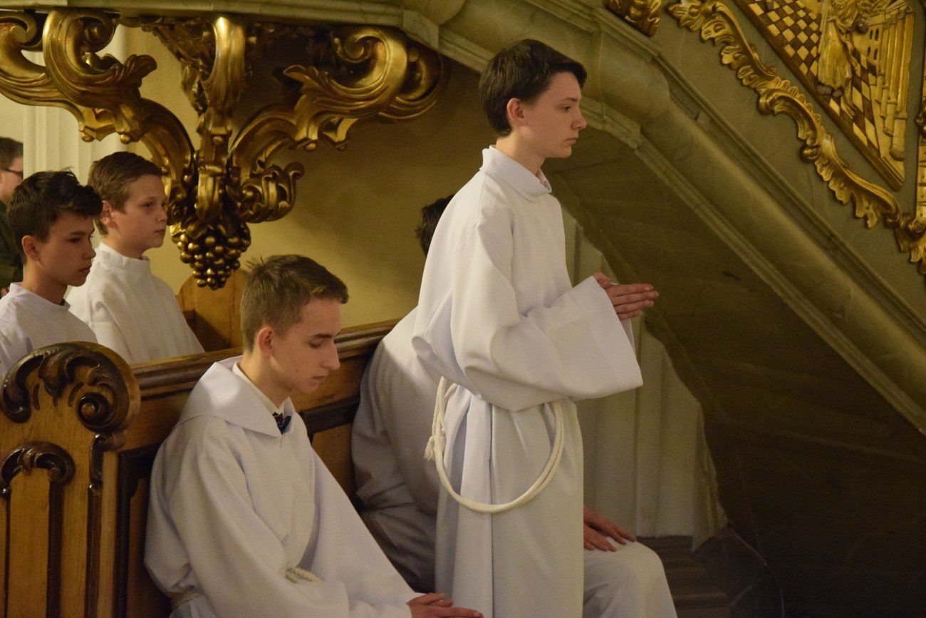 Kulminacją a zarazem podsumowaniem całego kursu lektorskiego była uroczysta Eucharystia w Katedrze Kaliskiej, którą sprawowali księża proboszczowie i wikariusze ministrantów oraz kapłani prowadzący kurs pod przewodnictwem księdza Biskupa Łukasza Buzuna – biskupa pomocniczego naszej diecezji w niedzielne popołudnie, 22 kwietnia. W Eucharystii uczestniczyli rodzice oraz najbliższe rodziny ministrantów, którzy zostali ustanowieni lektorami. Po homilii nastąpiło imienne przedstawienie księdzu Biskupowi kandydatów do przyjęcia posługi lektora oraz parafii, z których pochodzą. Po homilii ksiądz Biskup odmówił modlitwę ustanawiającą lektorów. Następnie ksiądz Biskup wręczył każdemu z ministrantów księgę Pisma Świętego, wypowiadając słowa Przyjmij księgę Pisma Świętego i wiernie przekazuj Słowo Boże, aby coraz mocniej działało w sercach ludzkich. Ksiądz Biskup Łukasz Buzun dokonał także poświęcenia alb i krzyży lektorskich, którymi od tego dnia będą posługiwać się nowo ustanowieni lektorzy. Na zakończenie Eucharystii nowi lektorzy złożyli podziękowania Panu Bogu, księdzu Biskupowi Łukaszowi, kapłanom prowadzącym kurs, proboszczowi Katedry oraz swoim rodzicom, którzy przybyli do Katedry, aby towarzyszyć swoim synom w tym ważnym dla nich dniu.