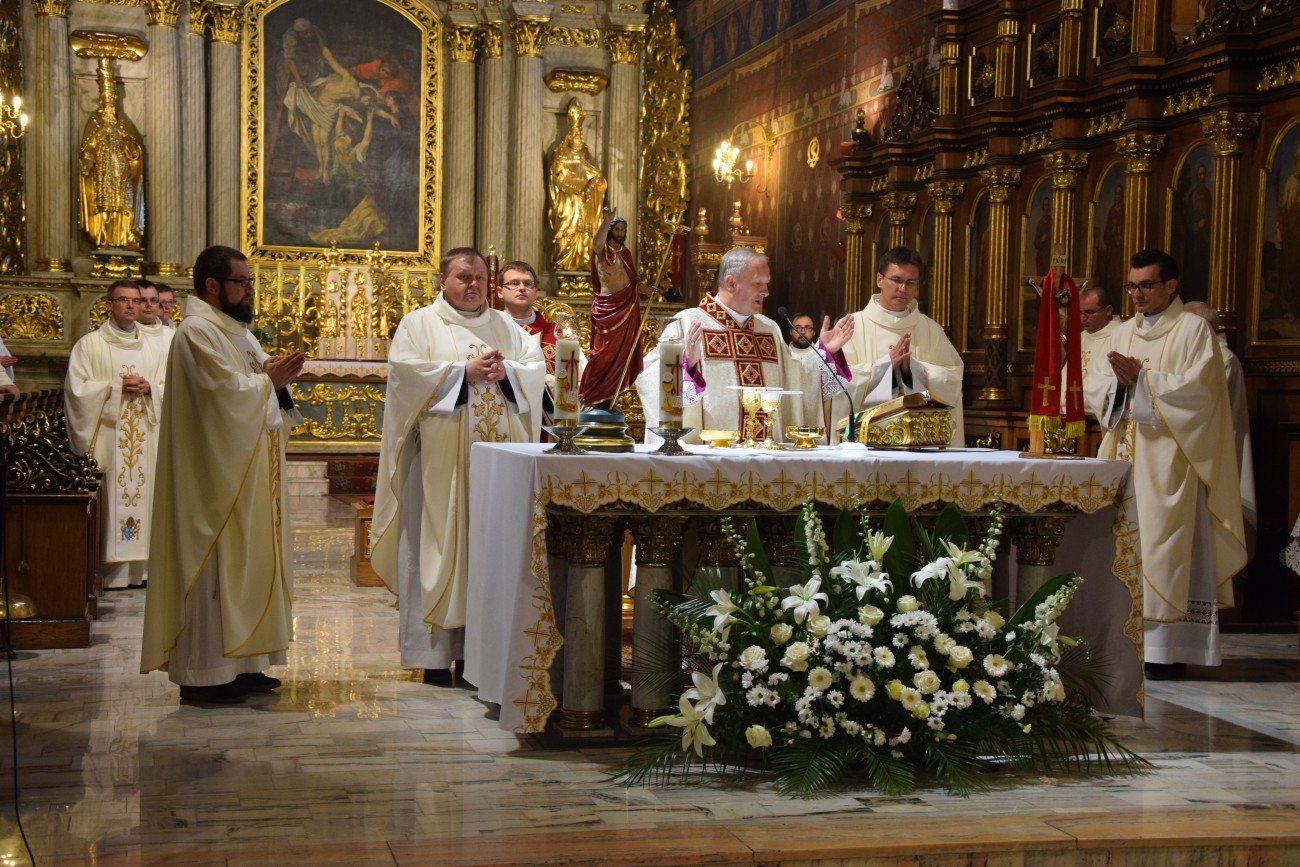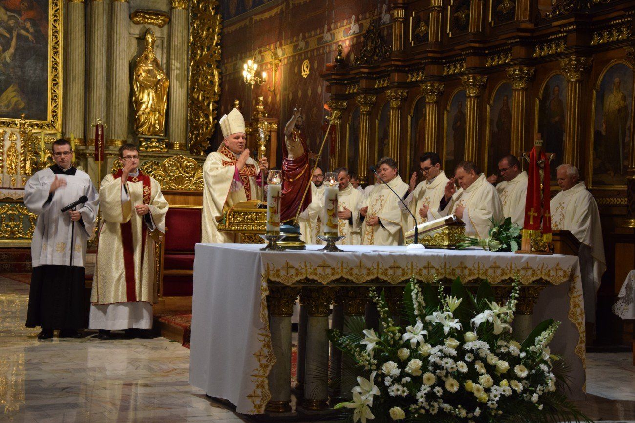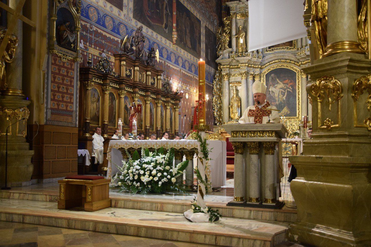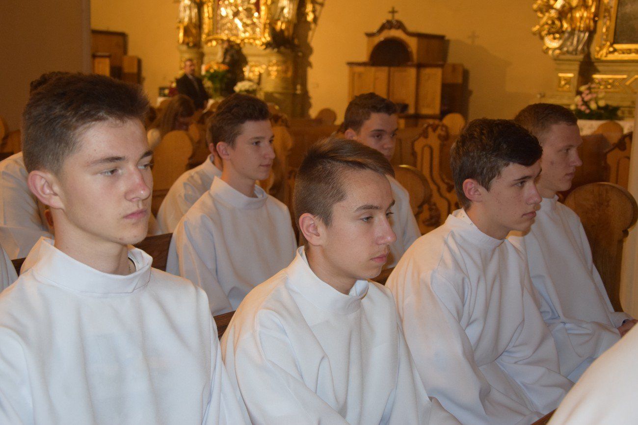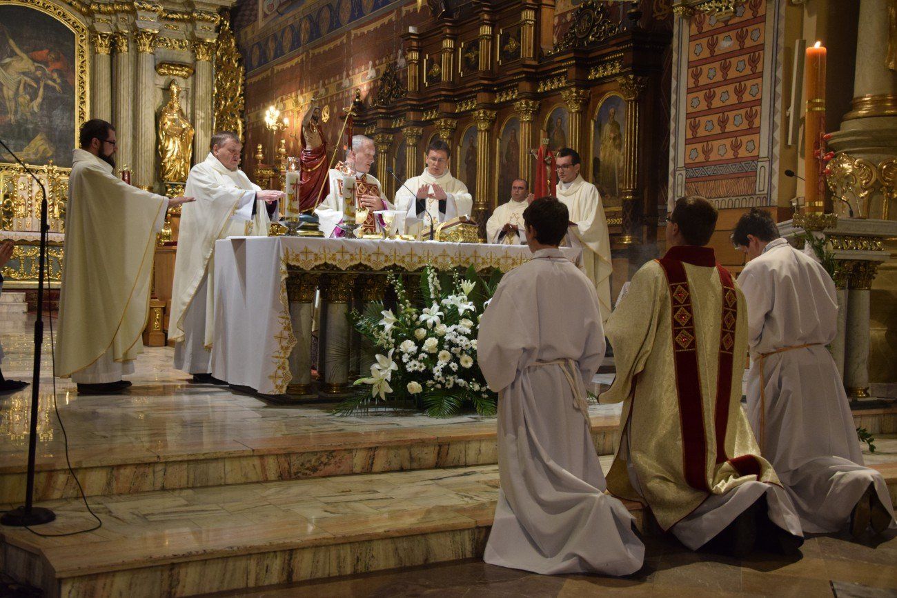 Kulminacją a zarazem podsumowaniem całego kursu lektorskiego była uroczysta Eucharystia w Katedrze Kaliskiej, którą sprawowali księża proboszczowie i wikariusze ministrantów oraz kapłani prowadzący kurs pod przewodnictwem księdza Biskupa Łukasza Buzuna – biskupa pomocniczego naszej diecezji w niedzielne popołudnie, 22 kwietnia. W Eucharystii uczestniczyli rodzice oraz najbliższe rodziny ministrantów, którzy zostali ustanowieni lektorami. Po homilii nastąpiło imienne przedstawienie księdzu Biskupowi kandydatów do przyjęcia posługi lektora oraz parafii, z których pochodzą. Po homilii ksiądz Biskup odmówił modlitwę ustanawiającą lektorów. Następnie ksiądz Biskup wręczył każdemu z ministrantów księgę Pisma Świętego, wypowiadając słowa Przyjmij księgę Pisma Świętego i wiernie przekazuj Słowo Boże, aby coraz mocniej działało w sercach ludzkich. Ksiądz Biskup Łukasz Buzun dokonał także poświęcenia alb i krzyży lektorskich, którymi od tego dnia będą posługiwać się nowo ustanowieni lektorzy. Na zakończenie Eucharystii nowi lektorzy złożyli podziękowania Panu Bogu, księdzu Biskupowi Łukaszowi, kapłanom prowadzącym kurs, proboszczowi Katedry oraz swoim rodzicom, którzy przybyli do Katedry, aby towarzyszyć swoim synom w tym ważnym dla nich dniu.