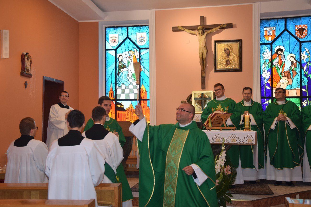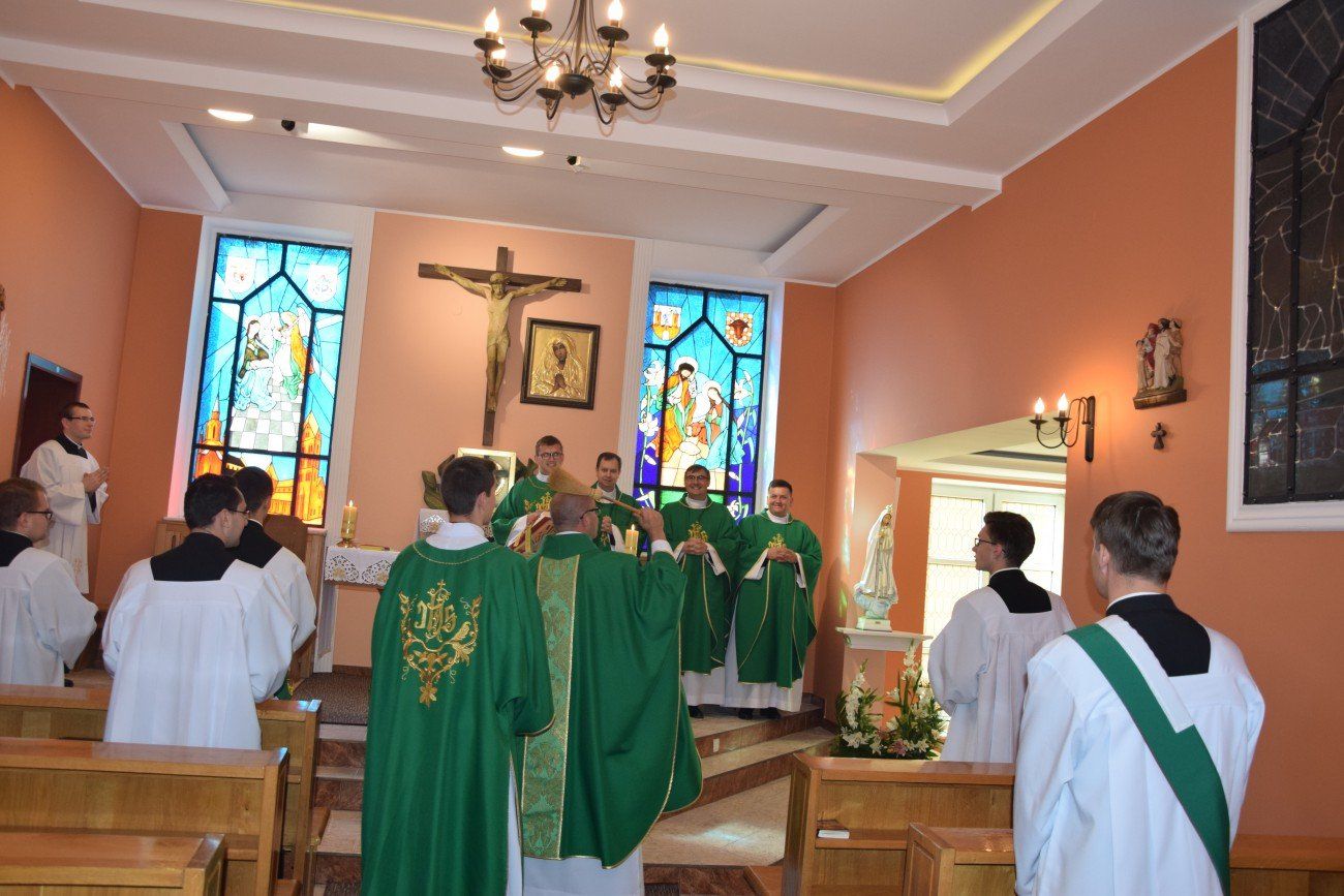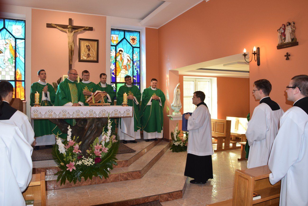 W piątek, 22 czerwca 2018 roku wspólnota naszego seminarium świętowała przypadające na koniec miesiąca imieniny księdza Rektora Piotra Górskiego. Z tej okazji Solenizant przewodniczył uroczystej Eucharystii, na zakończenie której dziekan alumnów w imieniu całej wspólnoty złożył księdzu Rektorowi życzenia imieninowe. Od początku czerwca bieżącego roku trwał remont kaplicy Dobrego Pasterza w naszym seminarium. Eucharystia ta była pierwszą sprawowaną w odnowionej kaplicy, dlatego na zakończenie Mszy świętej ksiądz Rektor dokonał poświęcenia wyremontowanej i ponownie oddanej do użytku kaplicy Dobrego Pasterza.