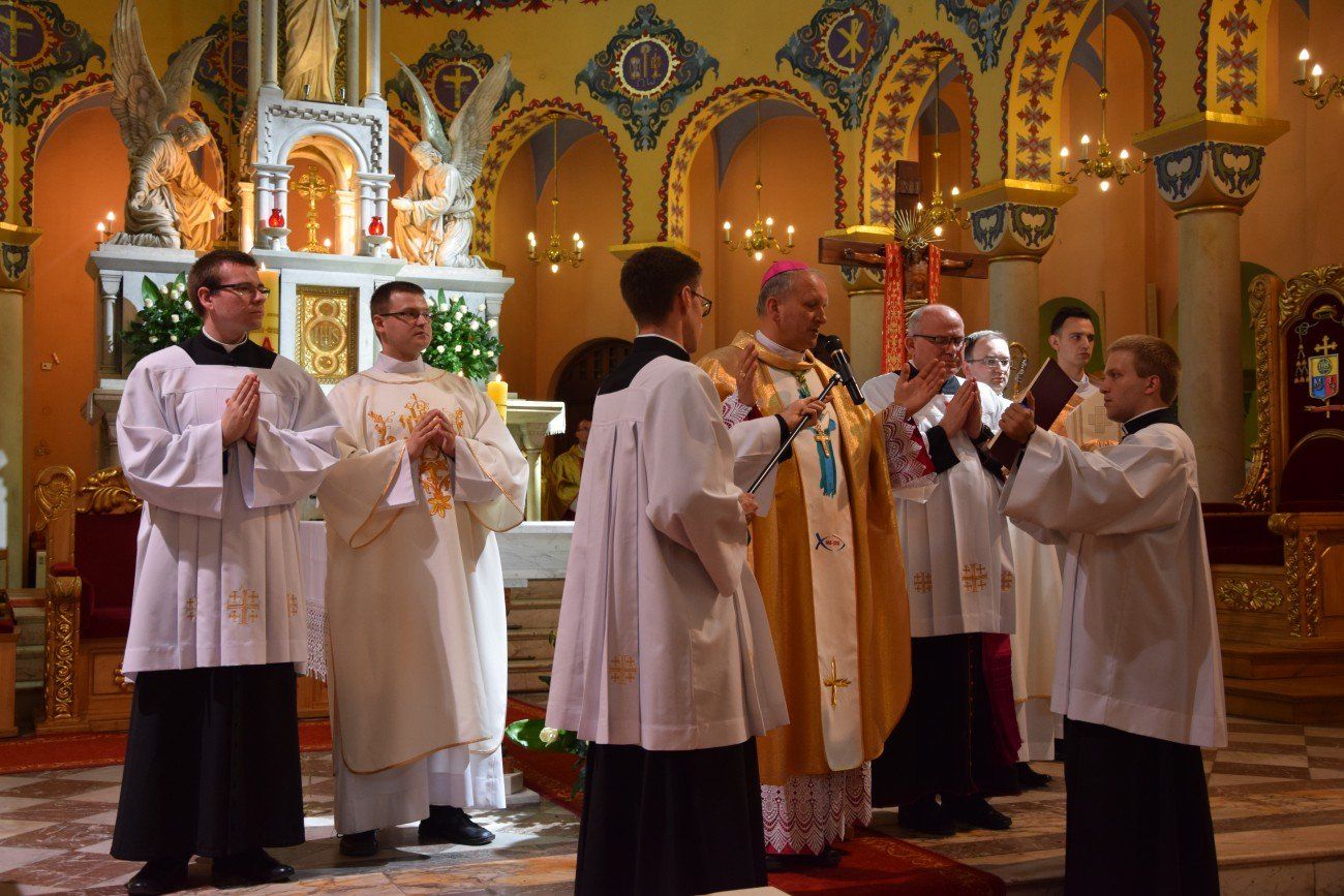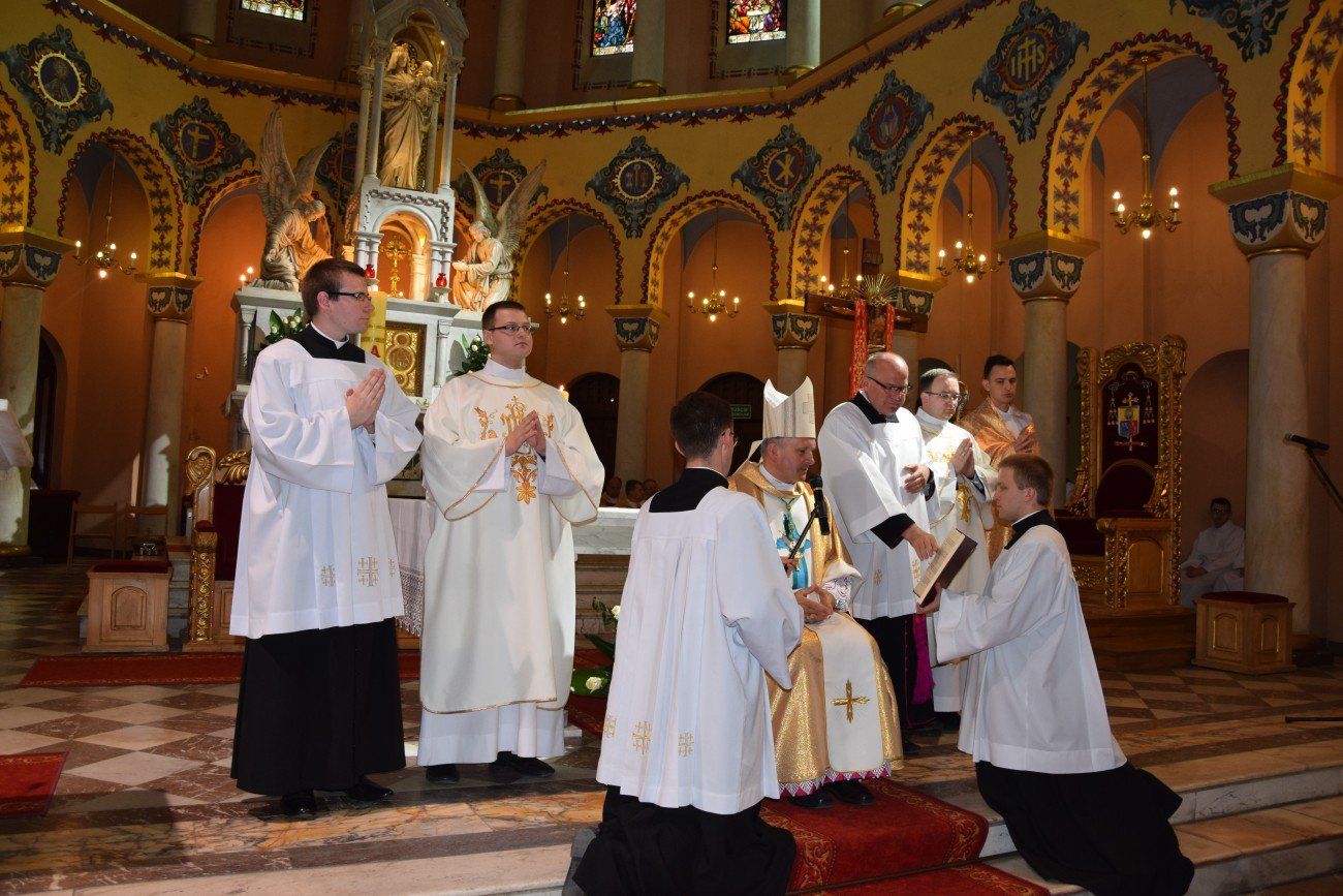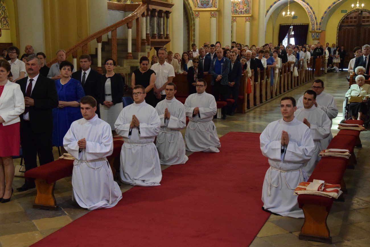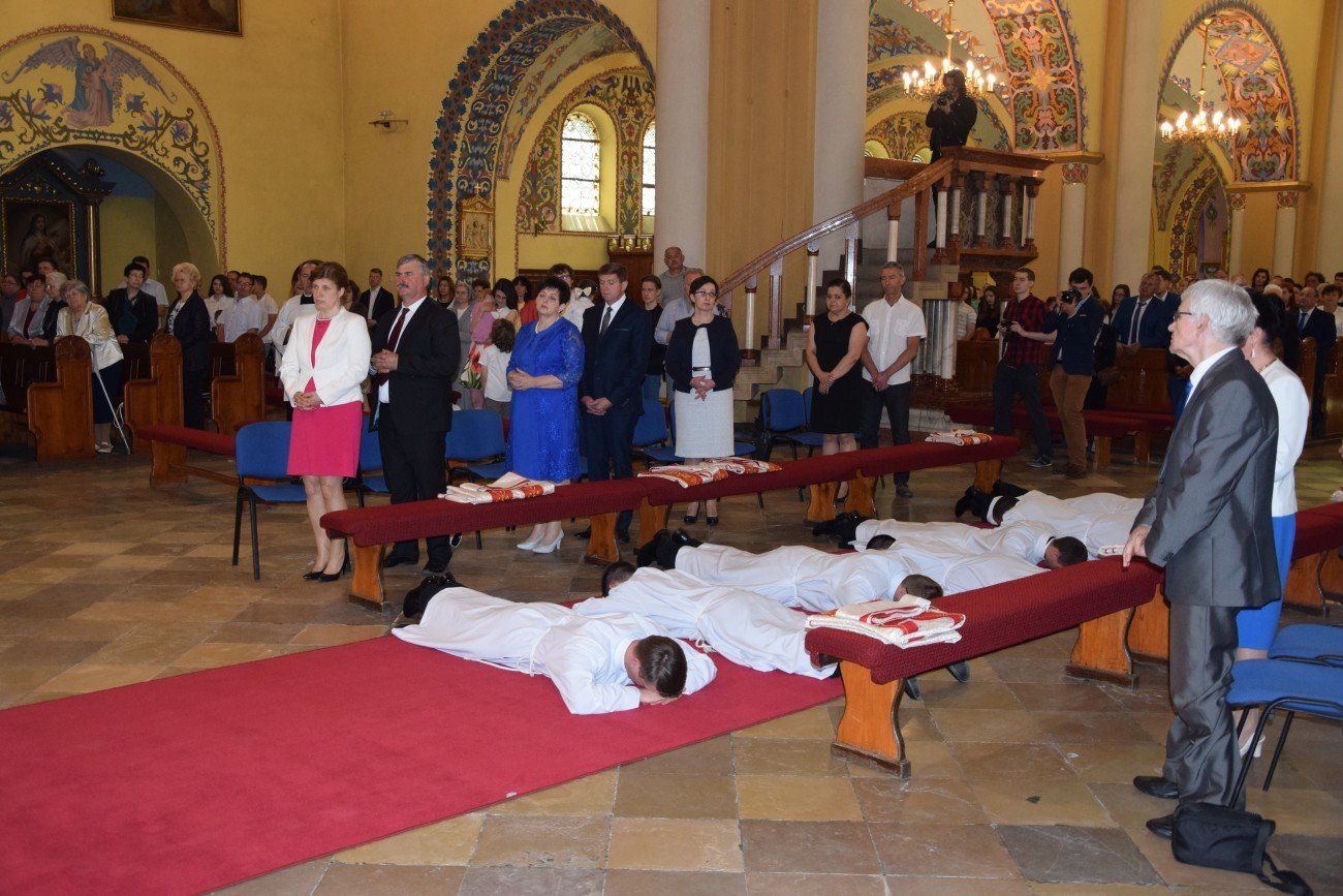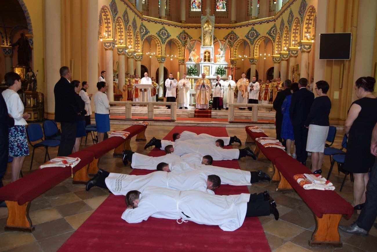 W niedzielę, 20 maja 2018 roku w ostrowskiej konkatedrze o godzinie 13:15 rozpoczęła się uroczysta Eucharystia, w czasie której siedmiu alumnów V roku przyjęło święcenia w stopniu diakonatu. Święceń udzielił ksiądz biskup Łukasz Buzun - biskup pomocniczy naszej diecezji. Nowych diakonów polecajmy Bogu w naszych modlitwach.