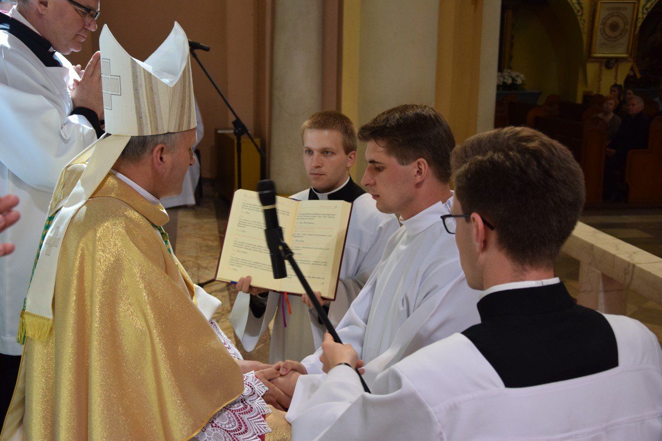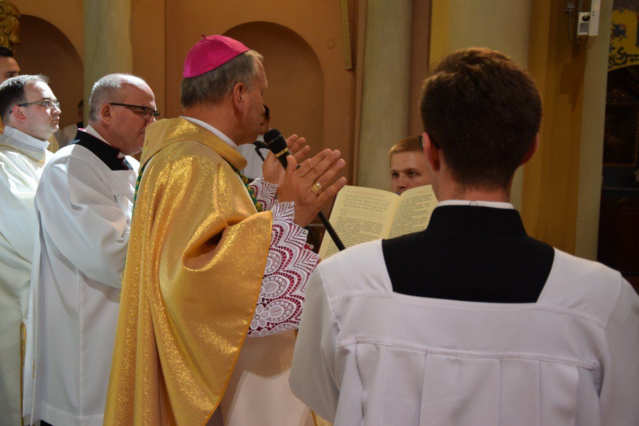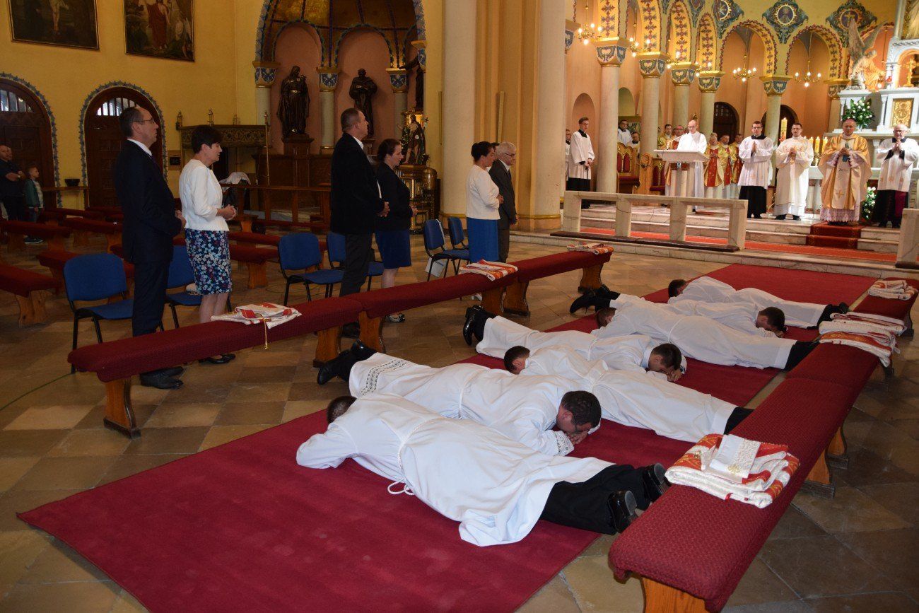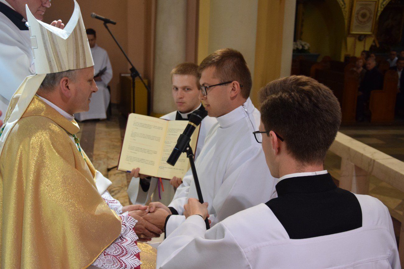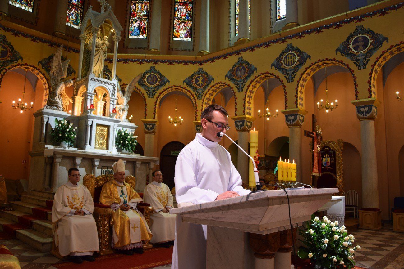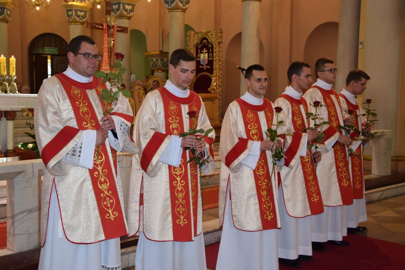 W niedzielę, 20 maja 2018 roku w ostrowskiej konkatedrze o godzinie 13:15 rozpoczęła się uroczysta Eucharystia, w czasie której siedmiu alumnów V roku przyjęło święcenia w stopniu diakonatu. Święceń udzielił ksiądz biskup Łukasz Buzun - biskup pomocniczy naszej diecezji. Nowych diakonów polecajmy Bogu w naszych modlitwach.