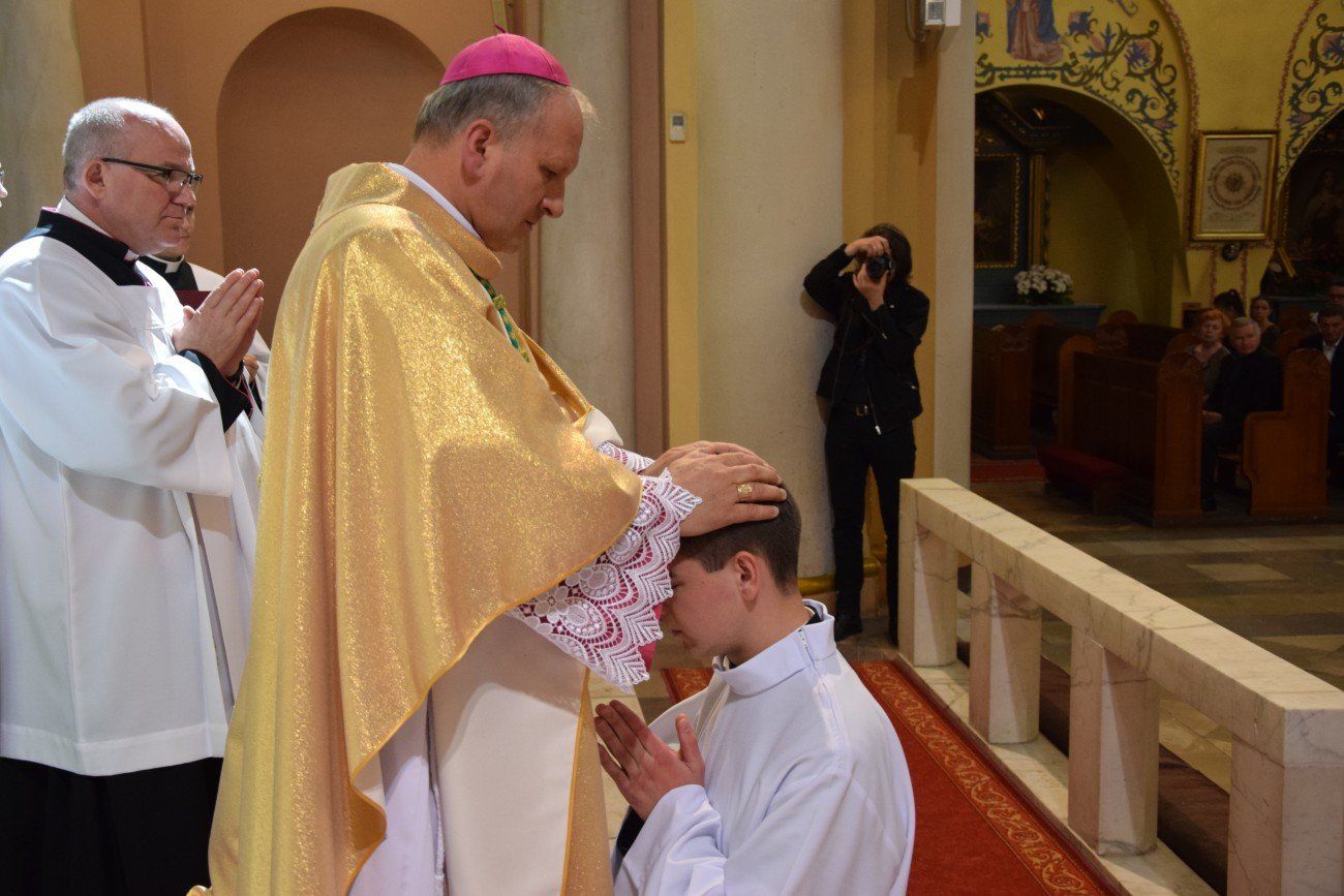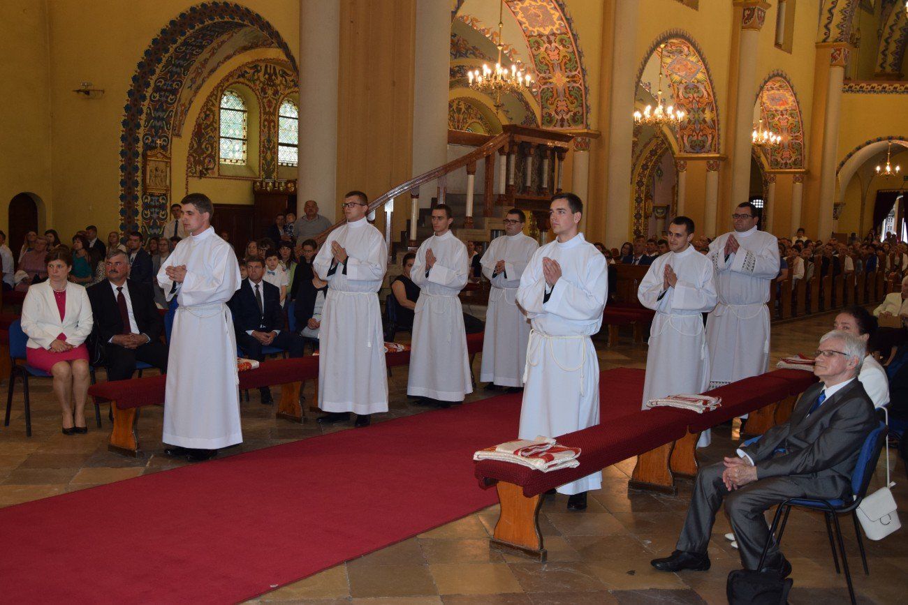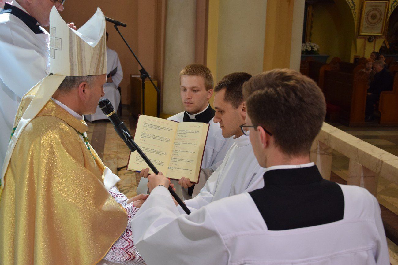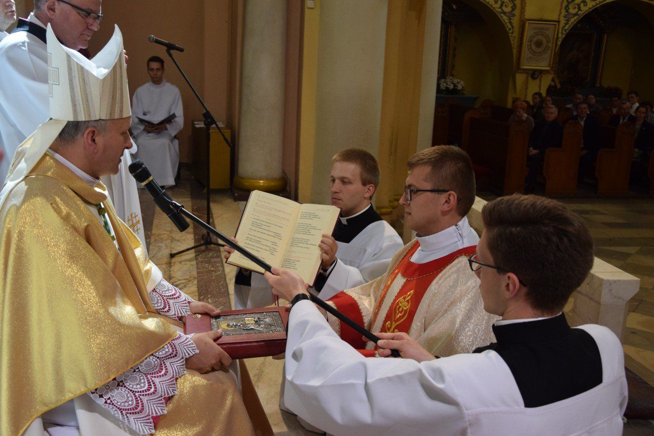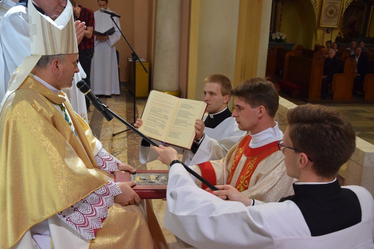W niedzielę, 20 maja 2018 roku w ostrowskiej konkatedrze o godzinie 13:15 rozpoczęła się uroczysta Eucharystia, w czasie której siedmiu alumnów V roku przyjęło święcenia w stopniu diakonatu. Święceń udzielił ksiądz biskup Łukasz Buzun - biskup pomocniczy naszej diecezji. Nowych diakonów polecajmy Bogu w naszych modlitwach.