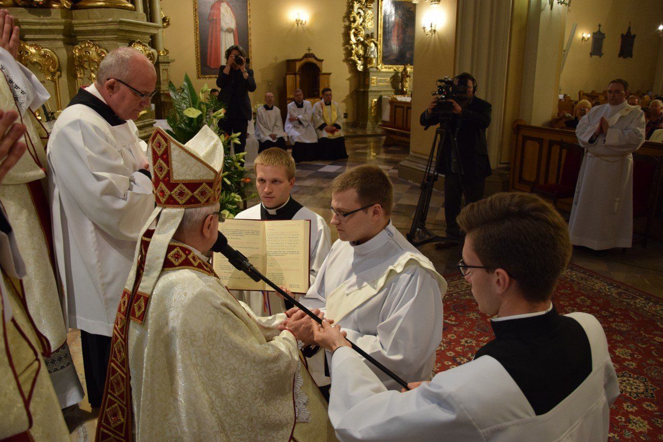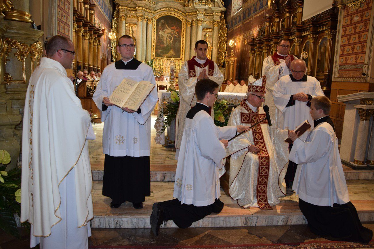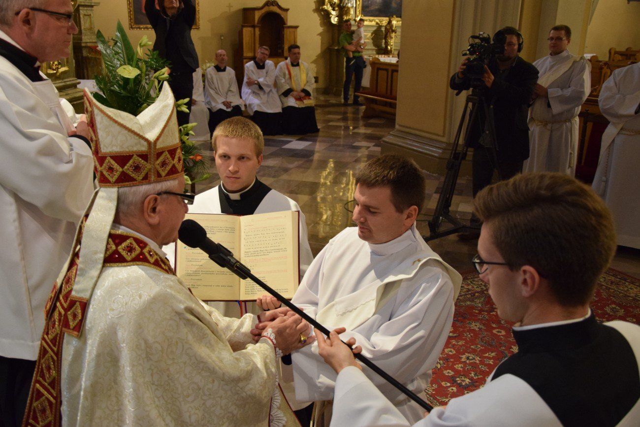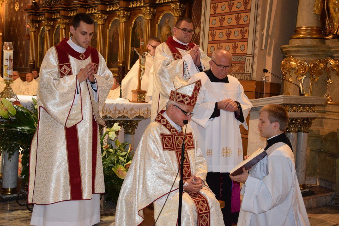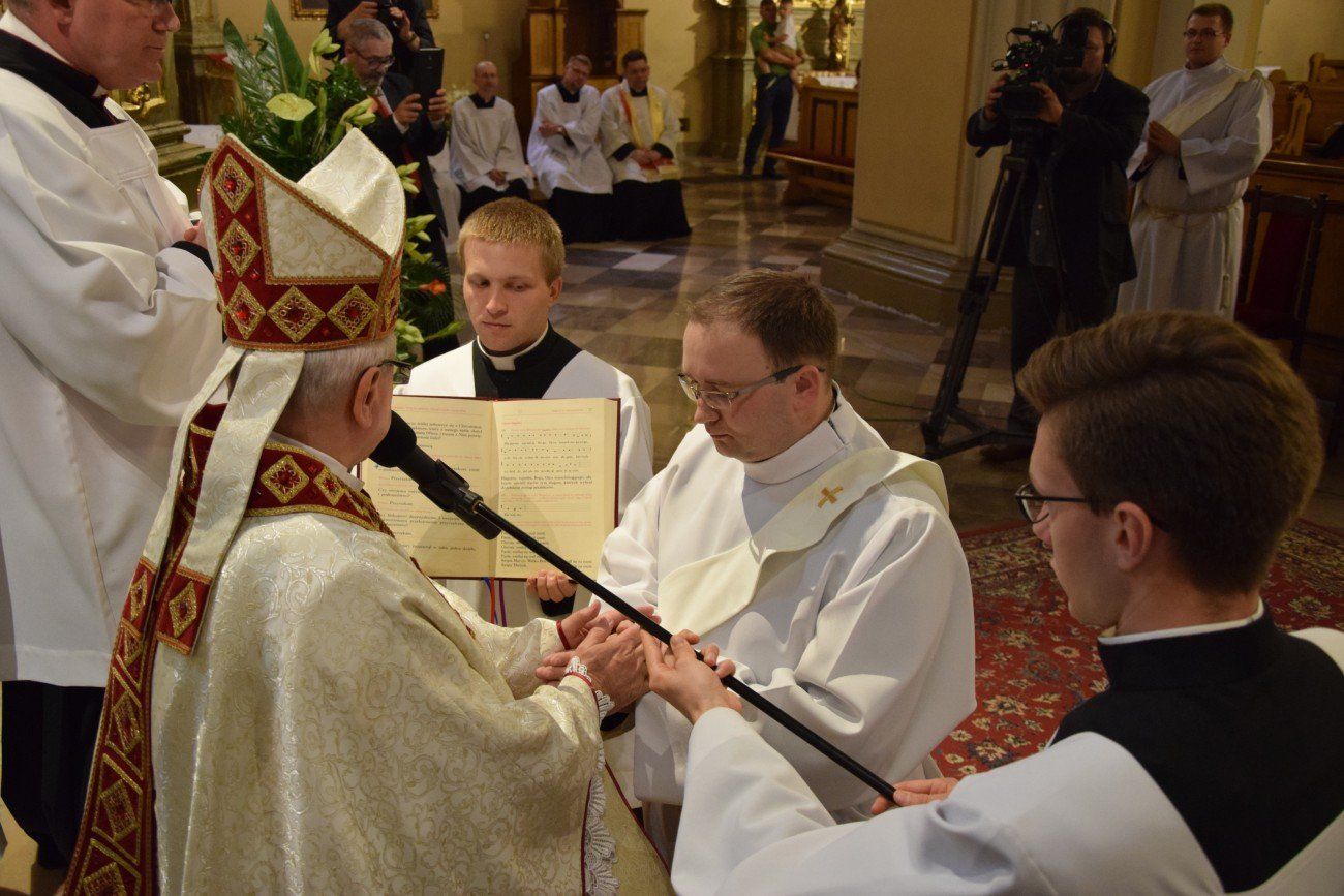 W sobotę, 26 maja 2018 roku nasza diecezja wzbogaciła się o 4 nowych kapłanów. Przyjęli oni święceni kapłańskie w stopniu prezbiteratu z rąk księdza biskupa Edwarda Janiaka w kaliskiej Katedrze podczas Mszy świętej, która rozpoczęła się o godzinie 11:00. Po Eucharystii Biskup Kaliski wręczył neoprezbiterom dekrety na parafie, w których będą posługiwać jako wikariusze. Naszych neoprezbiterów polecajmy Bogu w codziennych modlitwach.