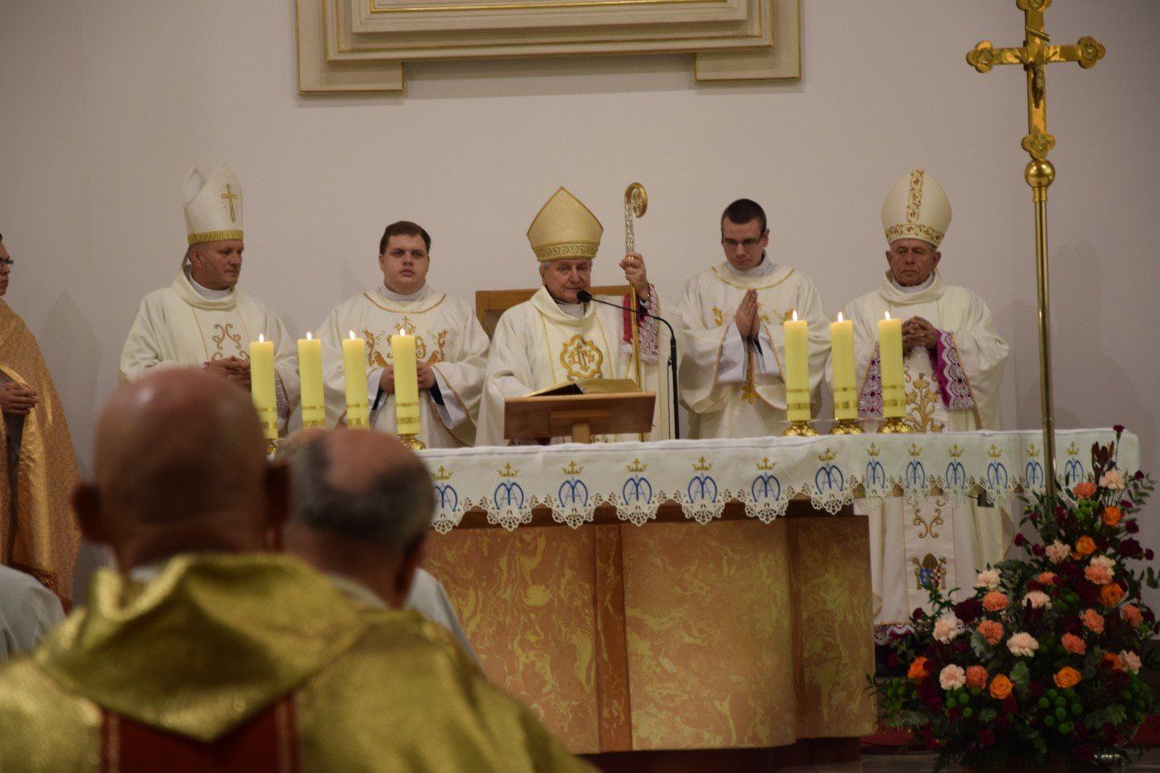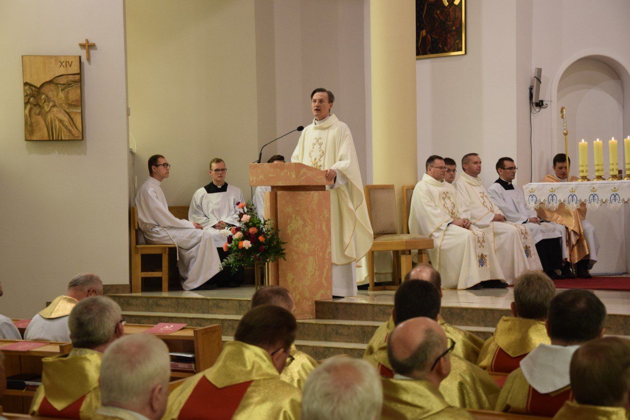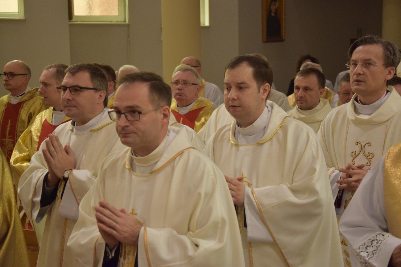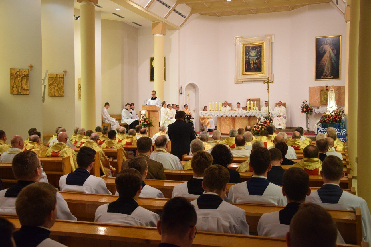 Pierwszym i zarazem najważniejszym punktem była Msza Święta sprawowana pod przewodnictwem Księdza Biskupa Edwarda Janiaka - Ordynariusza Diecezji Kaliskiej, koncelebrowanej przez księży biskupów oraz licznie zgromadzonego gremium prezbiterów. Homilię wygłosił ksiądz kanonik dr Jarosław Powąska - wykładowca naszego seminarium, a także dyrektor Wydziału Katechetycznego Kurii Diecezjalnej w Kaliszu.