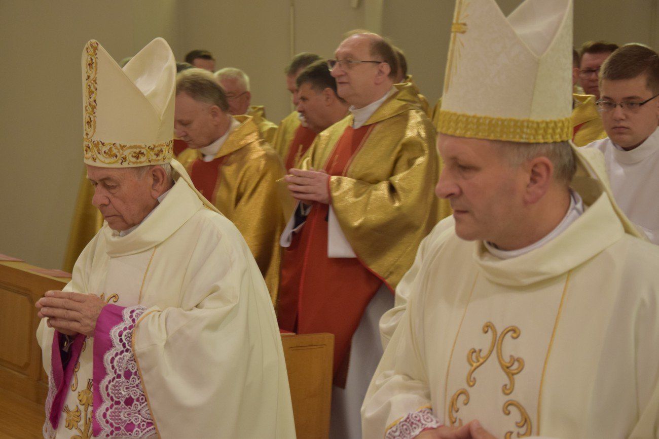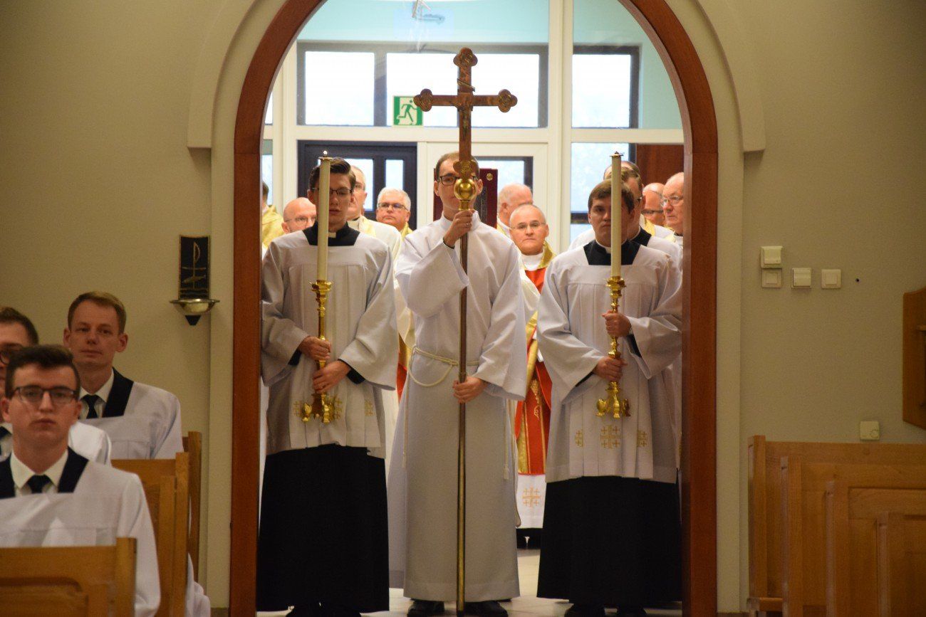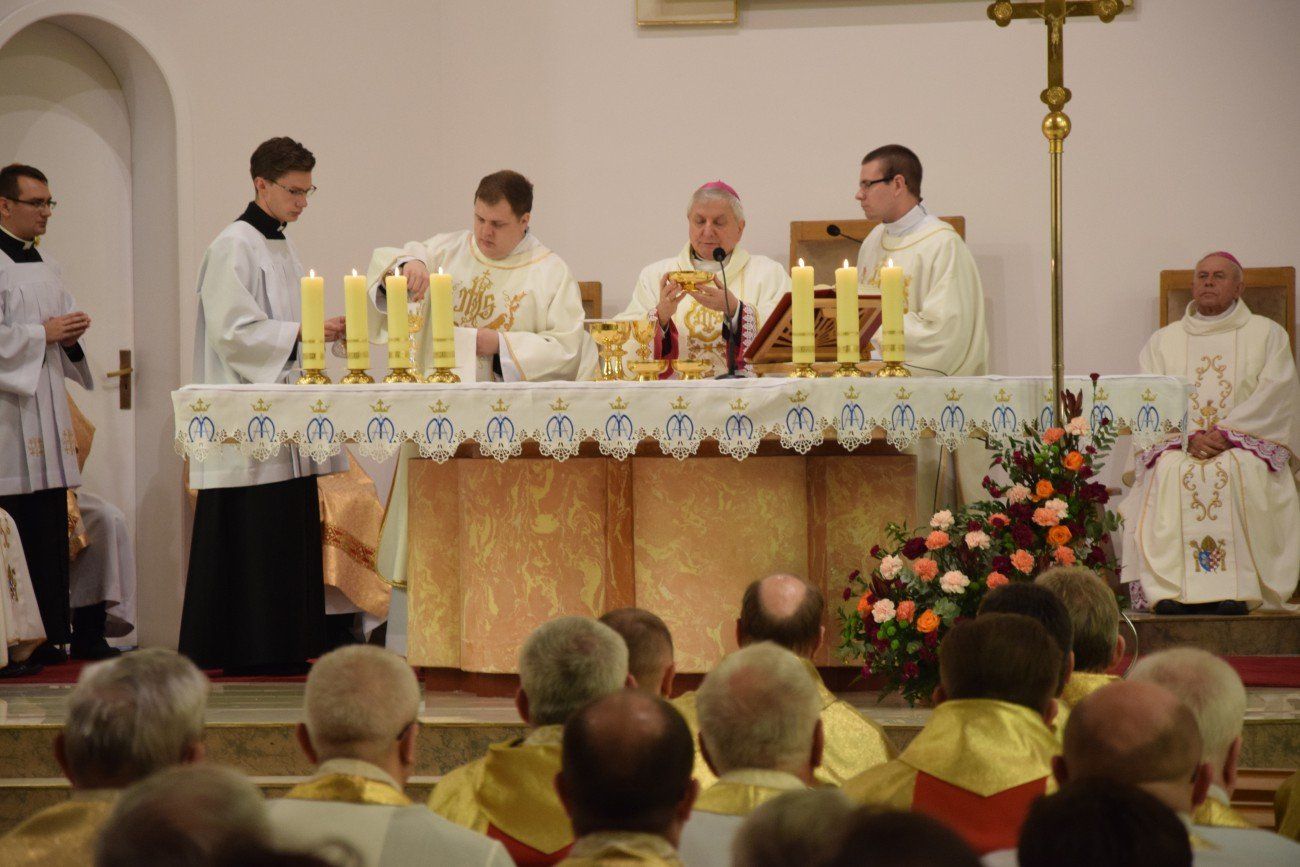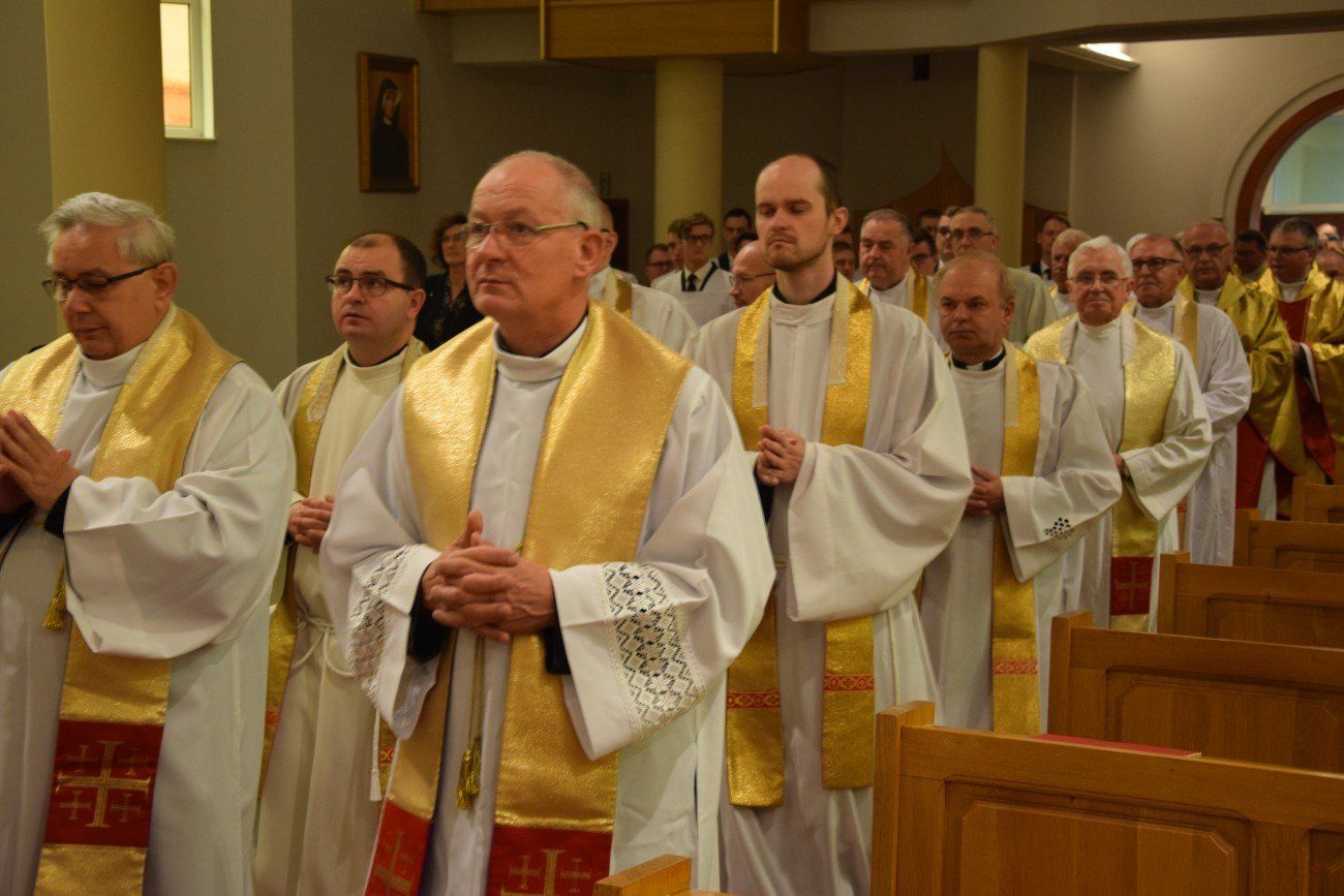 Pierwszym i zarazem najważniejszym punktem była Msza Święta sprawowana pod przewodnictwem Księdza Biskupa Edwarda Janiaka - Ordynariusza Diecezji Kaliskiej, koncelebrowanej przez księży biskupów oraz licznie zgromadzonego gremium prezbiterów. Homilię wygłosił ksiądz kanonik dr Jarosław Powąska - wykładowca naszego seminarium, a także dyrektor Wydziału Katechetycznego Kurii Diecezjalnej w Kaliszu.