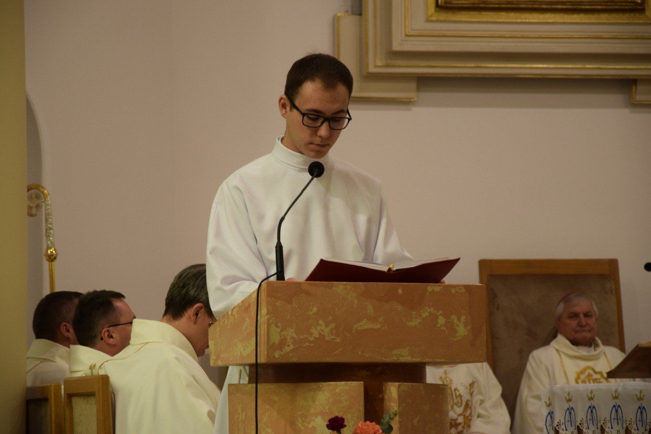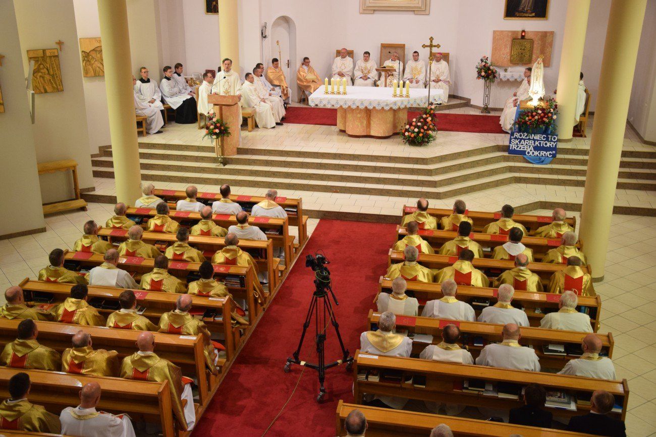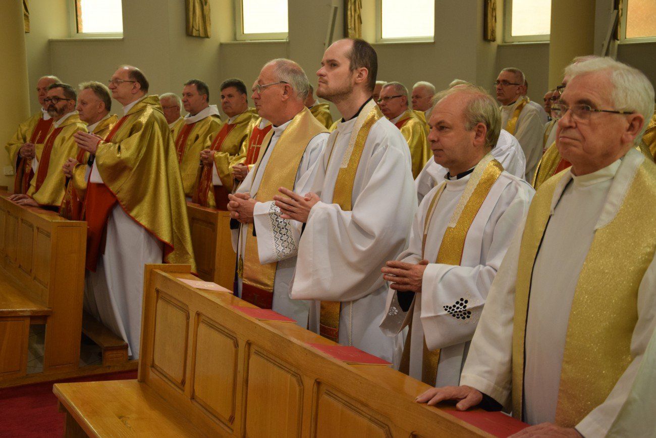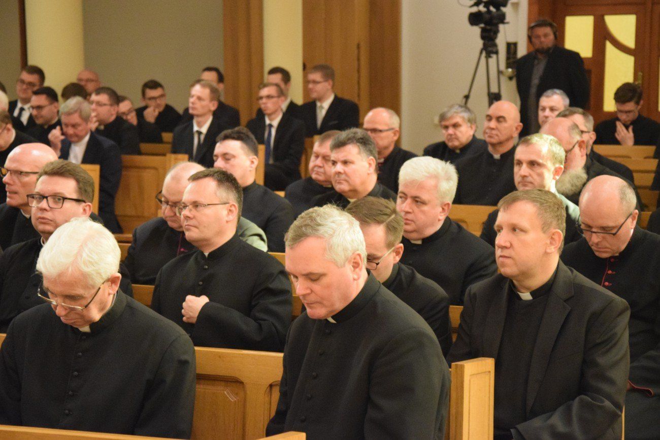 Pierwszym i zarazem najważniejszym punktem była Msza Święta sprawowana pod przewodnictwem Księdza Biskupa Edwarda Janiaka - Ordynariusza Diecezji Kaliskiej, koncelebrowanej przez księży biskupów oraz licznie zgromadzonego gremium prezbiterów. Homilię wygłosił ksiądz kanonik dr Jarosław Powąska - wykładowca naszego seminarium, a także dyrektor Wydziału Katechetycznego Kurii Diecezjalnej w Kaliszu.
