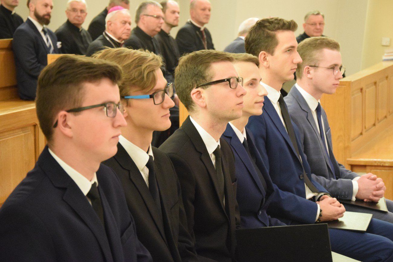 Drugą część uroczystości rozpoczął ksiądz rektor Marcin Załężny poprzez powitanie wszystkich zaproszonych gości, po czym przedstawił zgromadzonym sprawozdanie z działalności seminarium w minionym roku akademickim. Gospodarz naszego domu podziękował za wkład wszystkim osobom, które przyczyniły się do wymienionych sukcesów, na czele z księżmi moderatorami oraz księżmi profesorami. Następnie miał miejsce wykład inauguracyjny zatytułowany „Wyświęceni i posłani”, który wygłosił ks. kan. dr hab. Franciszek Jabłoński, kapłan archidiecezji gnieźnieńskiej. Kolejnym punktem była immatrykulacja sześciu alumnów pierwszego roku. Przyjętych w poczet kleryków powitał dziekan wspólnoty seminaryjnej. Obchody zakończyła przemowa Księdza Biskupa Edwarda Janiaka, który zwrócił uwagę na rolę proboszcza w procesie formacji młodego alumna. Jego Ekscelencja tym samym przypomniał alumnom, aby nigdy nie rezygnowali z modlitwy, ponieważ to ona jest fundamentem formacji i bez niej prędzej czy później człowiek traci wiarę.