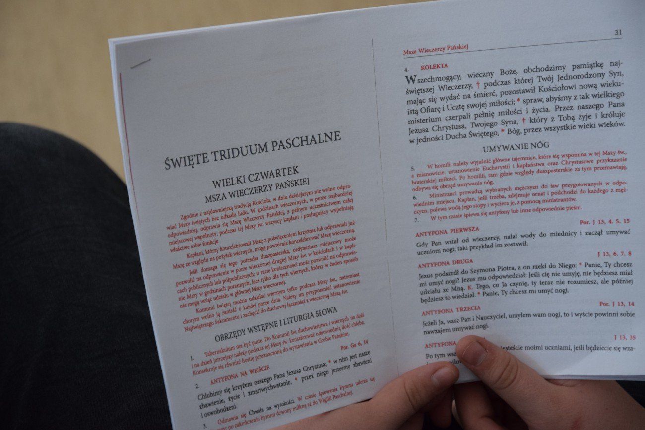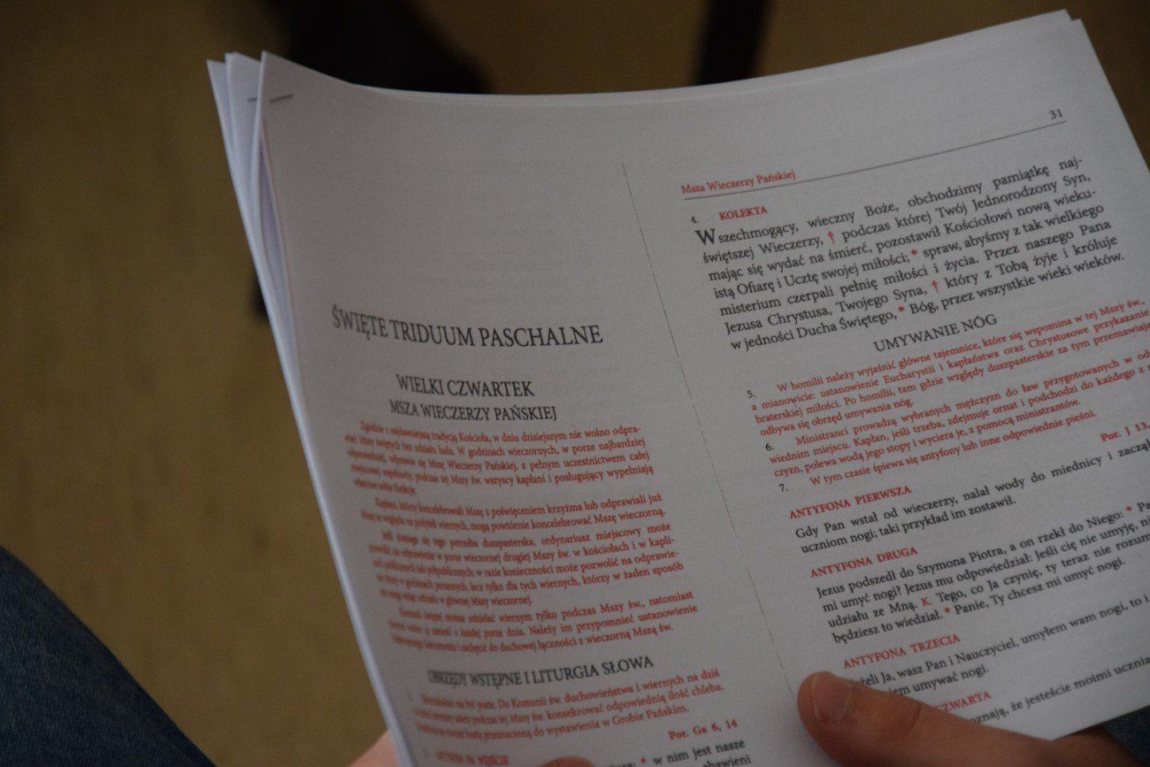 Głównym tematem dnia skupienia była liturgia Triduum Paschalnego. Skupienie rozpoczęło się modlitwą brewiarzową o godzinie 10:00. Następnie był czas na kawę i rozmowy, po czym ministranci udali się na wykład liturgiczny, który poprowadził ksiądz prof. Dariusz Kwiatkowski. Kolejnym punktem była adoracja Najświętszego Sakramentu z okazją do spowiedzi świętej. Po obiedzie ministranci zostali podzieleni na grupy, z których każda miała do opracowania jeden z symboli związanych z celebracją liturgiczną Triduum Paschalnego. Dzień skupienia zakończyła Eucharystia, którą odprawił diecezjalny duszpasterz ministrantów - ksiądz kanonik Jarosław Kołodziejczak. Po Eucharystii wszyscy udali się na wspólną kolację.