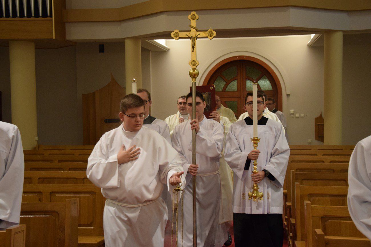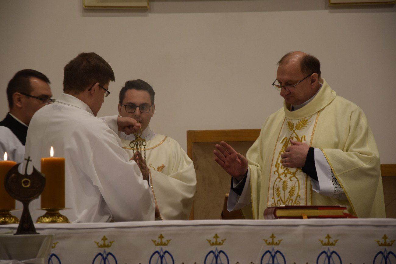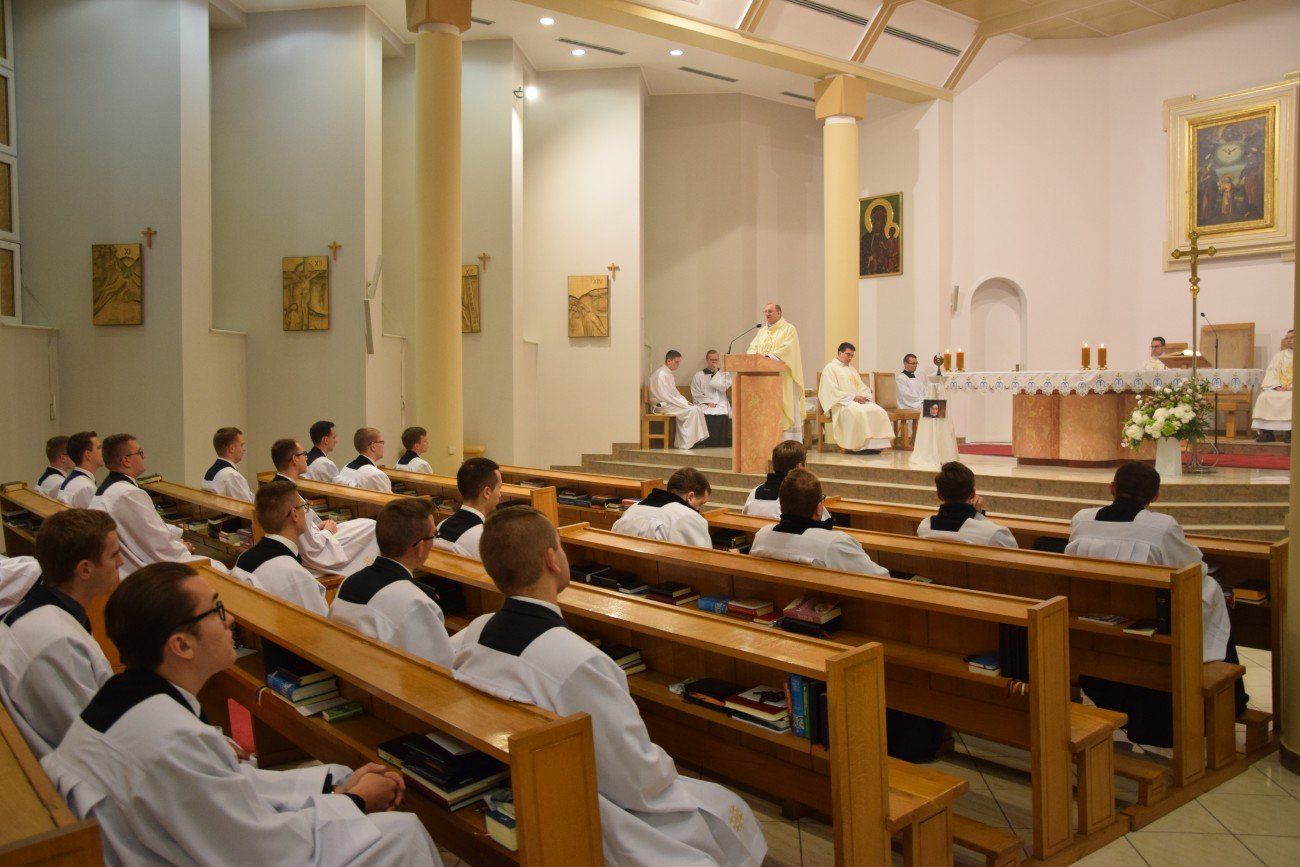 Ksiądz Krzysztof przewodniczył uroczystej Mszy Świętej sprawowanej w seminaryjnej kaplicy. W homilii podkreślił, że kapłan jest zobowiązany do służenia przez cały czas, zarówno Bogu jak i ludziom. Wytrwałość, pogoda ducha, uśmiech, ogromna cierpliwość – te cechy uznał za kluczowe we współczesnej posłudze kapłańskiej. Nasz gość prosił, abyśmy nigdy nie ustawali w modlitwie, a jeśli przyjdzie na nas słabość w jej czynieniu musimy spoglądać na Chrystusa, który jest naszym wzorem. Zaznaczył, że najpiękniejszą formą modlitwy jest Eucharystia, jednak "nie możecie pozwolić, aby stała się rutyną i każdą powinniście przeżywać jak pierwszą, choćbyście czynili to po raz setny" – dodał. Po zakończonej Mszy Świętej alumni wraz z księżmi moderatorami oraz z księdzem Krzysztofem udali się do seminaryjnego refektarza na wspólną kolację.