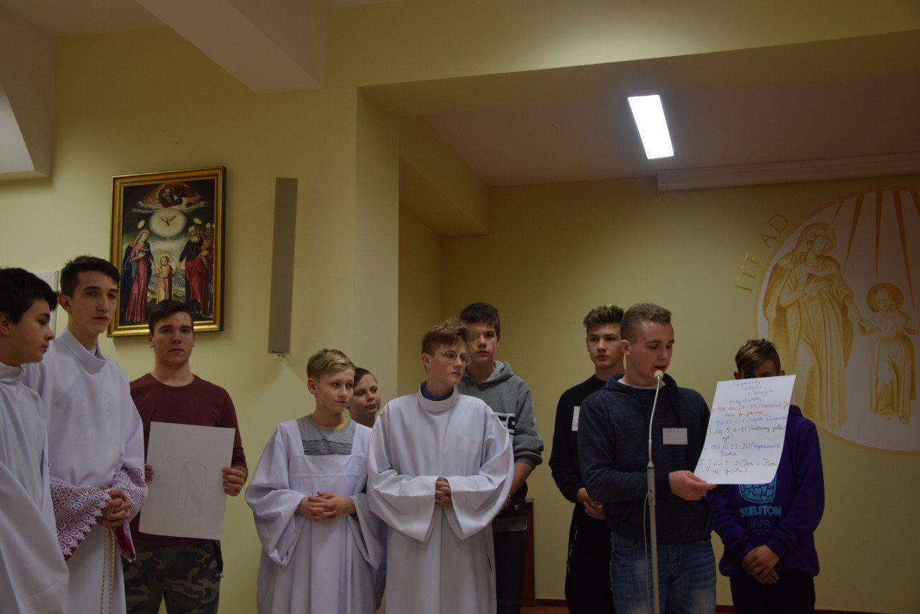 W czasie rekolekcji pochylano się nad powołaniem do bycia dobrym człowiekiem, dobrym chrześcijaninem oraz nad konkretnym powołaniem życiowym, jakim może być kapłaństwo lub małżeństwo i rodzicielstwo. W piątkowy wieczór miało miejsce nabożeństwo pokutne połączone z adoracją Najświętszego Sakramentu i spowiedzią świętą, po których młodzież uczestniczyła w Eucharystii. W sobotę, oprócz konferencji tematycznych nie zabrakło modlitwy brewiarzowej, wspólnego oglądania filmu, kręgów biblijnych. Młodzież nawiązywała ze sobą relacje podczas pracy w grupach, gdzie pochylała się nad konkretnymi postaciami biblijnymi zastanawiając się, jakie te osoby otrzymały od Pana Boga powołanie i jak je zrealizowały w swoim życiu. Efekty tych prac grupy przedstawiły podczas wieczornego spotkania.