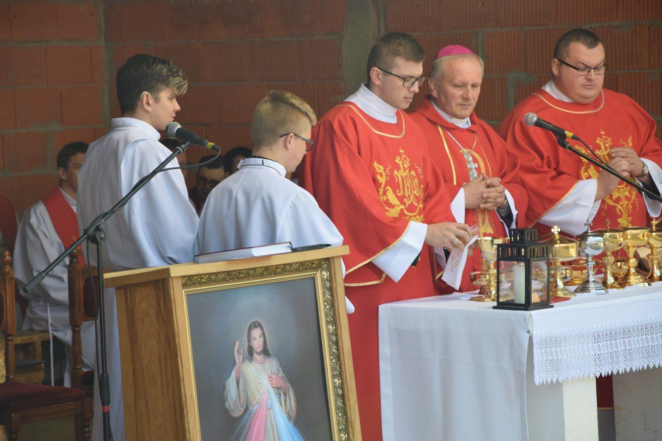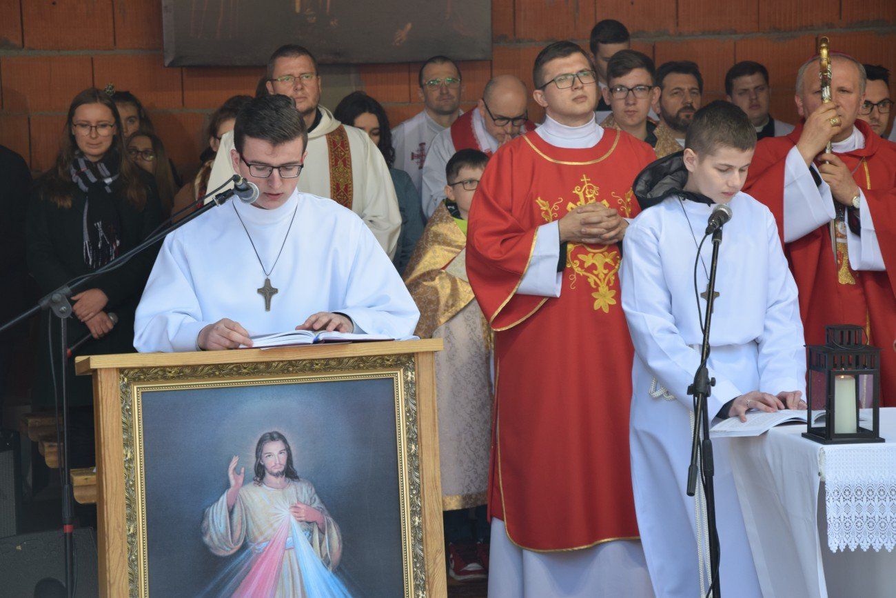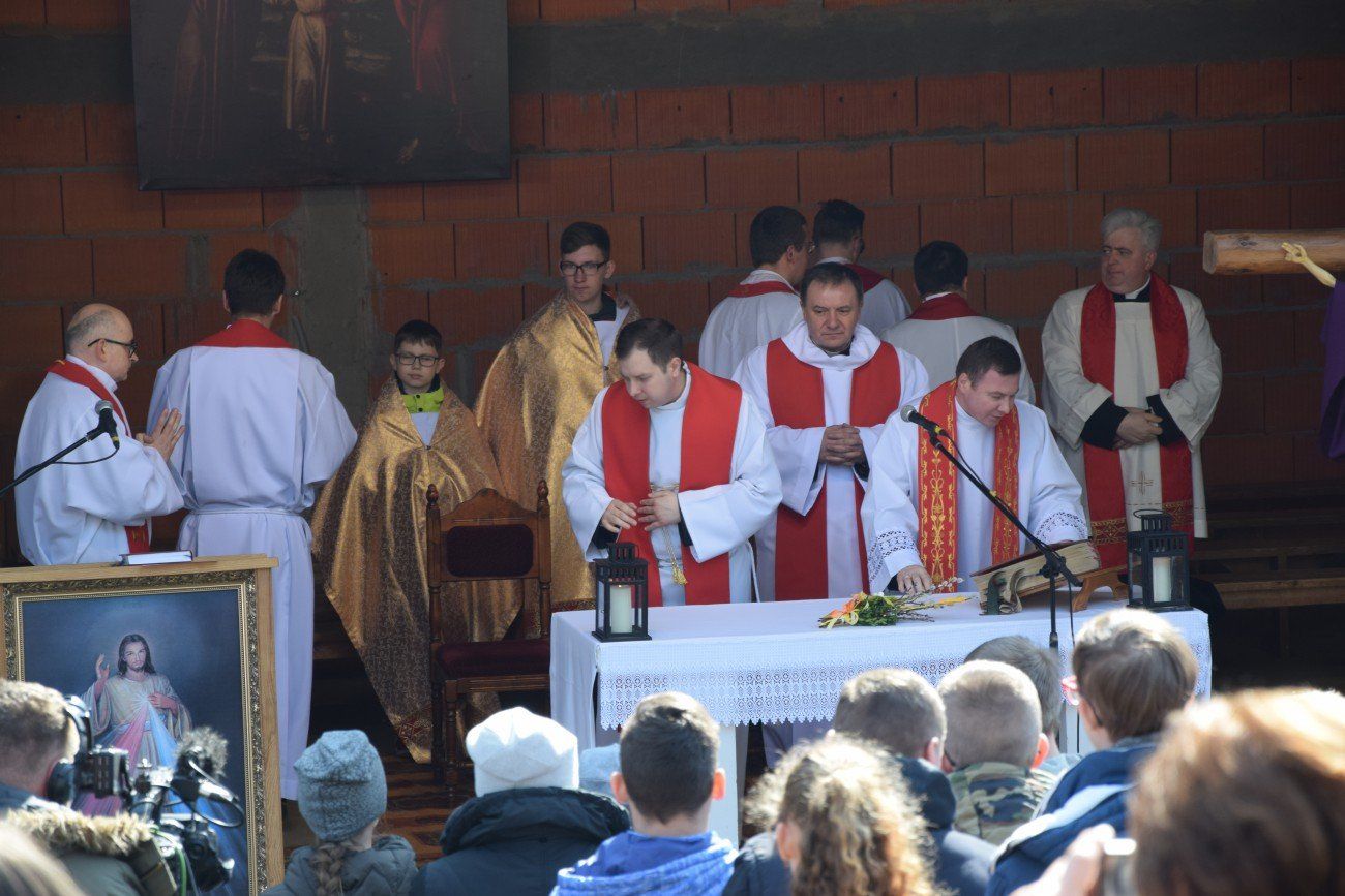 O godzinie 15:00 zgromadzeni wierni modlili się wspólnie koronką do Bożego Miłosierdzia, po której rozpoczęła się Eucharystia pod przewodnictwem księdza biskupa Łukasza Buzuna - biskupa pomocniczego Diecezji Kaliskiej.