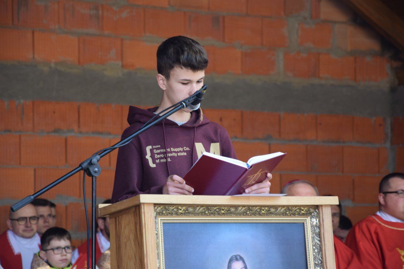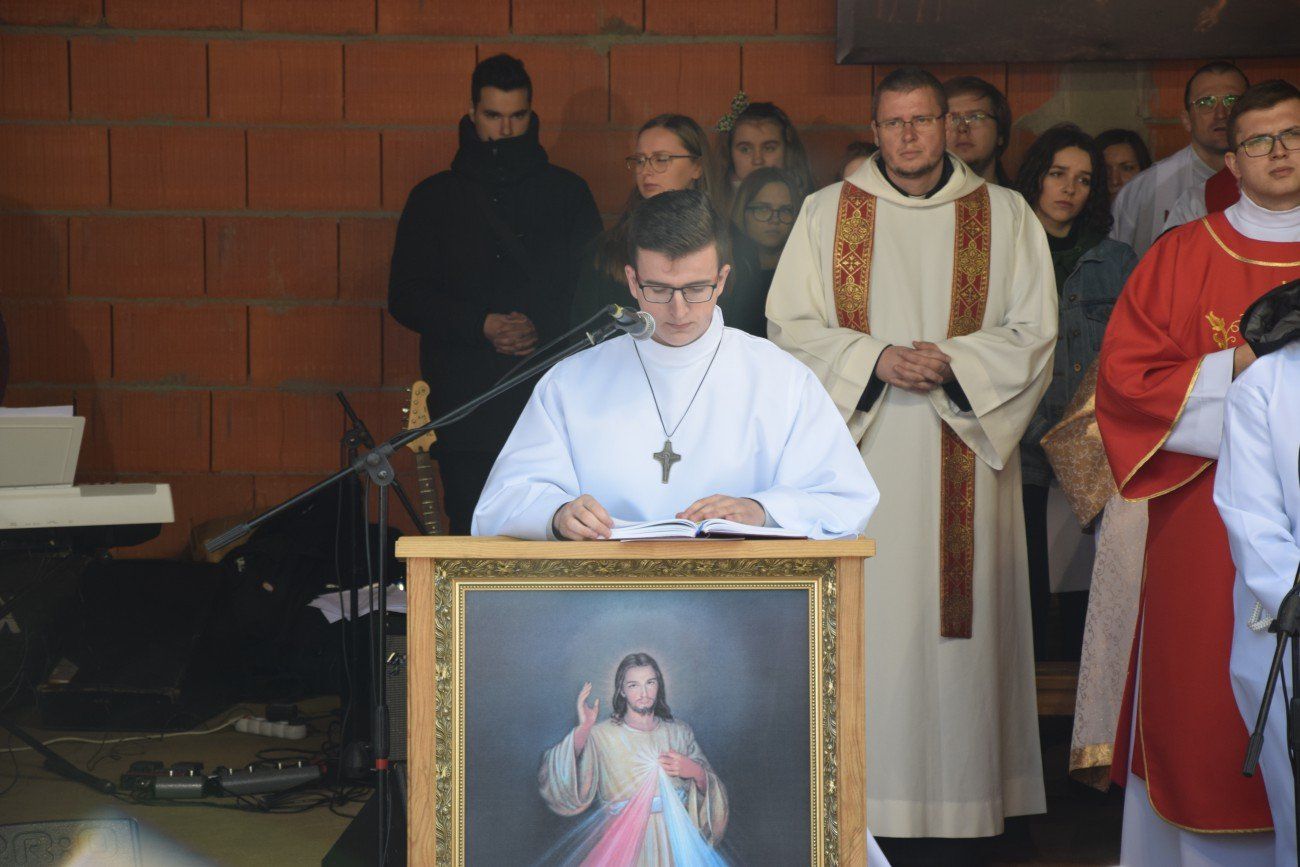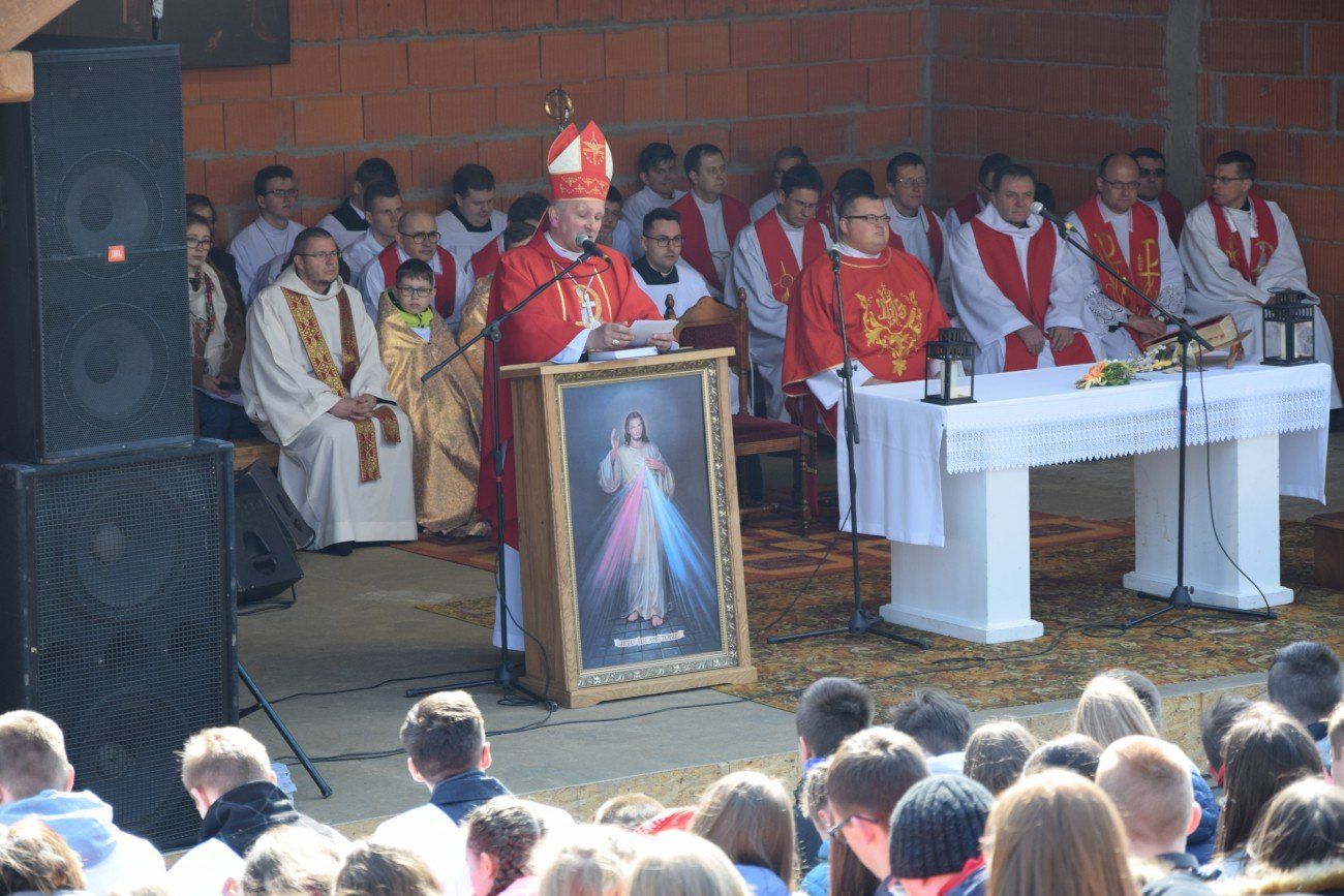 O godzinie 15:00 zgromadzeni wierni modlili się wspólnie koronką do Bożego Miłosierdzia, po której rozpoczęła się Eucharystia pod przewodnictwem księdza biskupa Łukasza Buzuna - biskupa pomocniczego Diecezji Kaliskiej.
