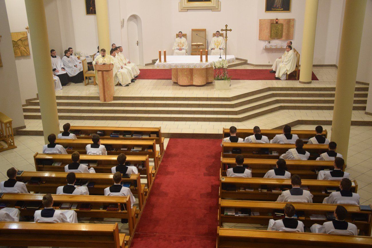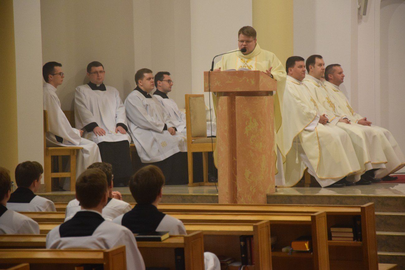 Z tej okazji neoprezbiter przewodniczył uroczystej Eucharystii, którą koncelebrował wraz z księżmi moderatorami naszego seminarium. W homilii ksiądz Łukasz podkreślał znaczenie stawania w prawdzie przed sobą samym i przed Panem Bogiem w czasie formacji seminaryjnej. Na zakończenie Mszy Świętej prymicjant udzielił błogosławieństwa prymicyjnego księżom moderatorom oraz wszystkim alumnom naszego seminarium.