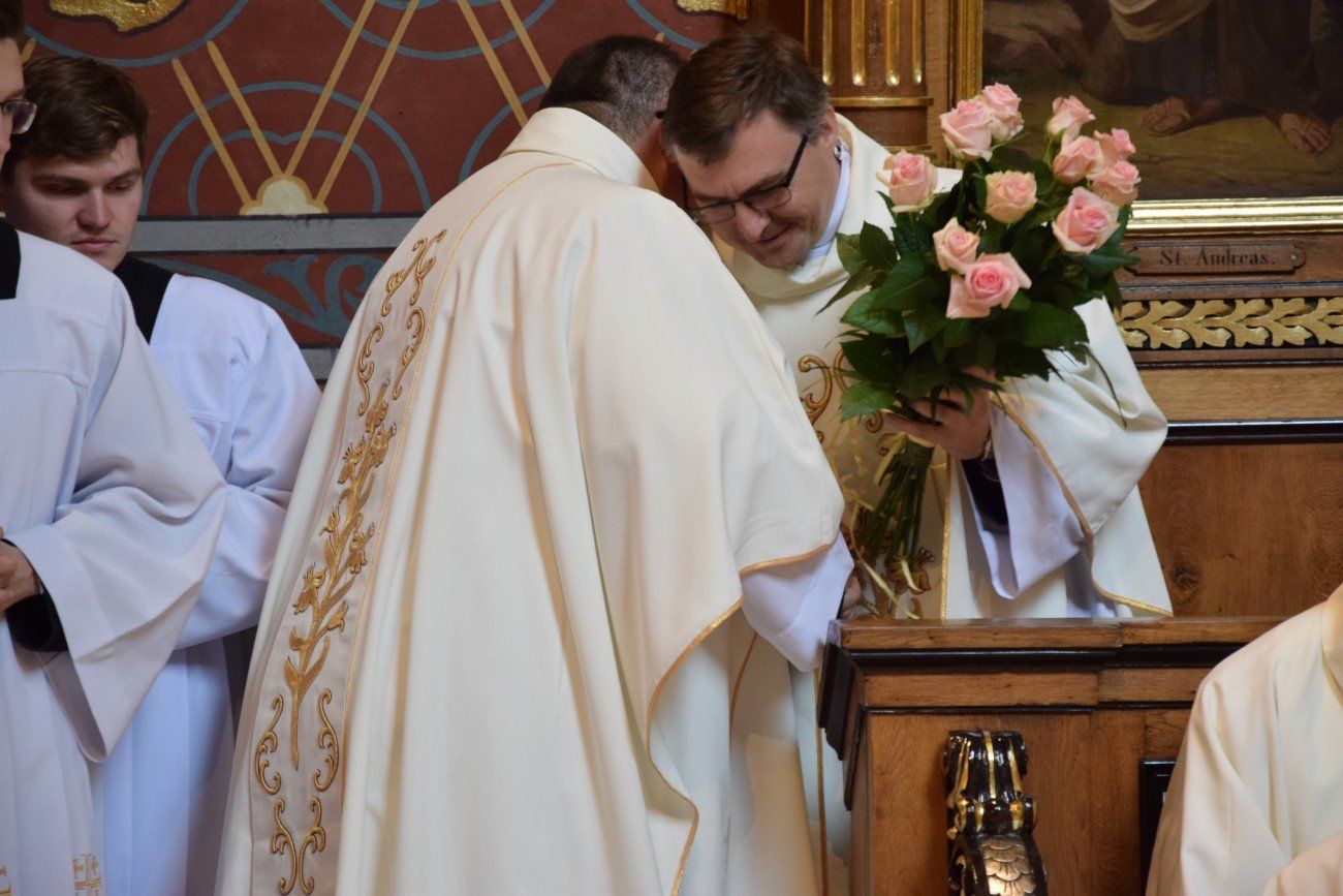 Wraz z Biskupem Kaliskim modlili się ksiądz biskup Stanisław Napierała oraz ksiądz biskup Teofil Wilski, moderatorzy i wykładowcy naszego seminarium, proboszczowie parafii pochodzenia i parafii praktyk diakońskich neoprezbiterów. Po Eucharystii nowo wyświęceni kapłani otrzymali dekrety posyłające ich na pierwsze placówki wikariuszowskie.