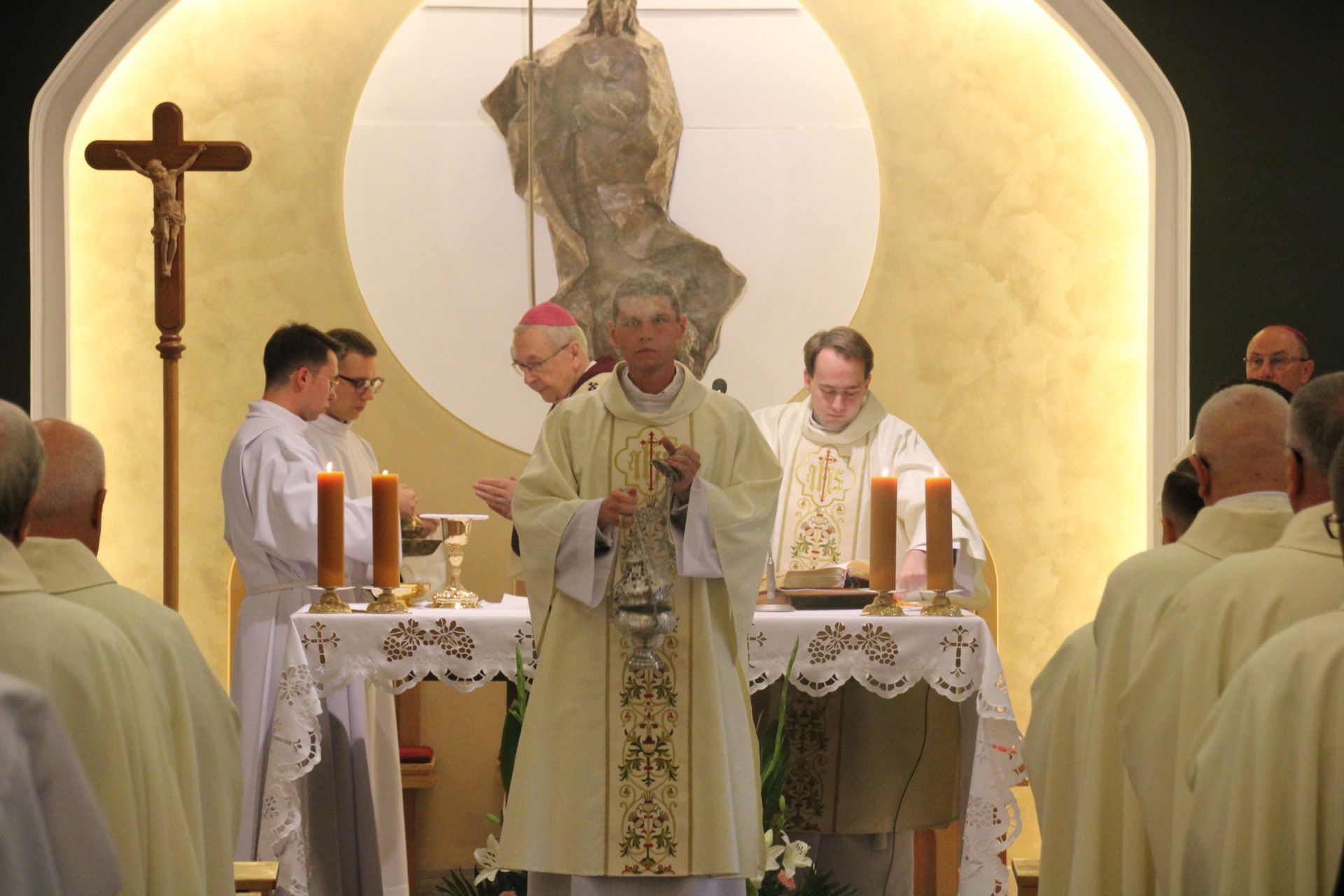 Podczas Eucharystii inauguracyjnej, której przewodniczył ks. abp Stanisław Gądecki - Metropolita Poznański modlili się wraz z nami ks. abp Wojciech Polak - Metropolita Gnieźnieński i Prymas Polski, ks. bp Damian Bryl - Biskup Kaliski, ks. bp Krzysztof Włodarczyk - Biskup Bydgoski oraz biskupi pomocniczy z Archidiecezji Poznańskiej i Gnieźnieńskiej. Homilię wygłosił dla nas ks. Mirosław Prasek COr - Prokurator Federacji Kongregacji Oratorium św. Filipa Neri w Polsce.